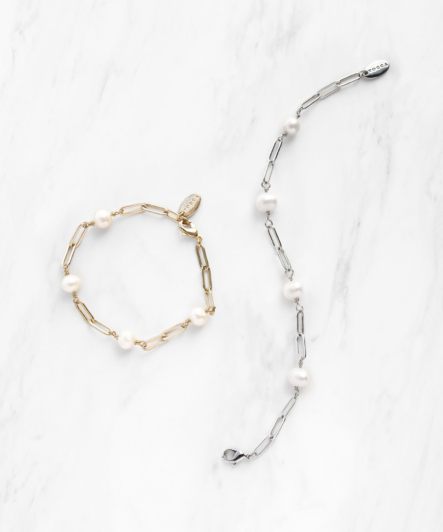 着けるだけでスタイリングをリュクスでスタイリッシュにアップデートできる、シンプルな淡水パールチェーンブレスレット。