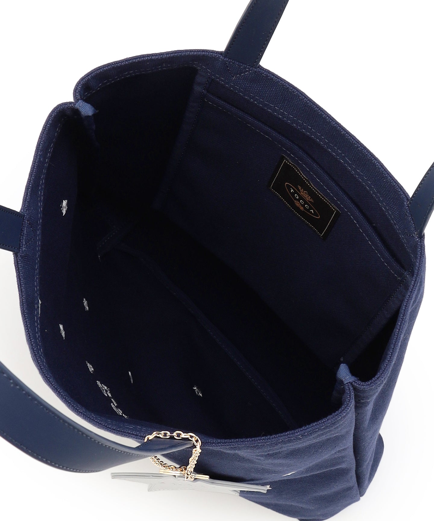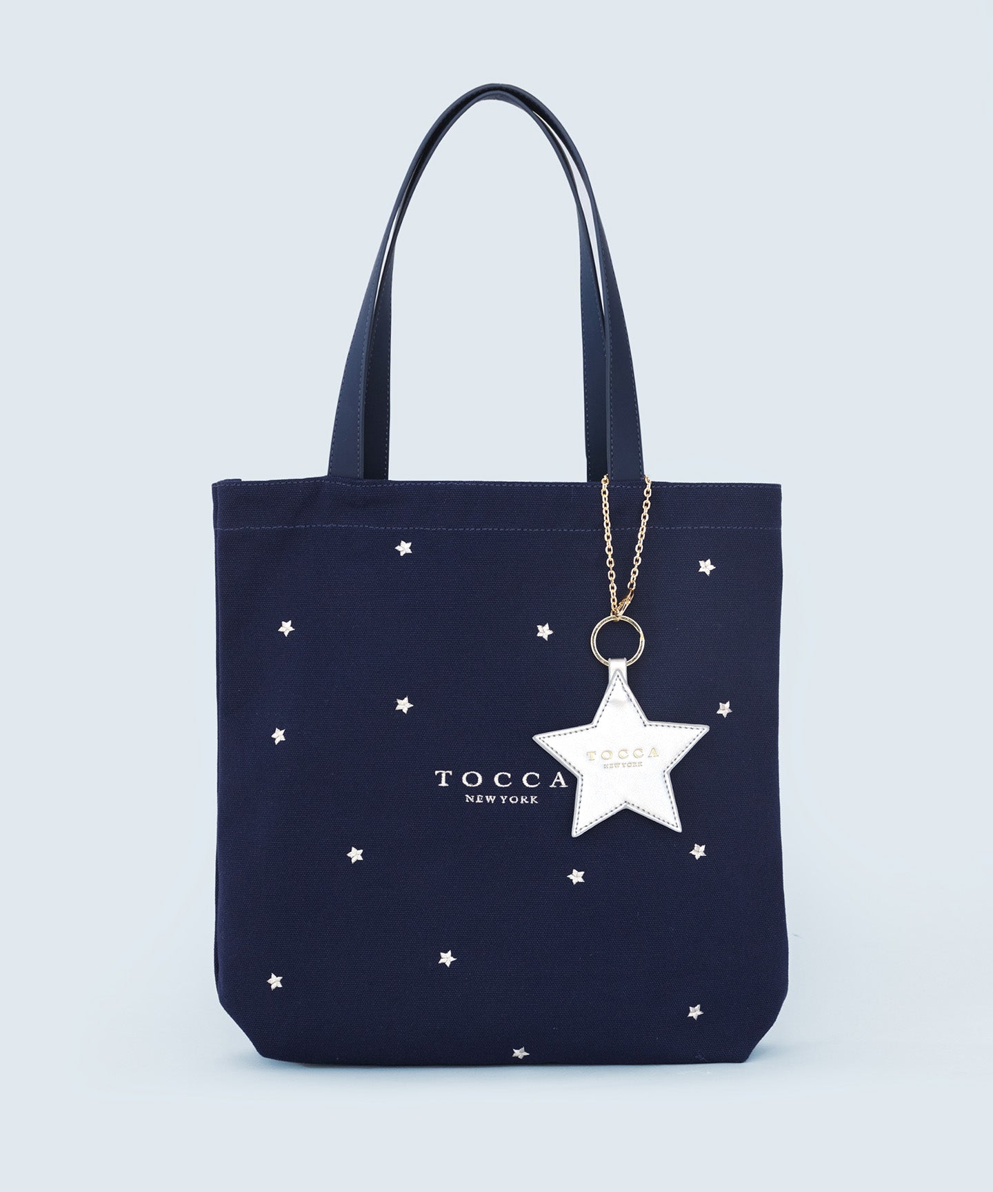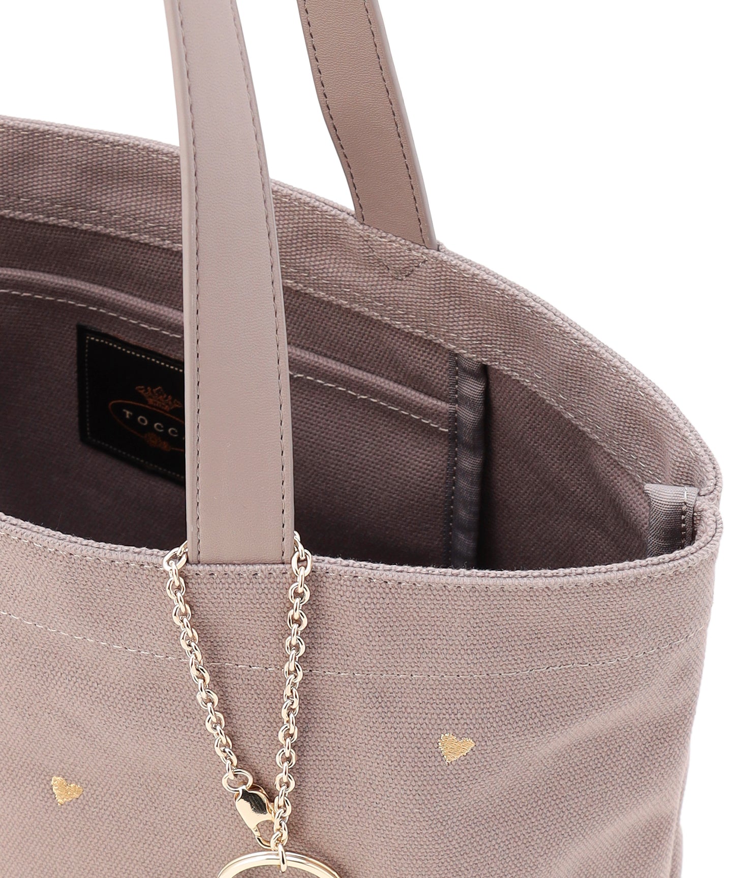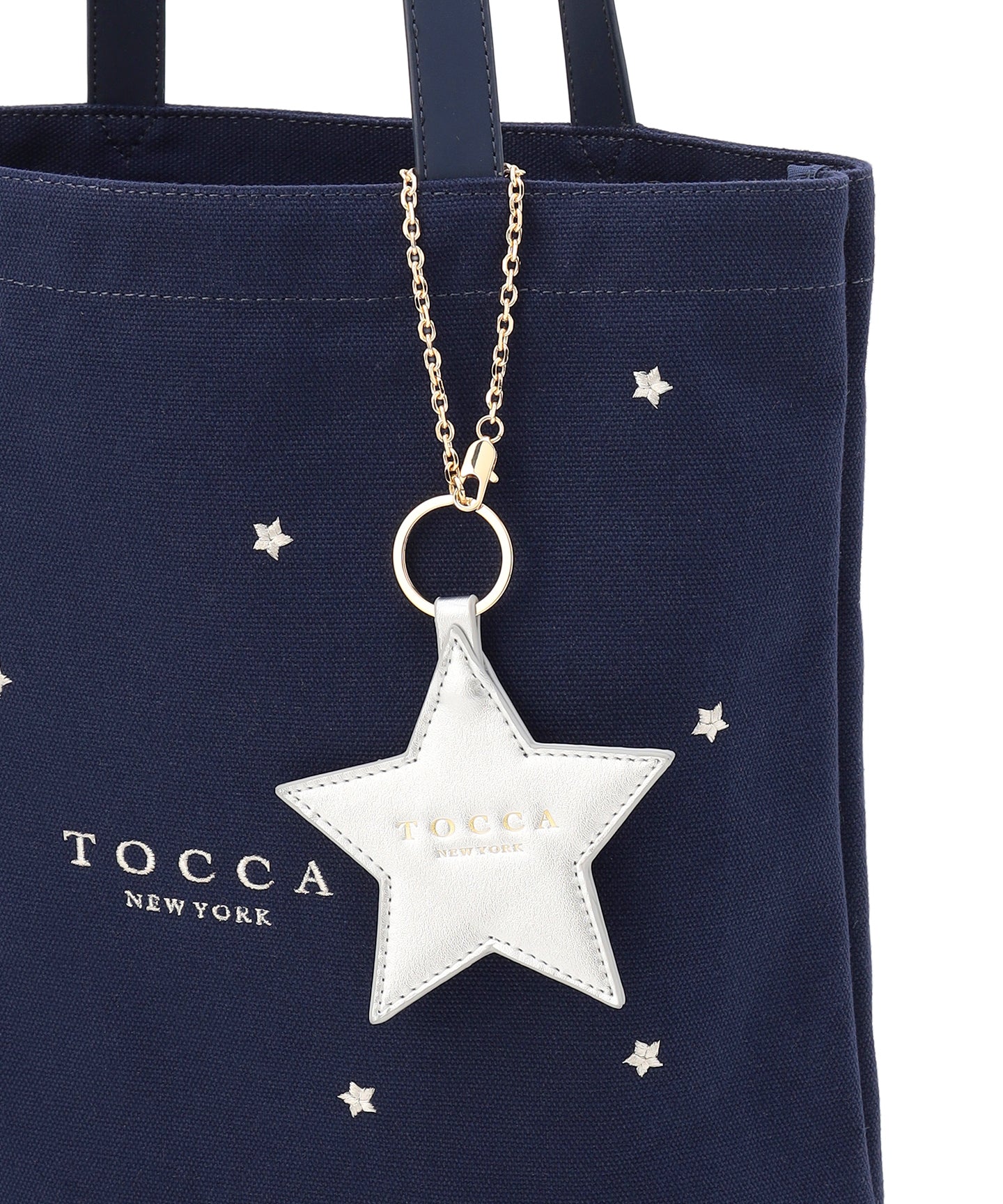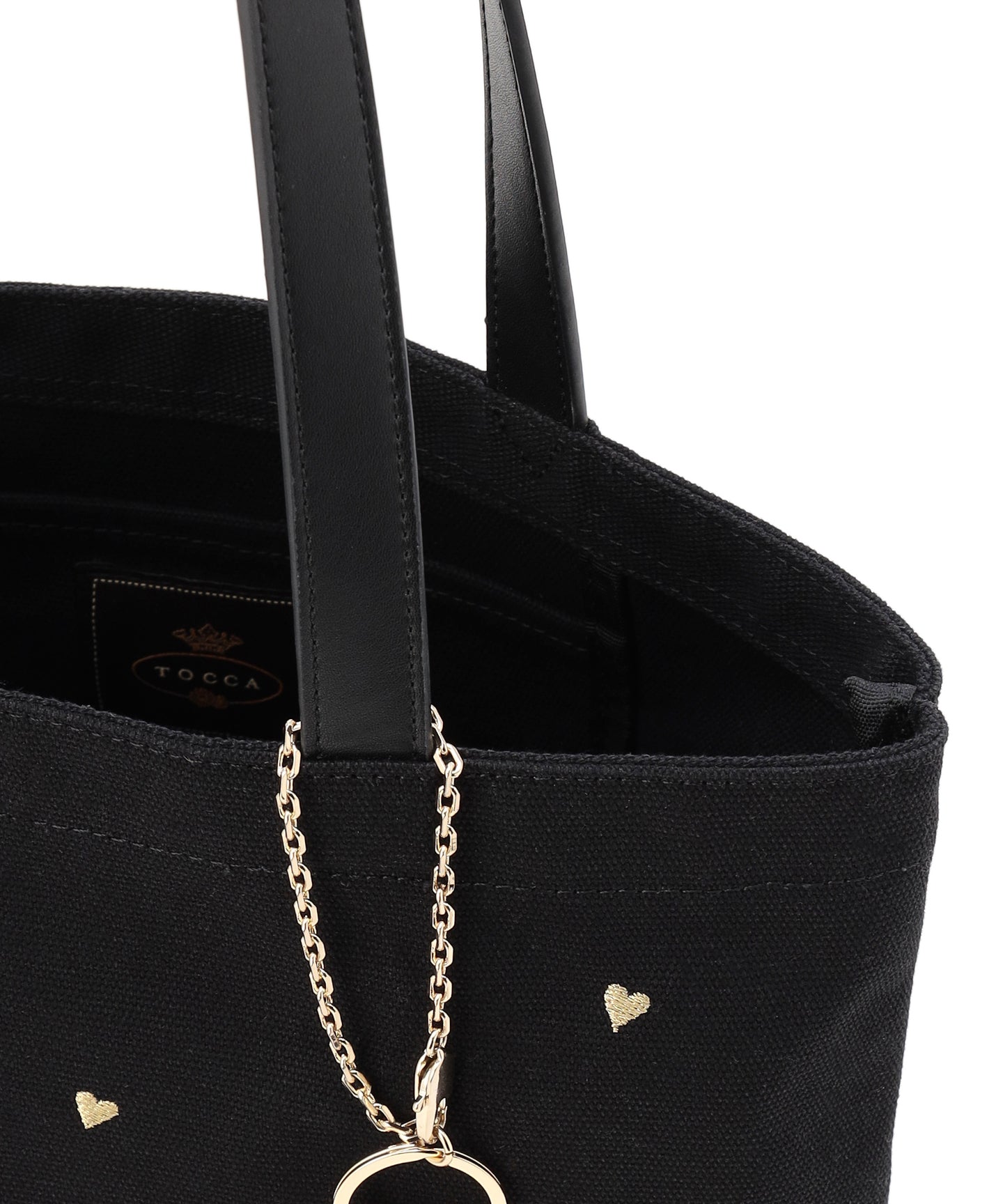 リズミカルなモチーフ刺繍やトレンドのラッキーチャームがアクセントになった、大人可愛いキャンバストート。