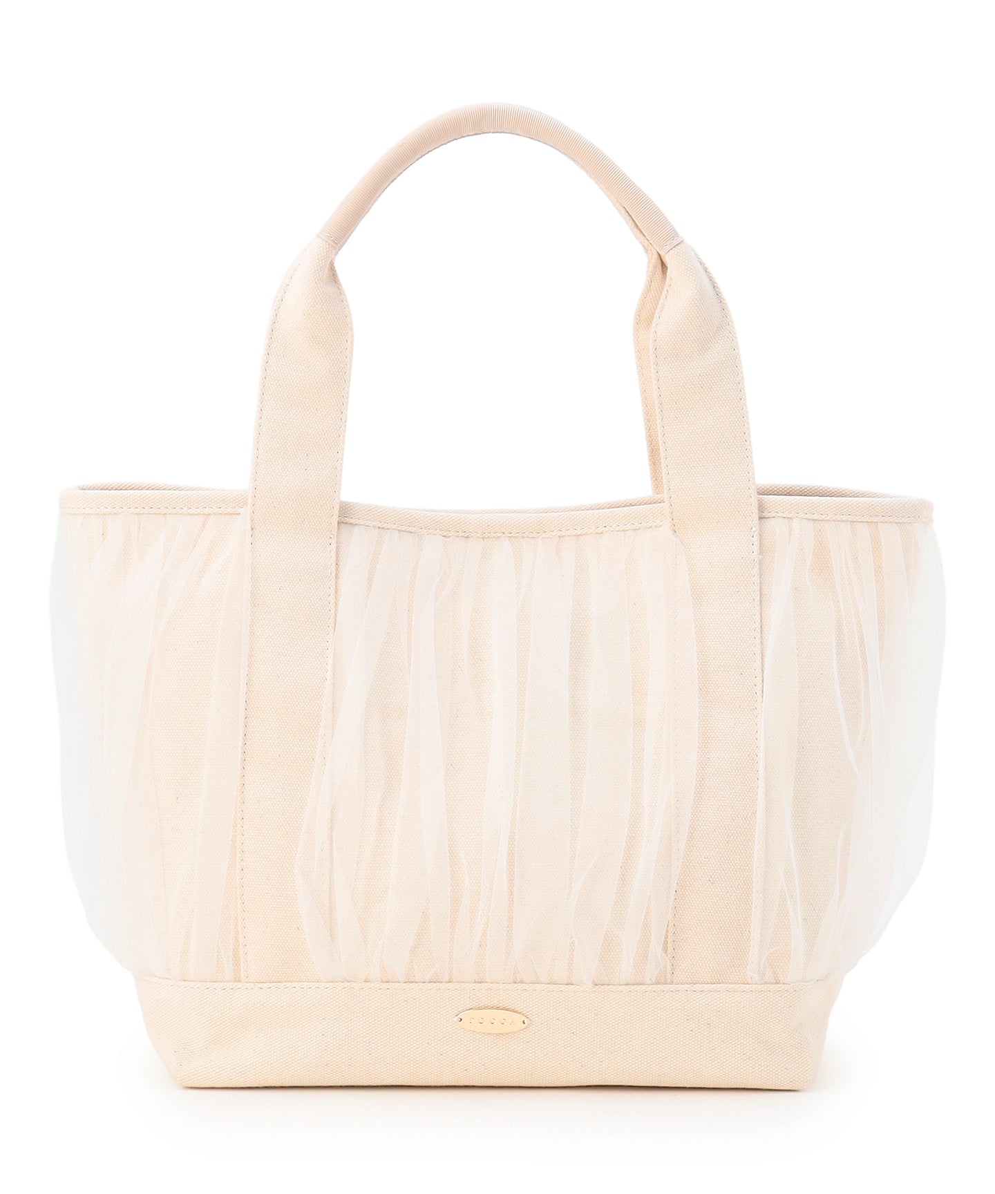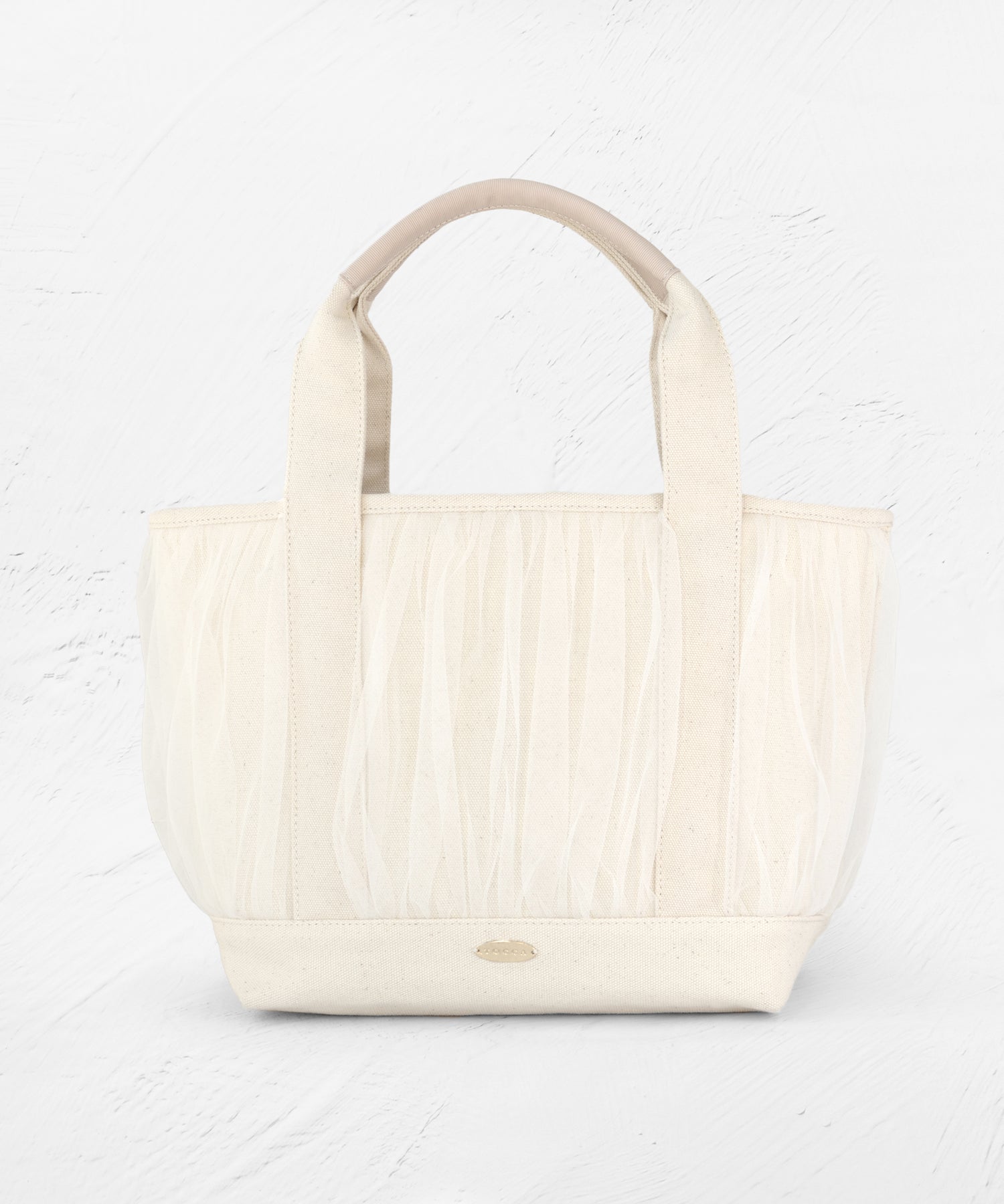 ふわりとしたギャザーチュールにつつまれた、ほんのりフェミニンなキャンバストート。シンプルなフォルムにプラスしたチュールのディテールが抜け感のあるエッセンスとなり、スタイリングに合わせるだけでおしゃれなたたずまいにアップデートできます。