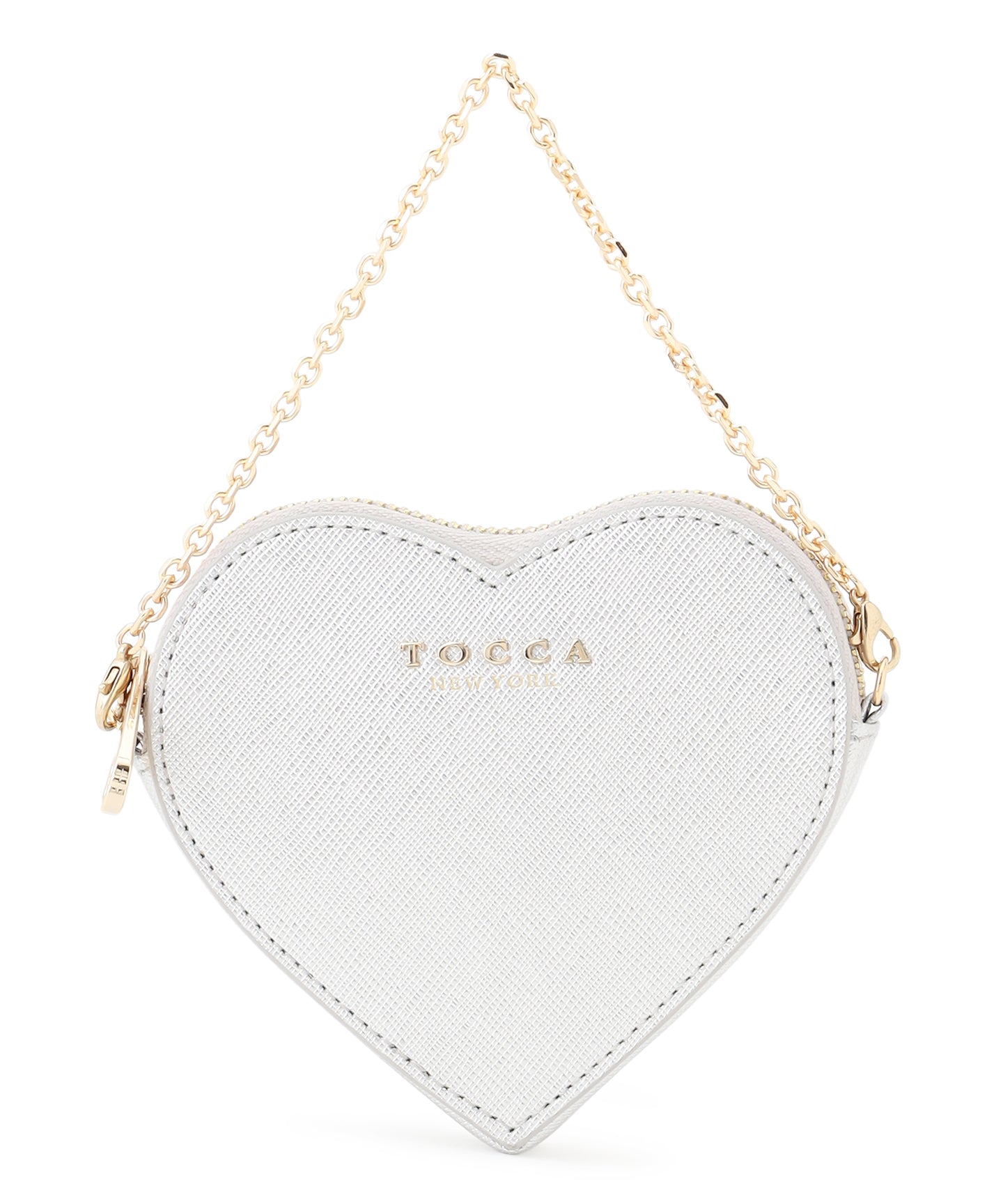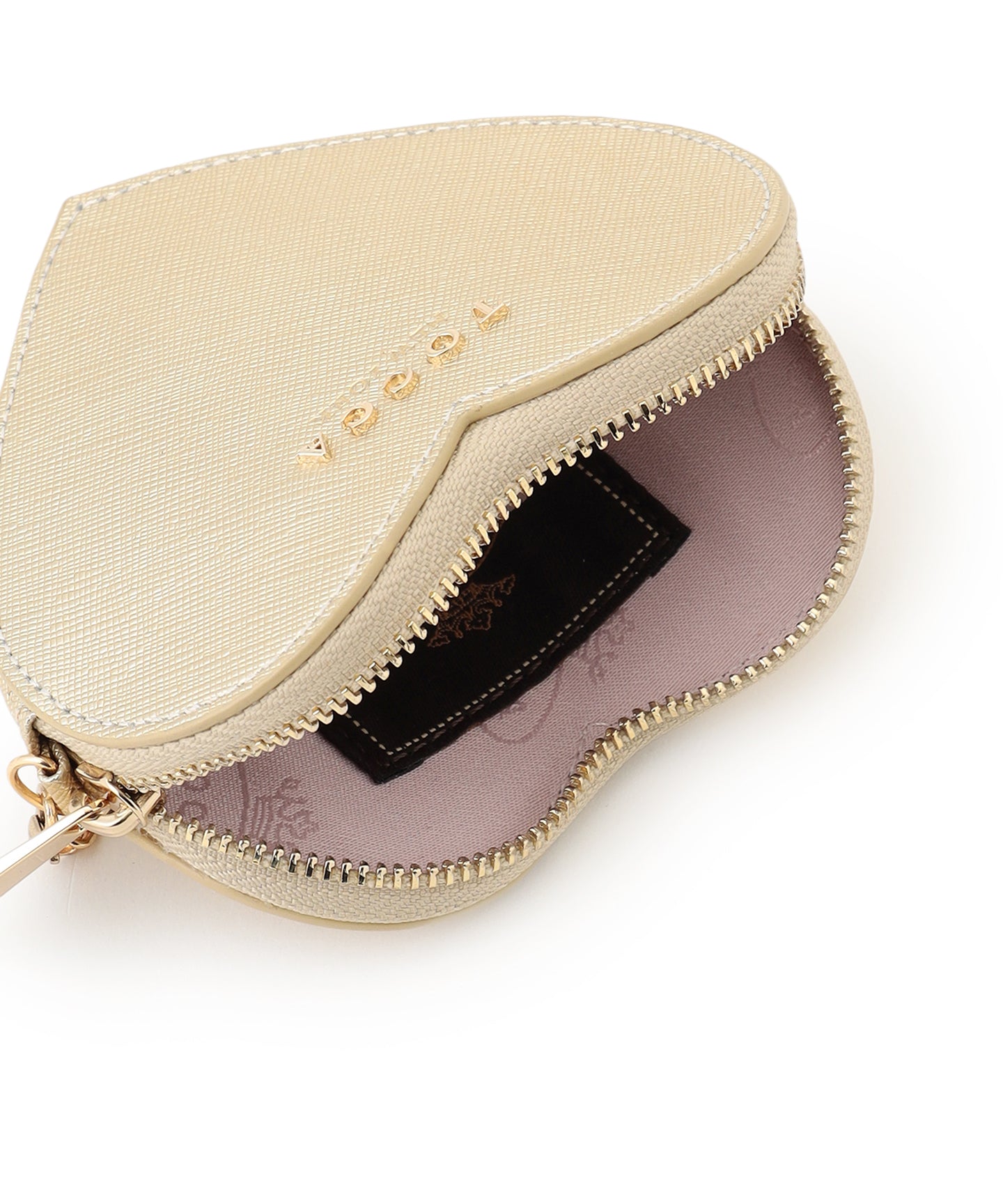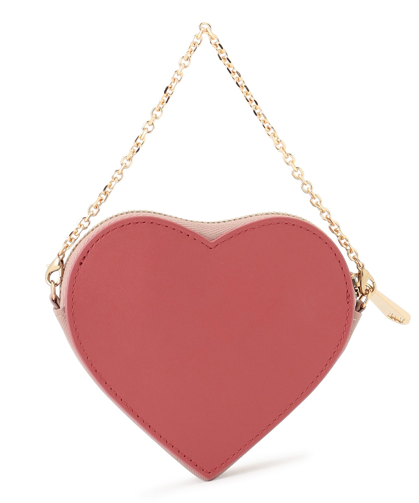 バッグに付けるだけでコーディネートのアクセントになる、ハートフォルムのチャームポーチ。