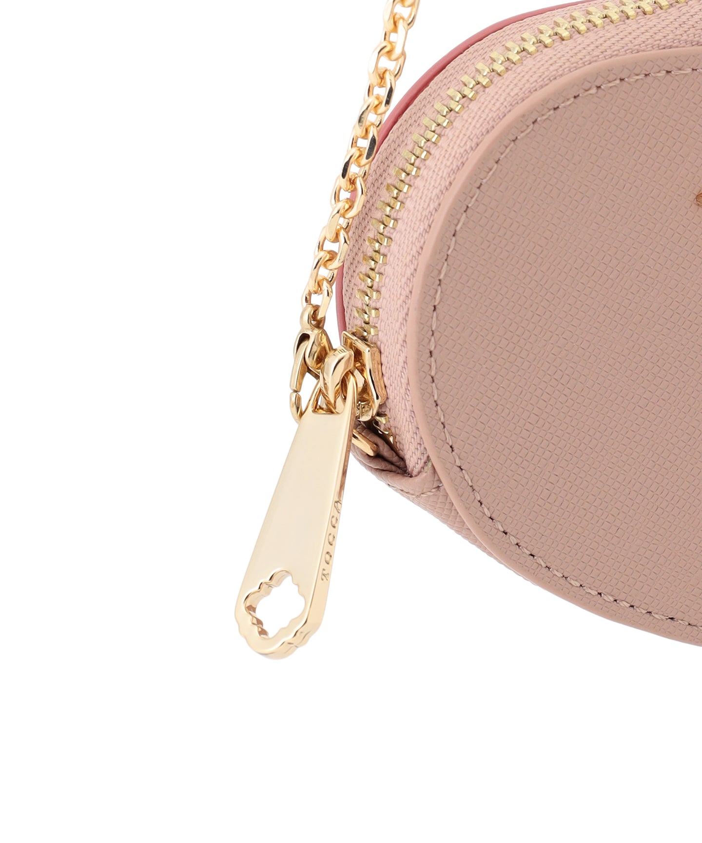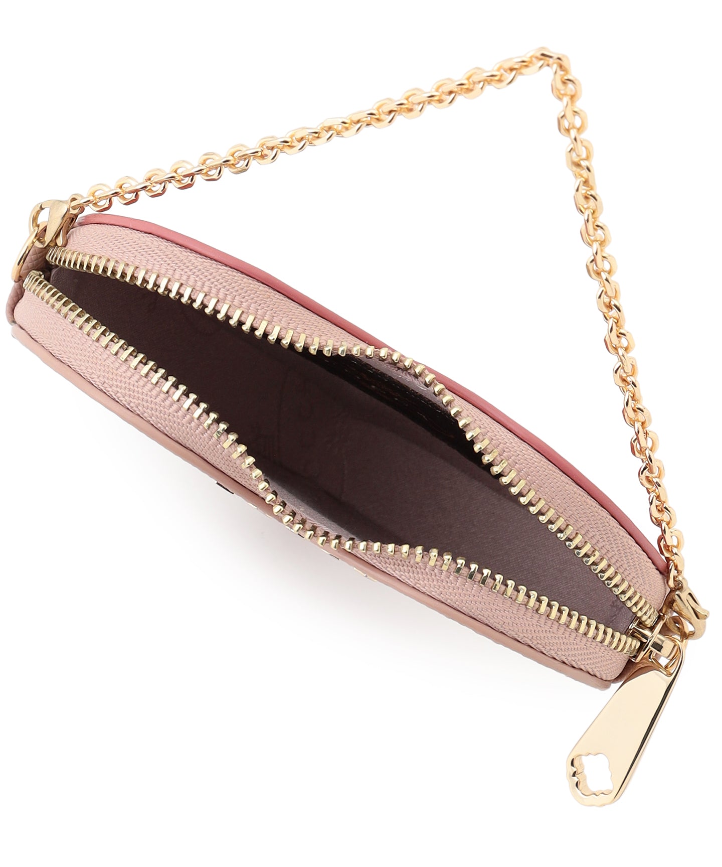 リップやワイヤレスイヤホン・カードや小銭など、さっと取り出したい小物の整理・収納にとっても便利で、ポケット代わりに使えるアイテム。チェーンやロゴのメタルディテールがリュクスなエッセンスになっている上品な大人可愛いデザインは、バッグチャームだけではなく、デイリーやドレスアップしたときのミニバッグとしてご使用いただくのもおすすめです。