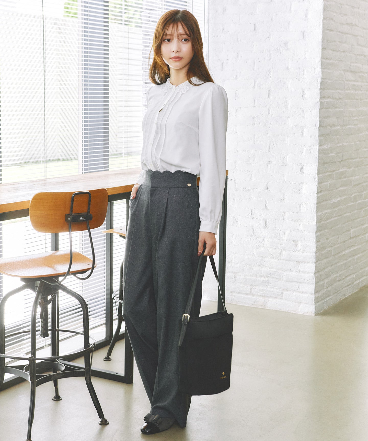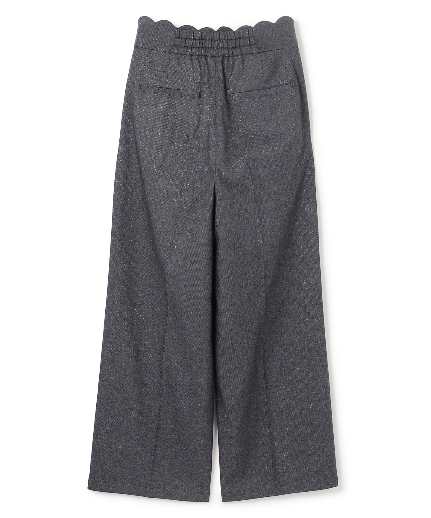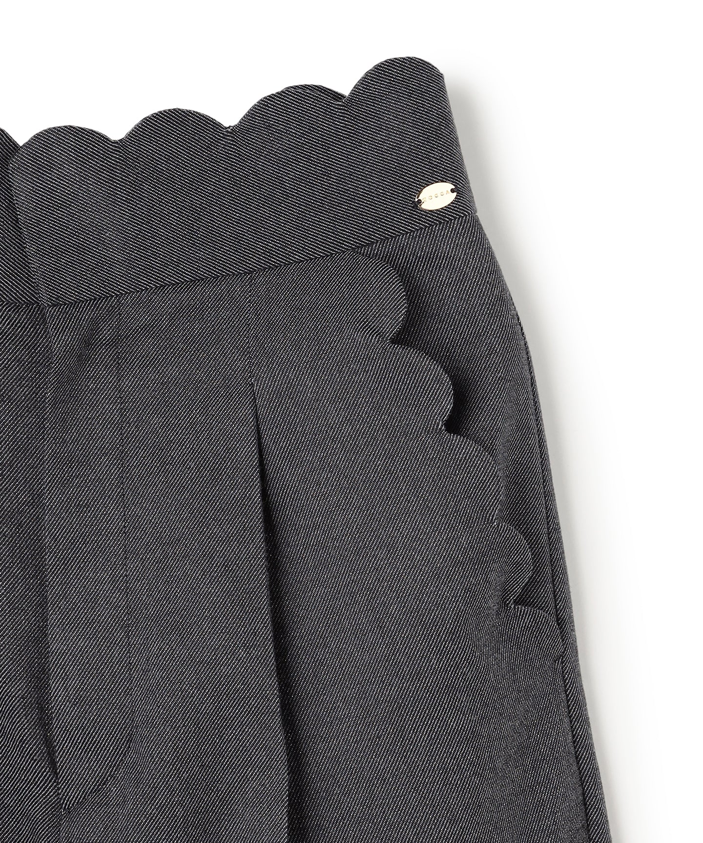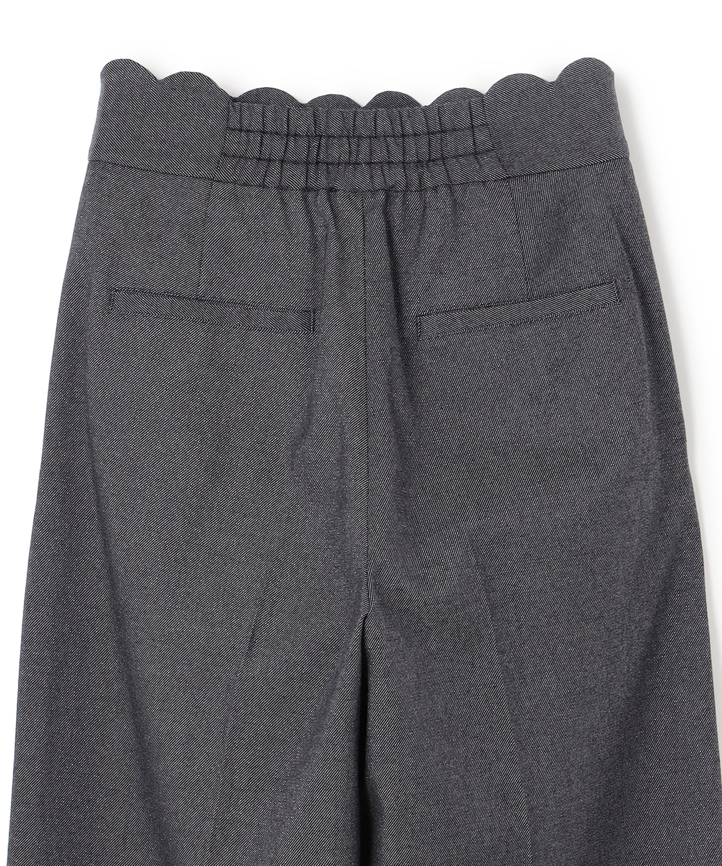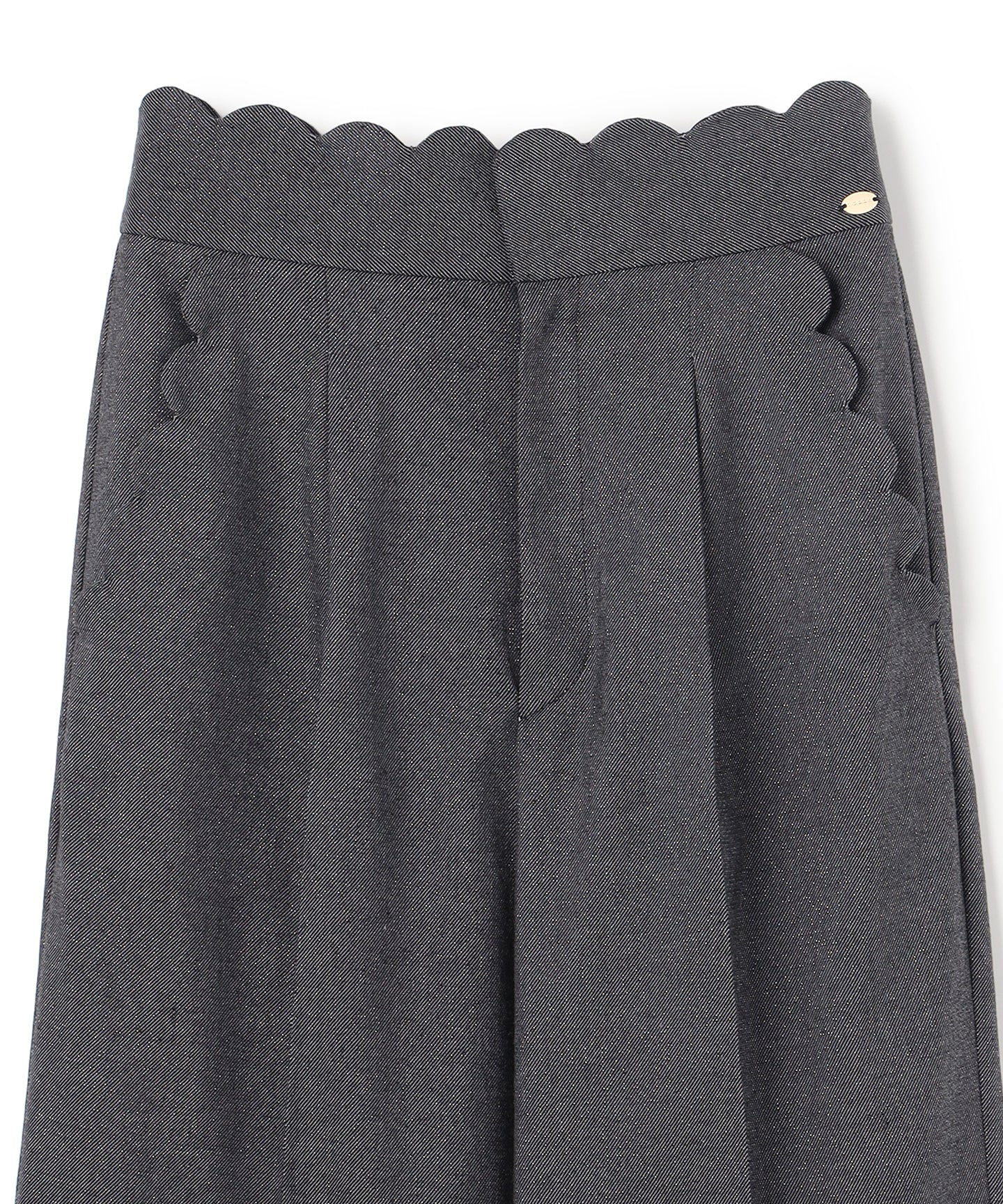 ウエスト、ポケット部分に施されたスカラップカットが、さりげないフェミニンなアクセントを添えるハイウェストパンツは、シンプルな着こなしに女性らしいニュアンスを与えてくれます。