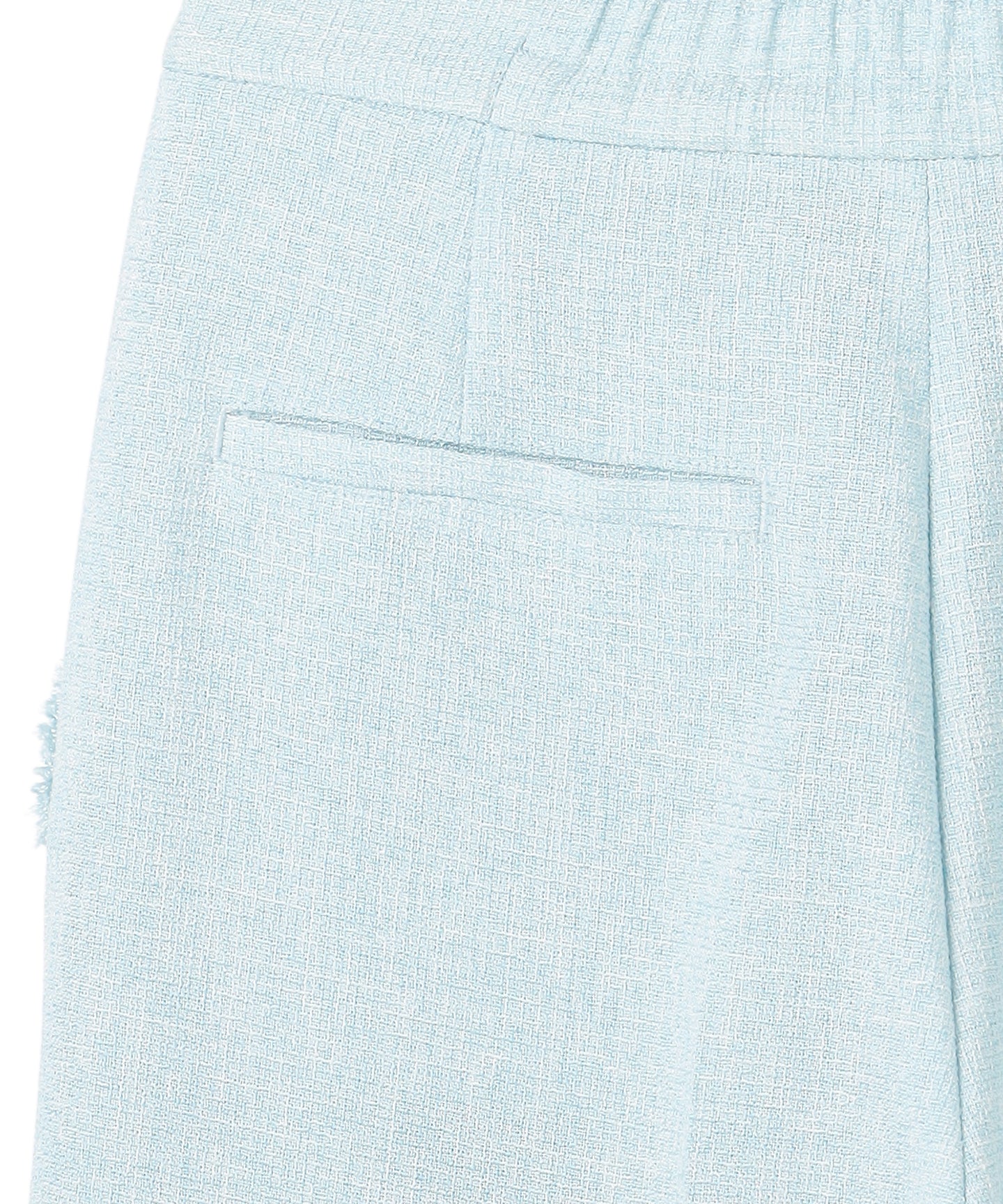同素材のジャケット(11月末頃入荷予定)と合わせるとよりフォーマルなコーディネートに。 シンプル見えするツイードなのでコーディネートも組みやすく、幅広いシーンでお召しいただけます。