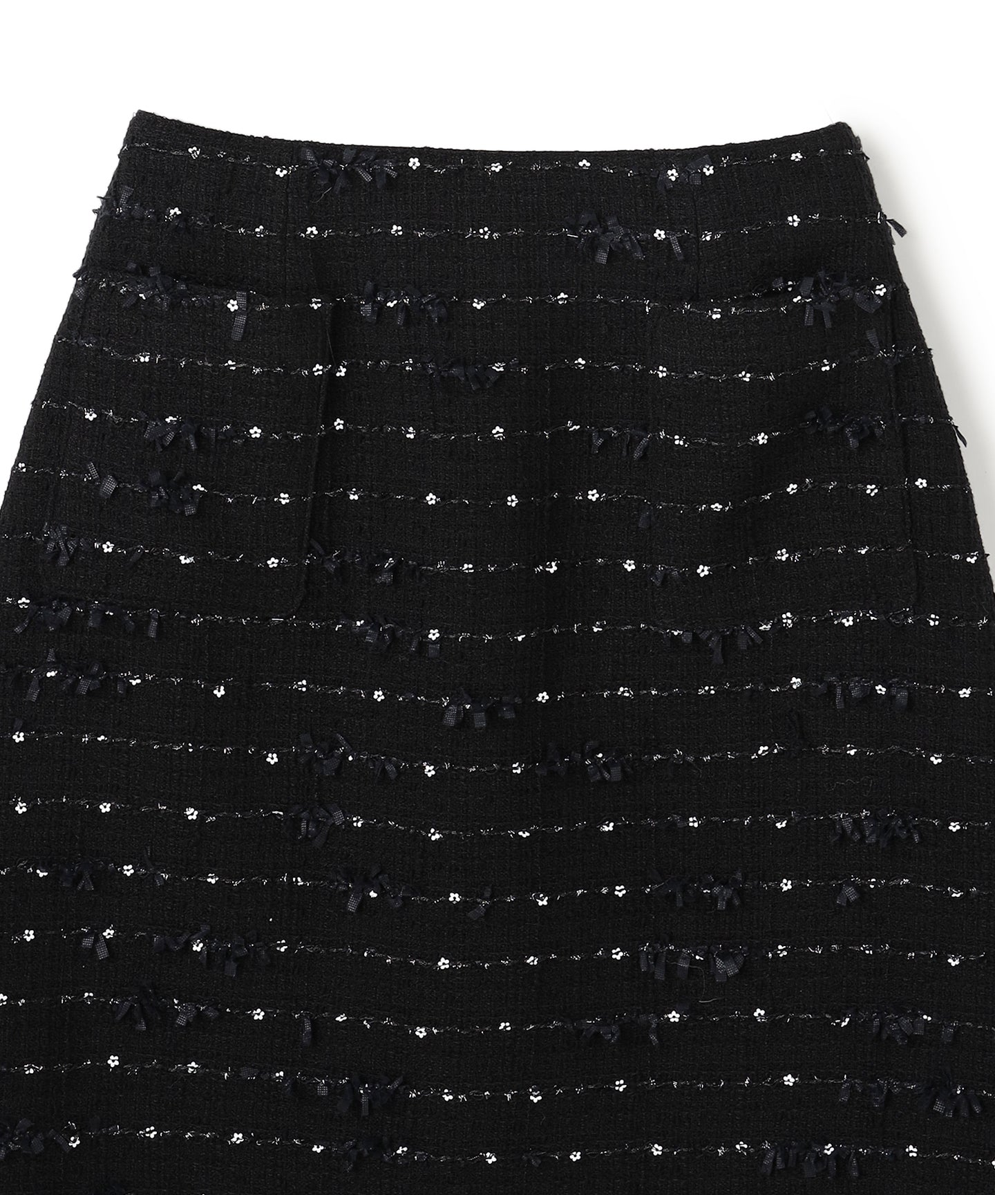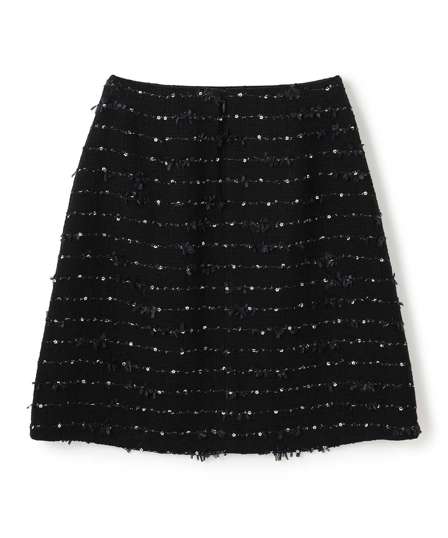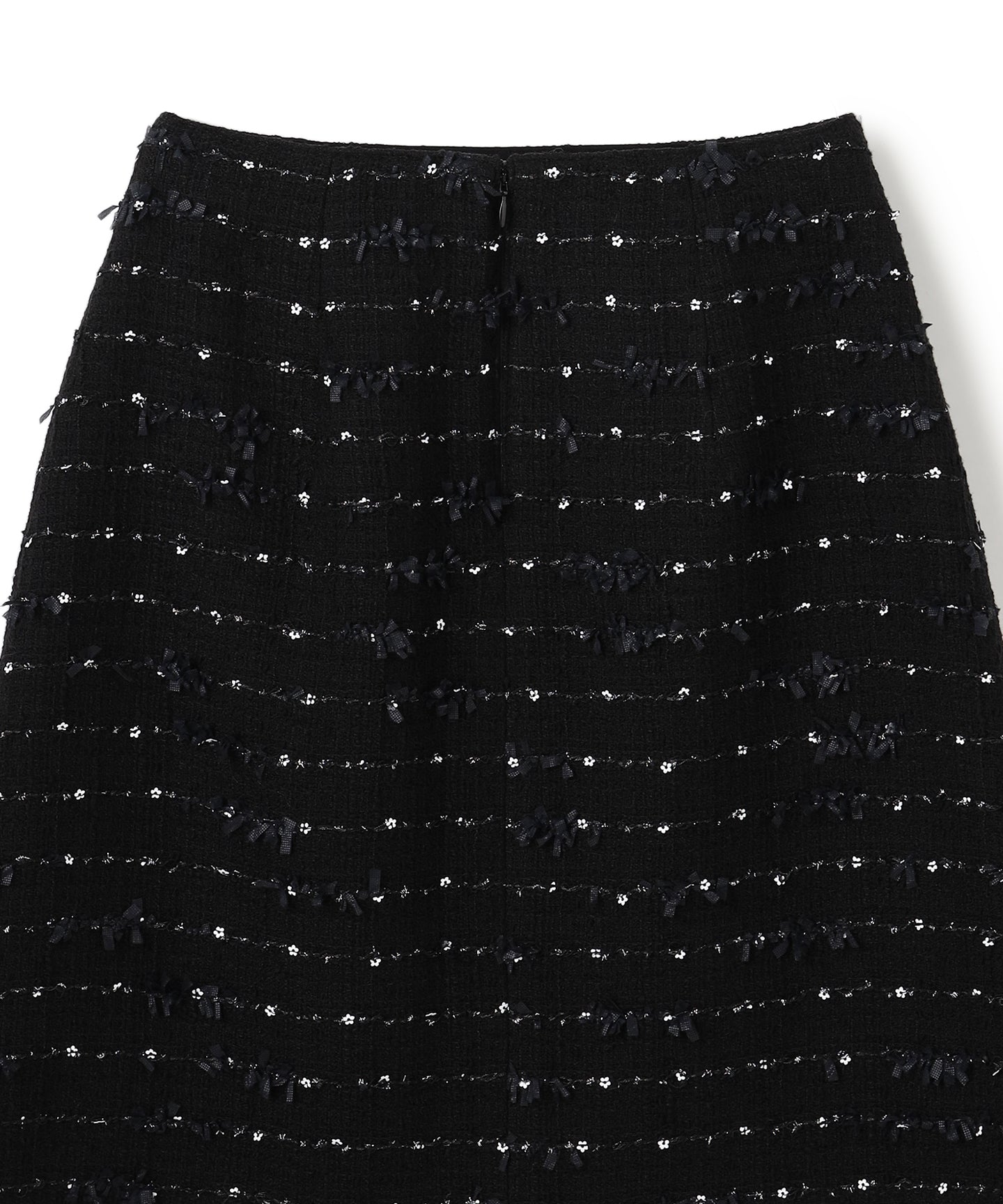 小花のスパンコールを繊細に散りばめた、華やかさと上品さを兼ね備えた特別なスカート。
