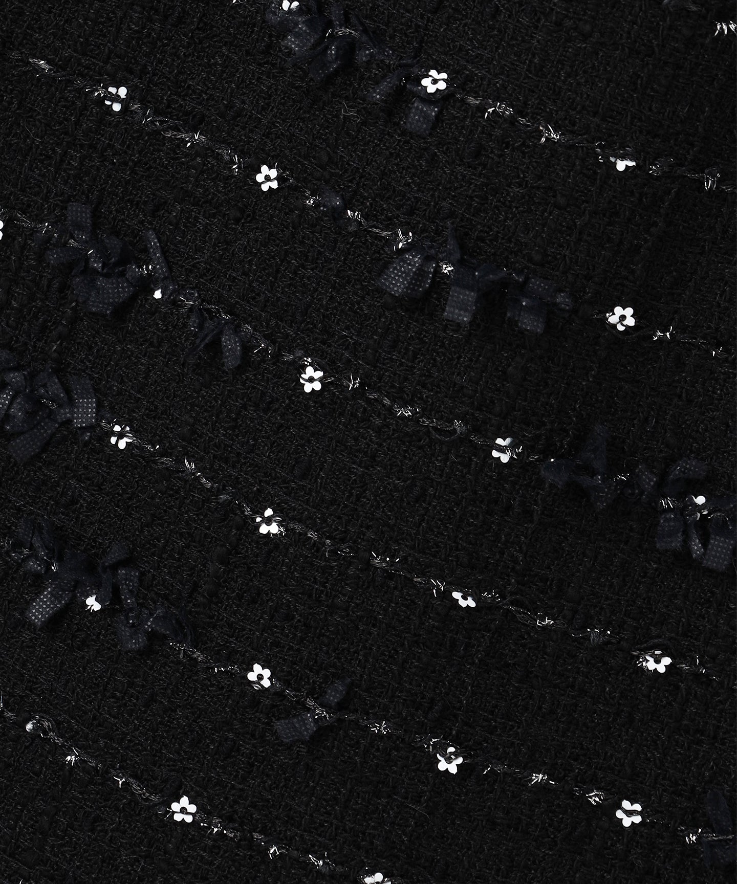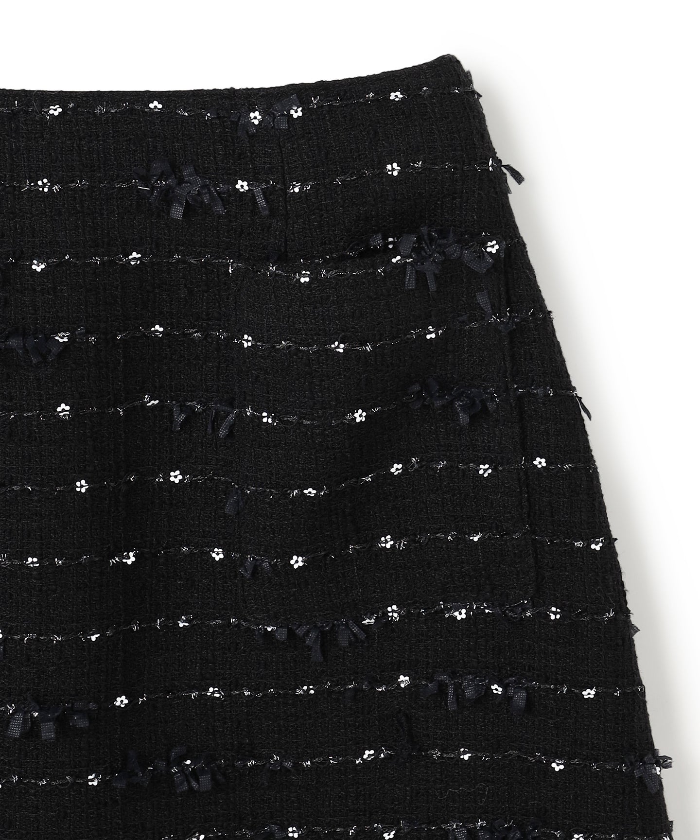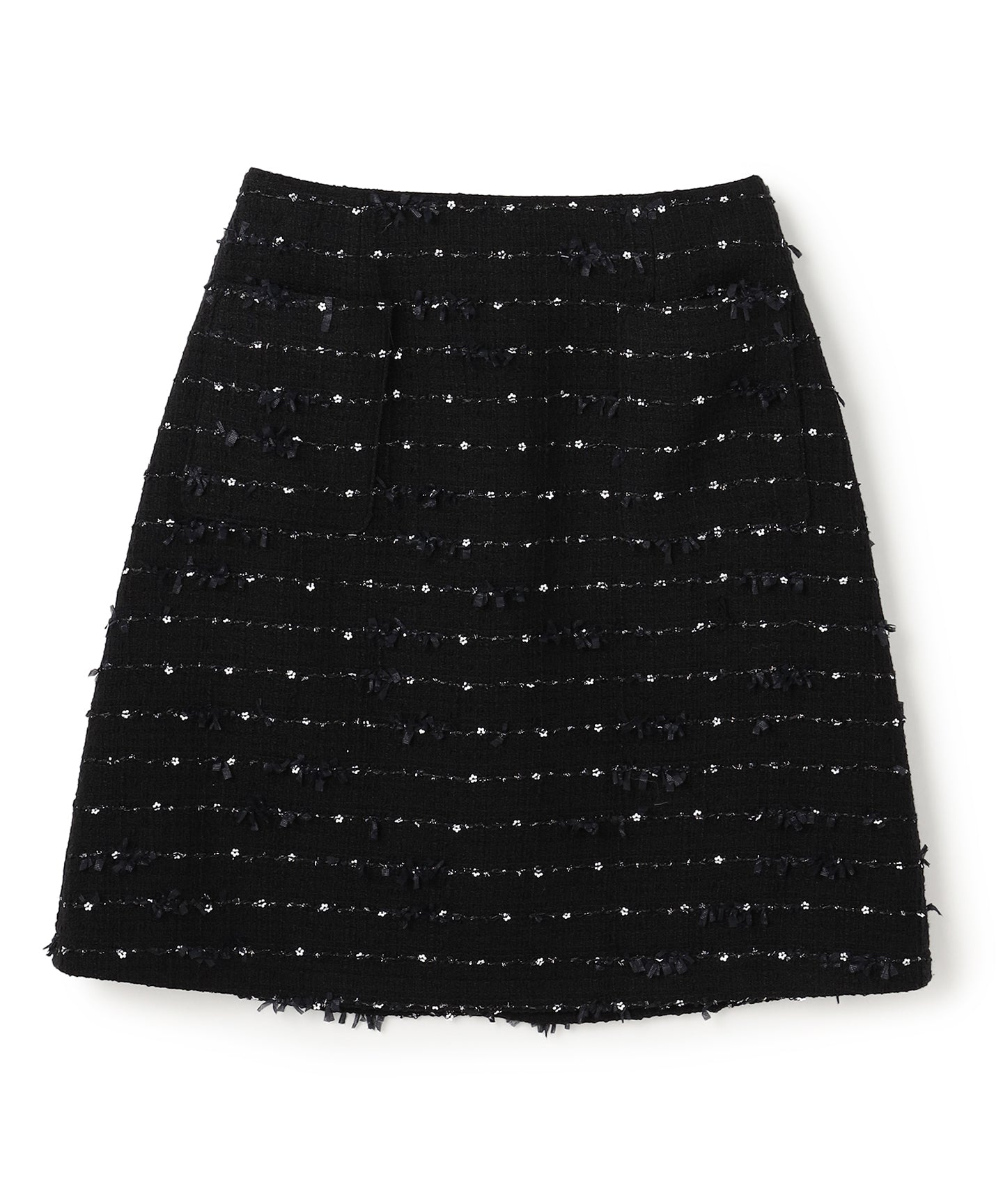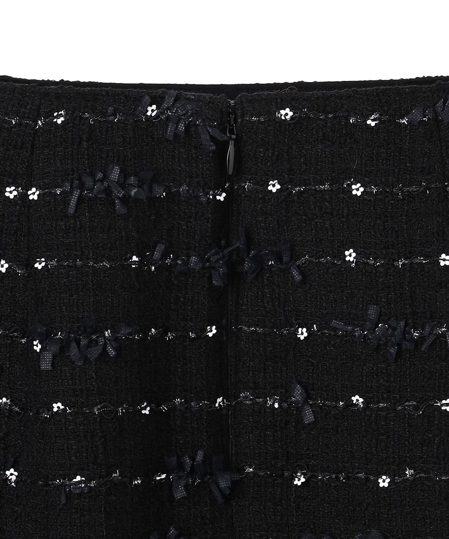 小花のスパンコールを繊細に散りばめた、華やかさと上品さを兼ね備えた特別なスカート。