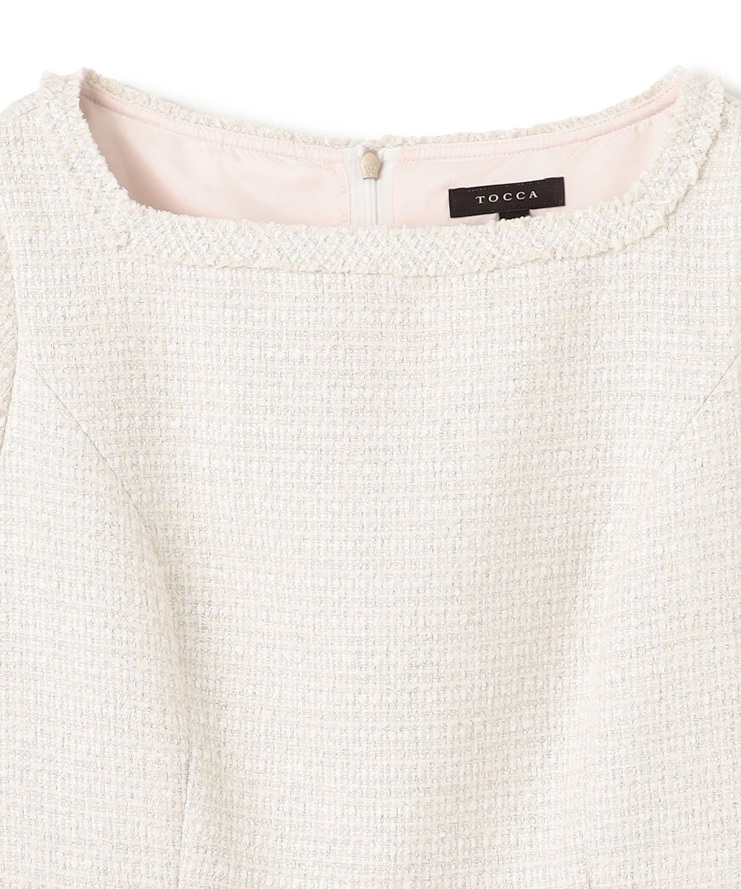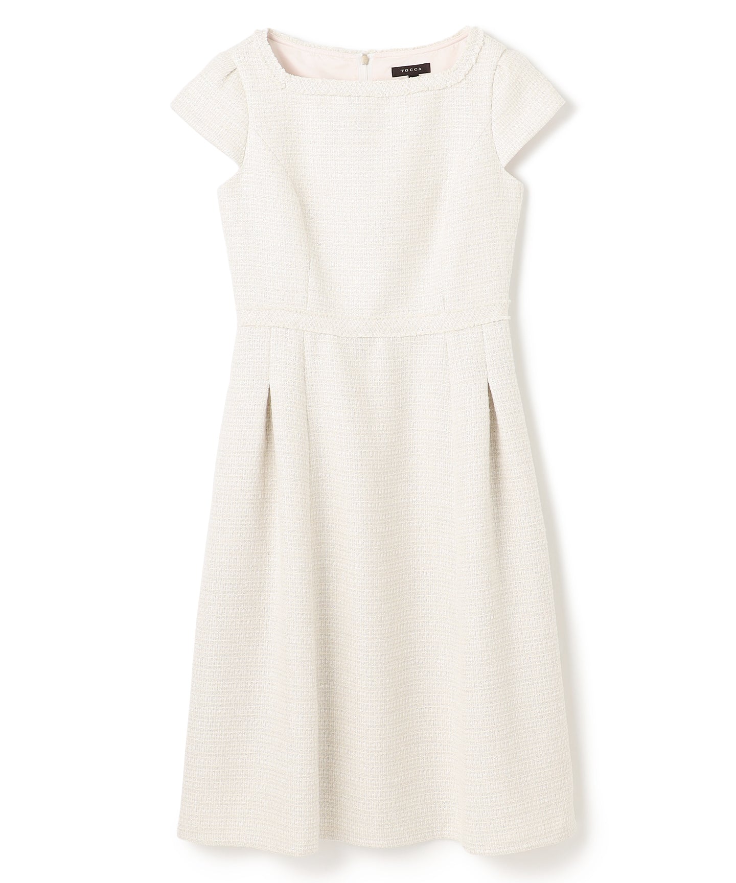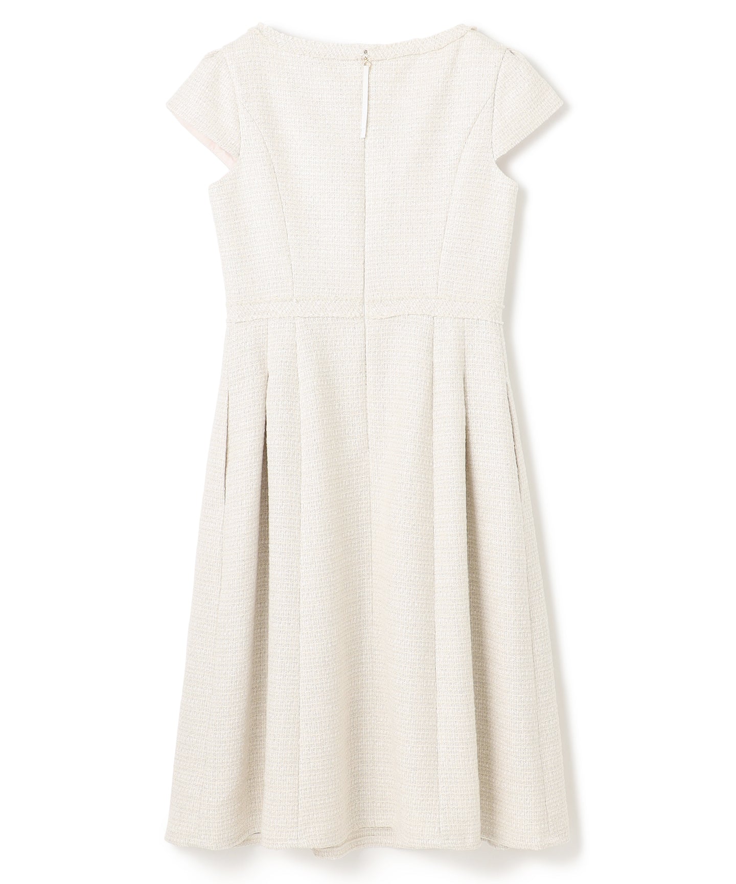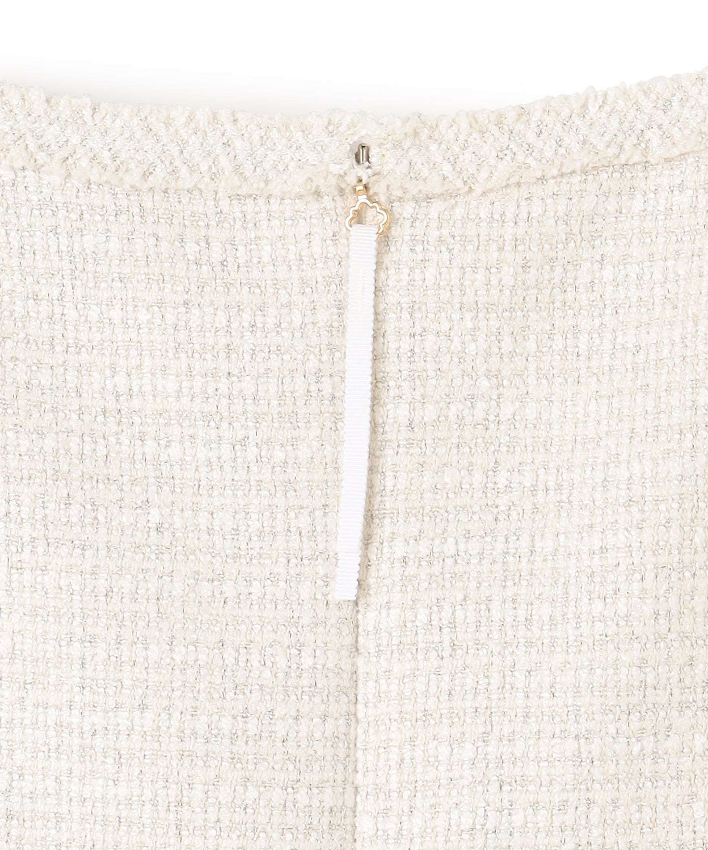 ひそやかに煌めくラメが織り込まれた、上品で華やかなツイード素材を使用したドレス。
