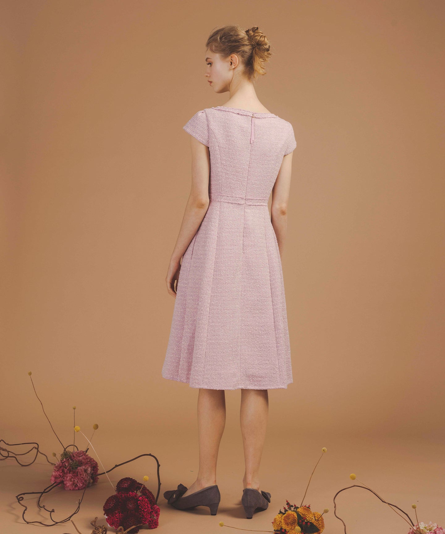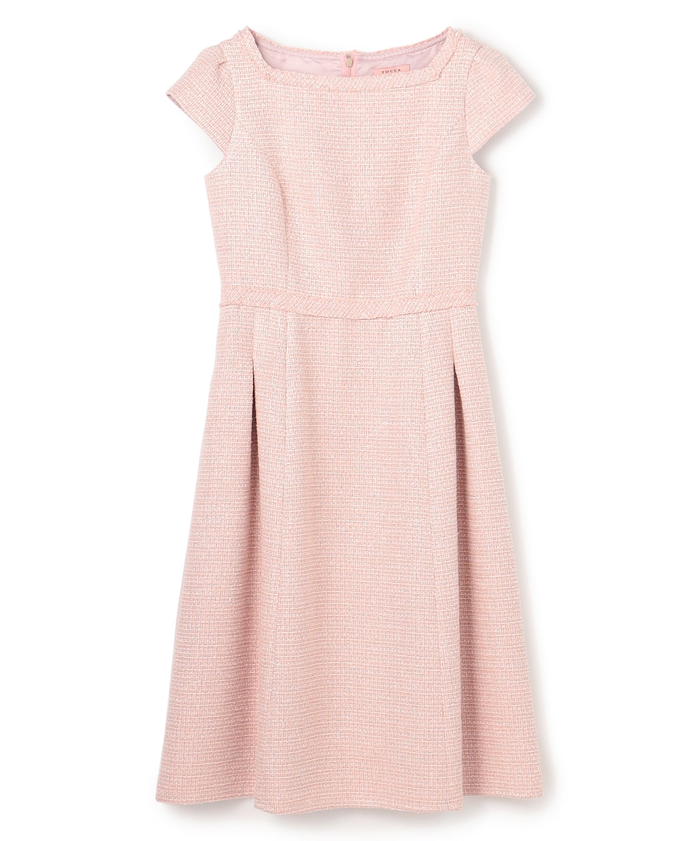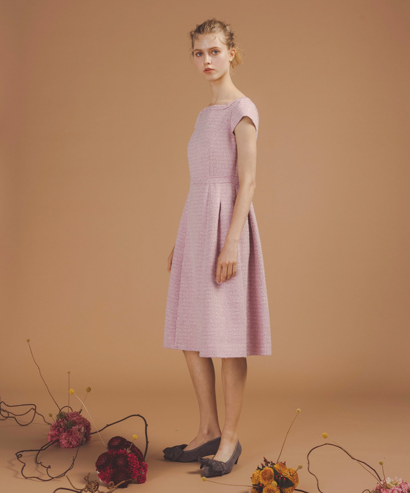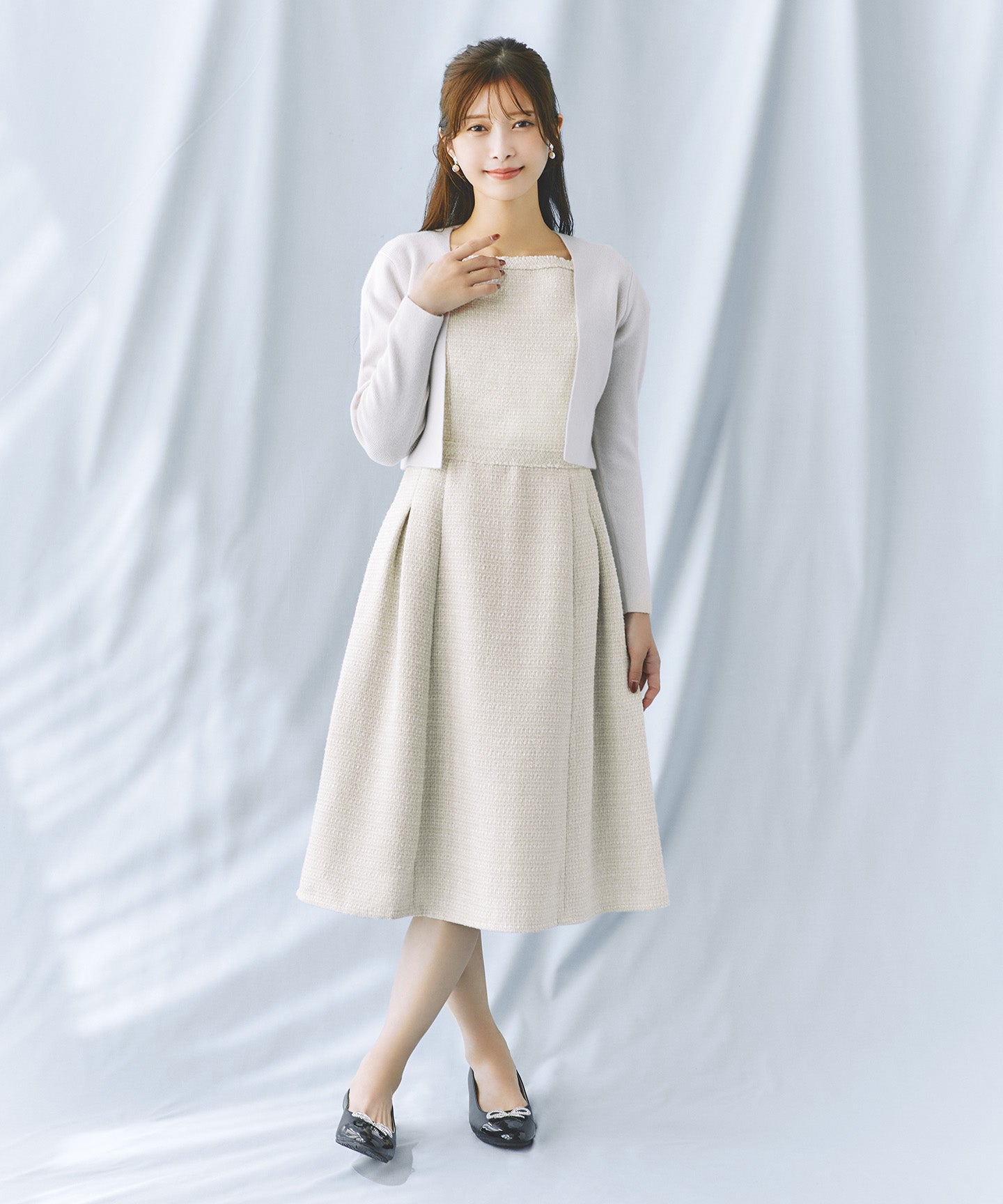 ひそやかに煌めくラメが織り込まれた、上品で華やかなツイード素材を使用したドレス。