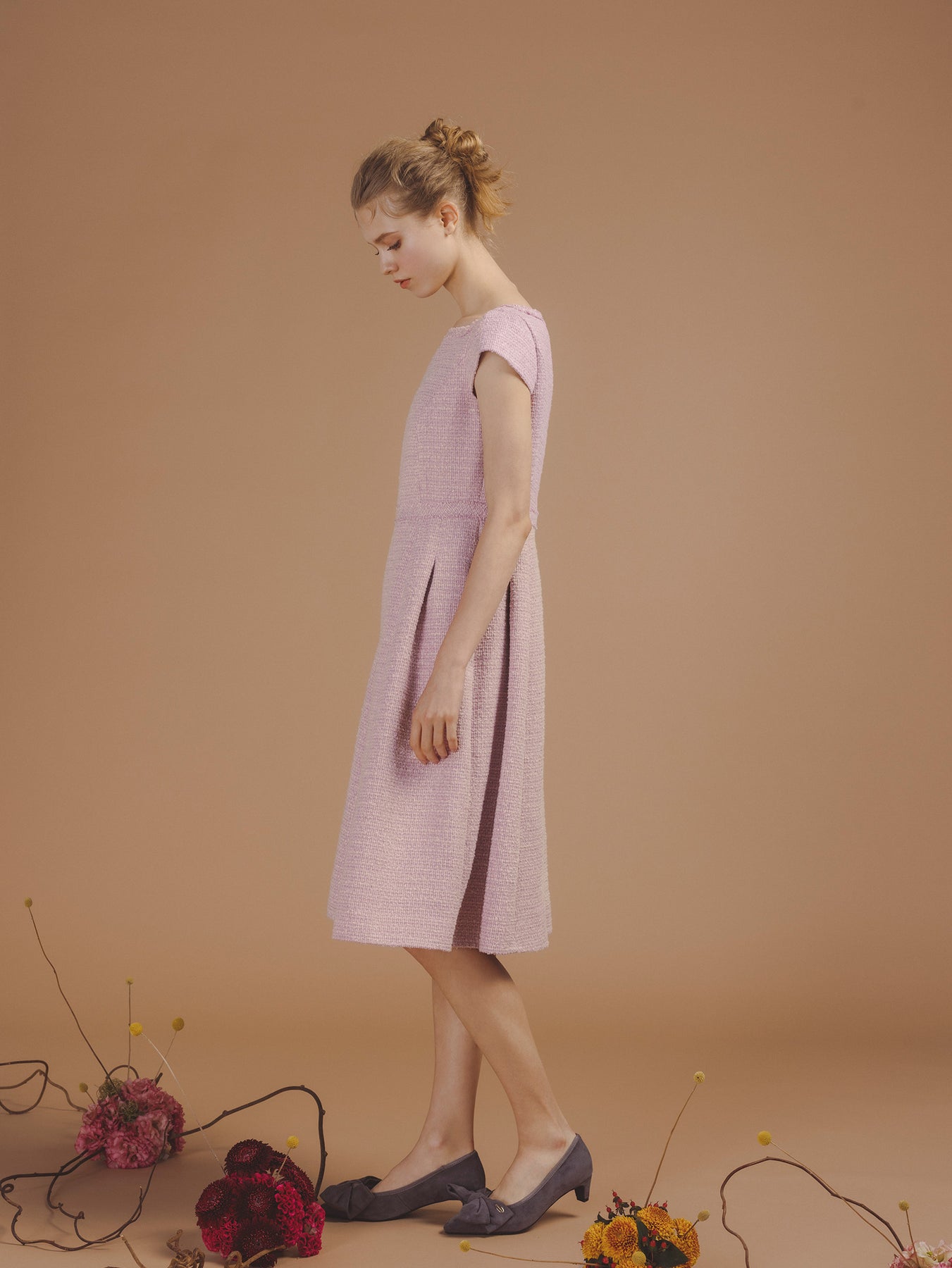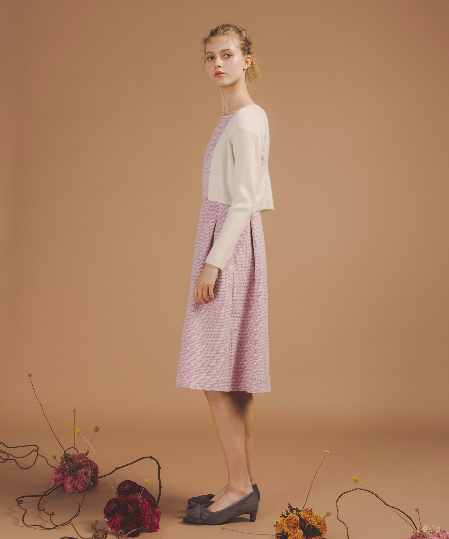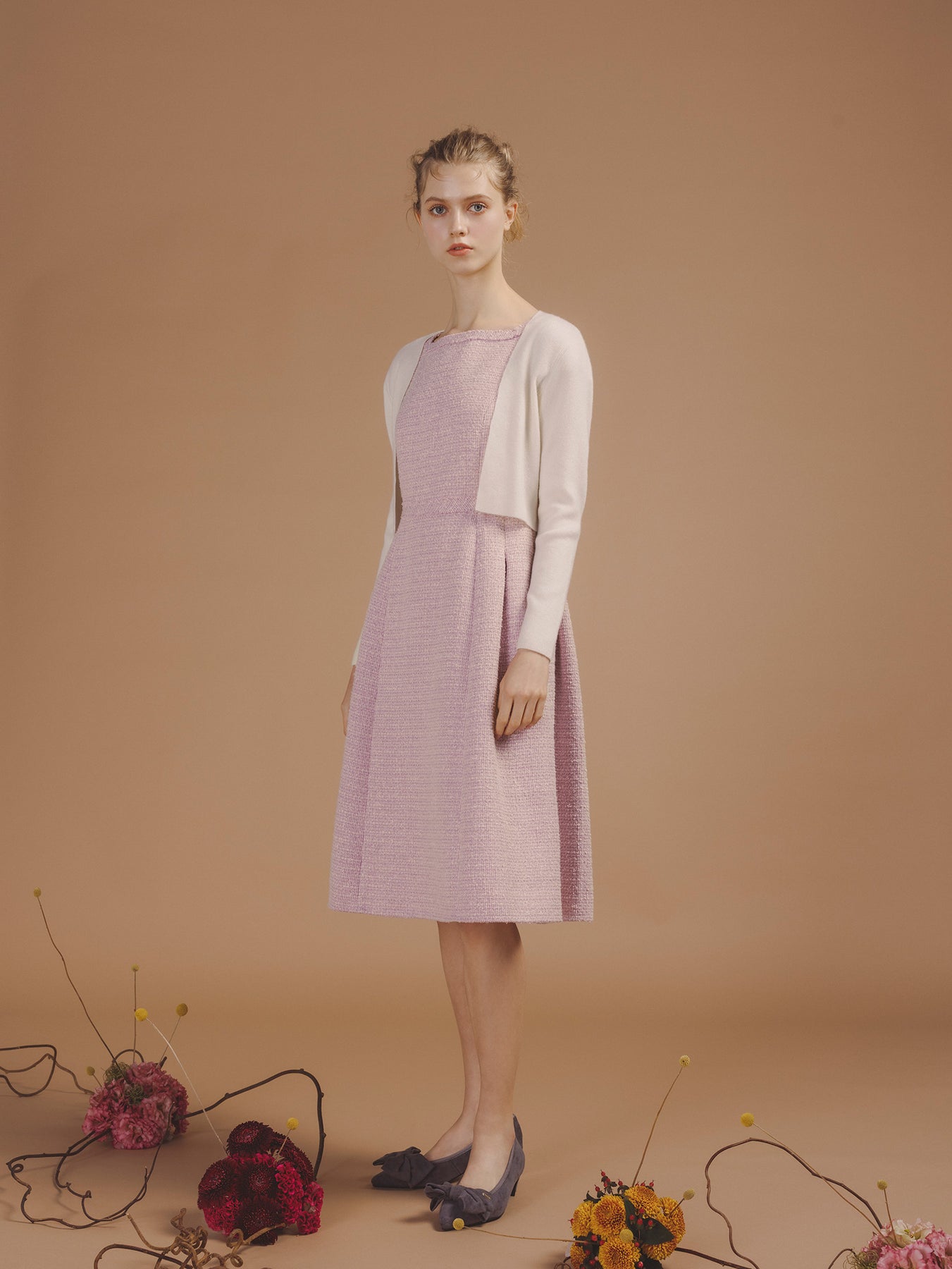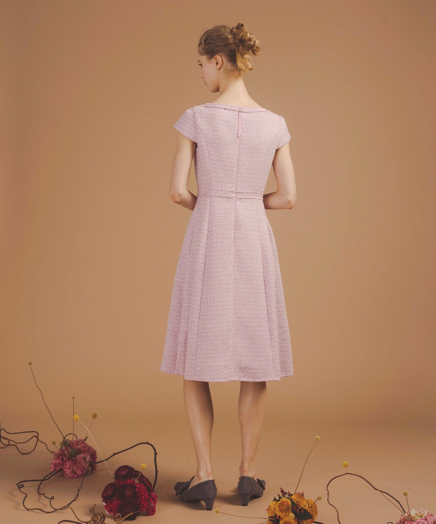 ひそやかに煌めくラメが織り込まれた、上品で華やかなツイード素材を使用したドレス。