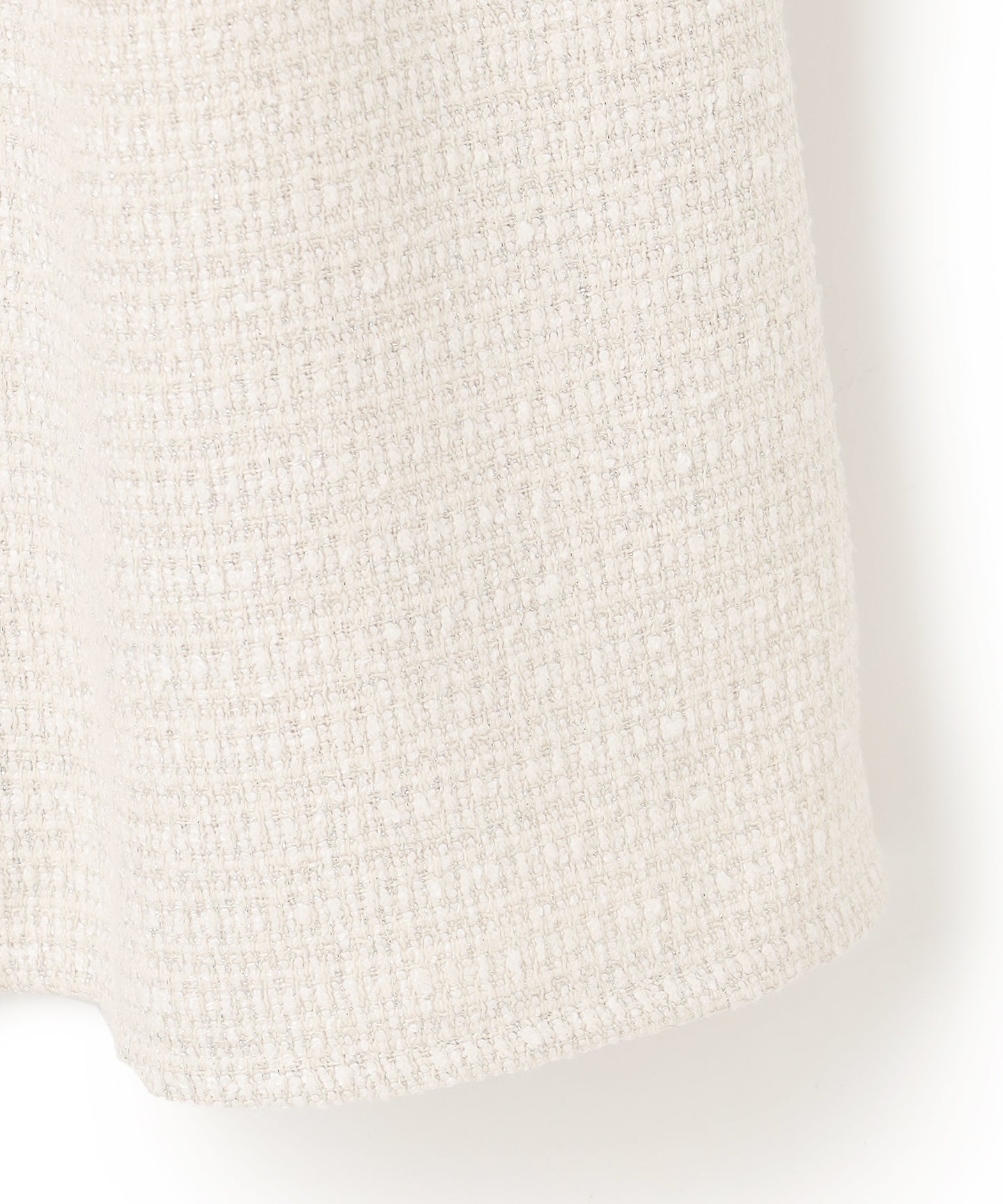 ツイードのハリ感が保たれやすく、長時間の着用でもきちんとした印象をキープしやすい上品で華やかな素材です。 またお手入れもしやすいのがポイント。