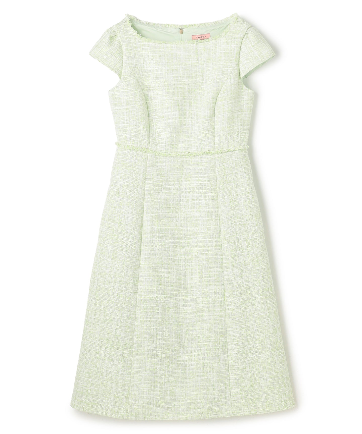 上品なツイード調素材で仕立てた、エレガントな印象のドレス。