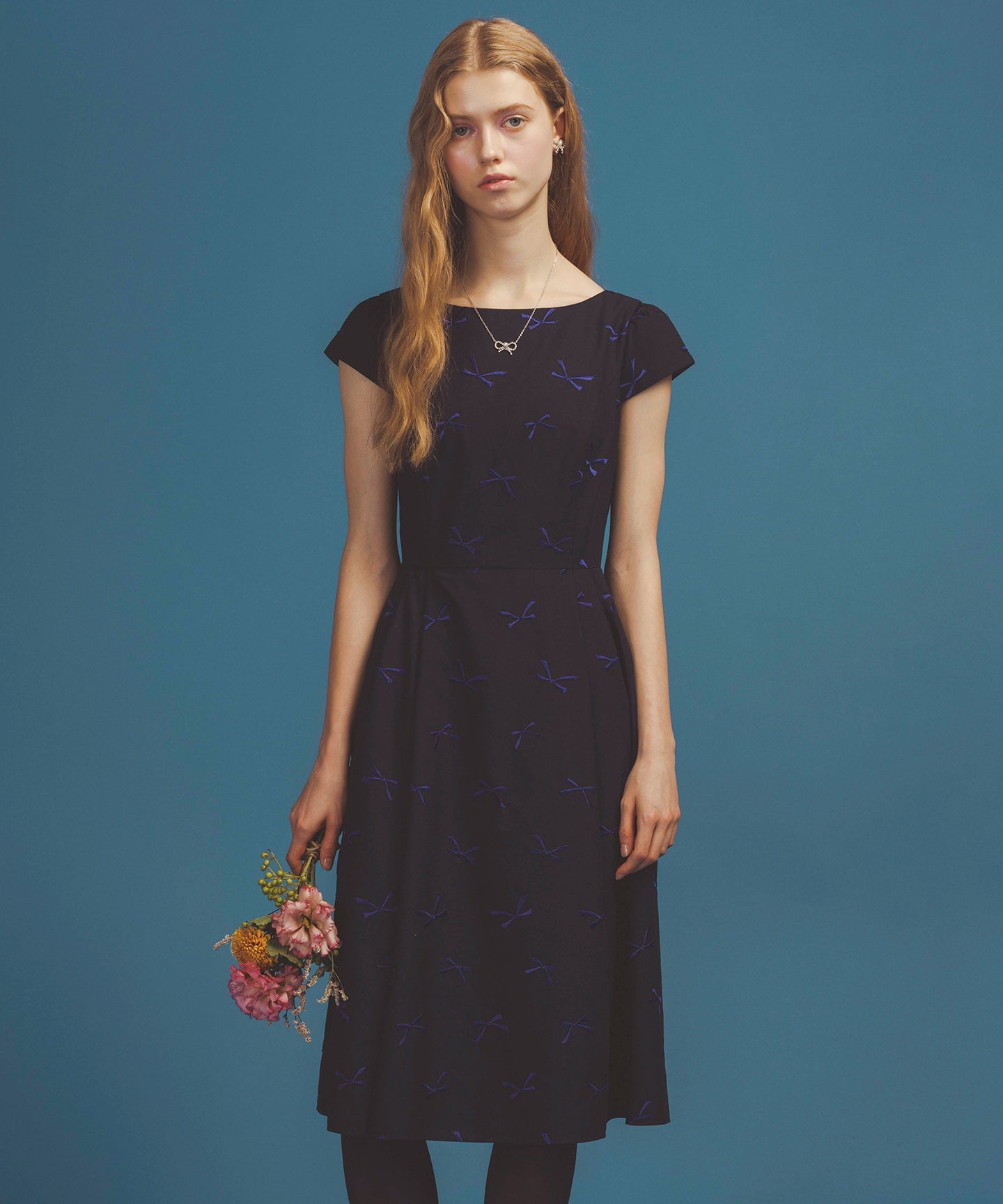 トレンドのリボンモチーフを繊細なラインストーンでかたちどったビジューネックレス。