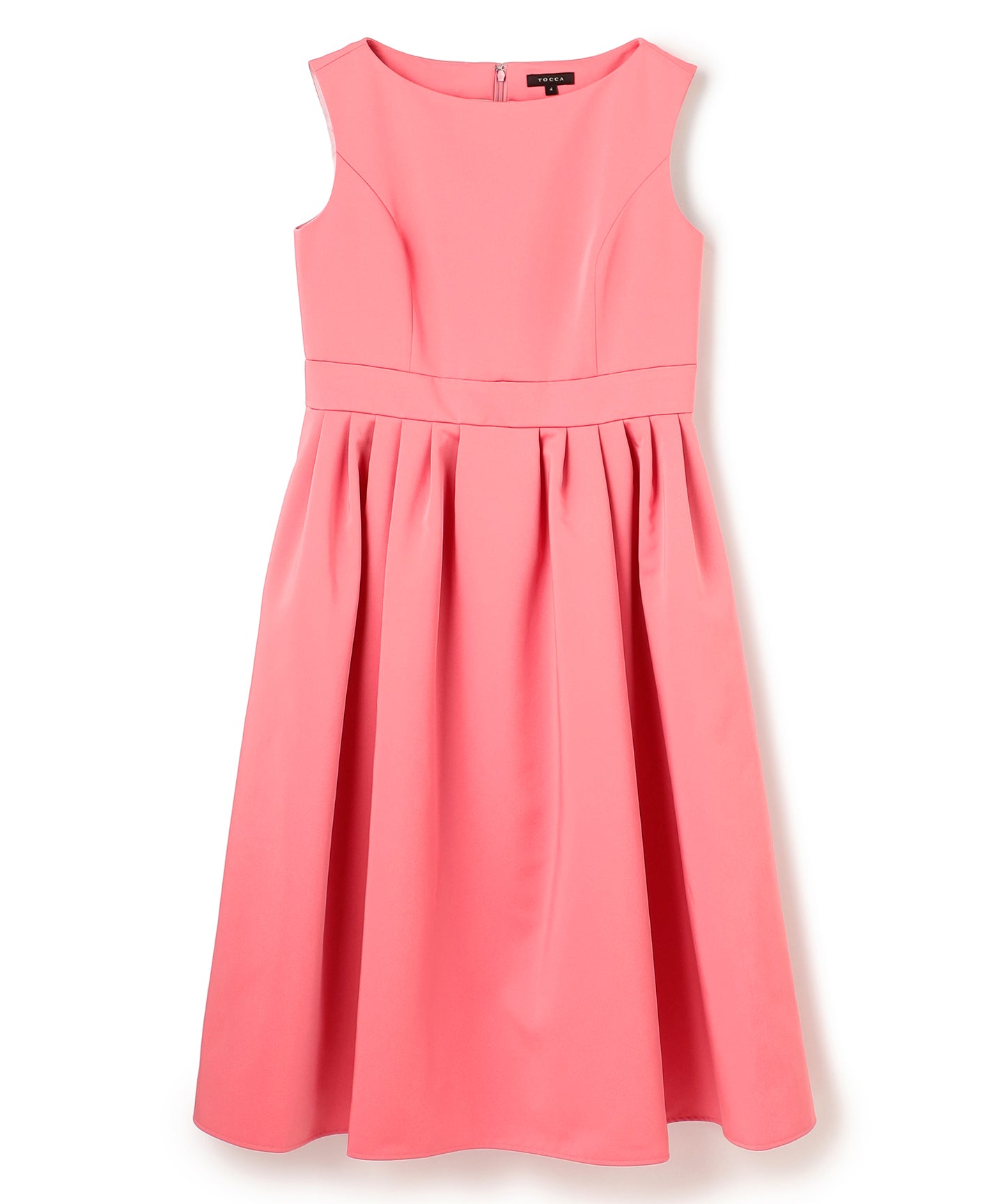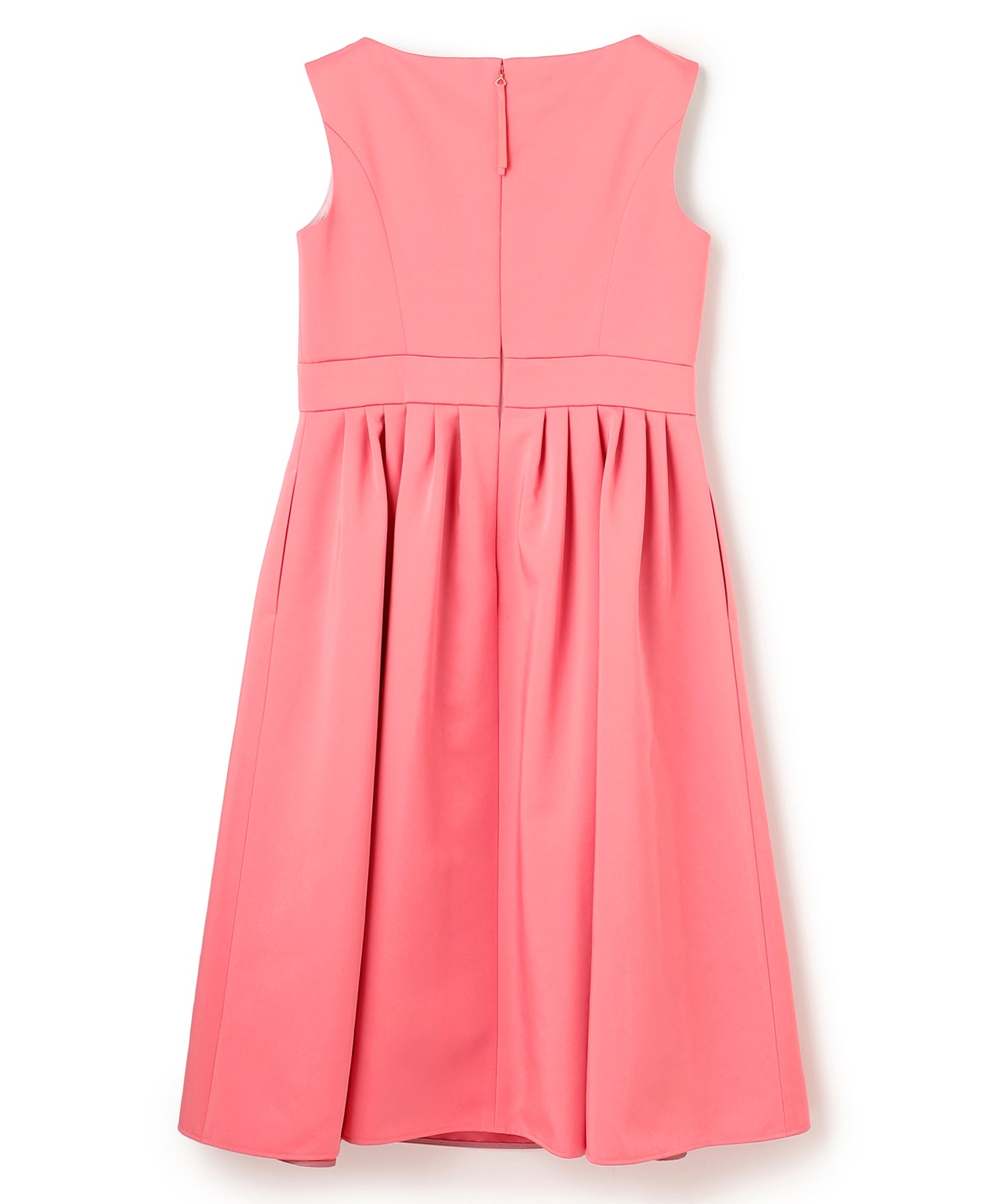 光沢感のある上質な生地を使用した、フィット&フレアのドレスです。スカート部分にはたっぷりとタックを入れることでドラマティックなシルエットに。ボートネックがデコルテを美しく見せ、シンプルながらも品のある雰囲気の1着です。