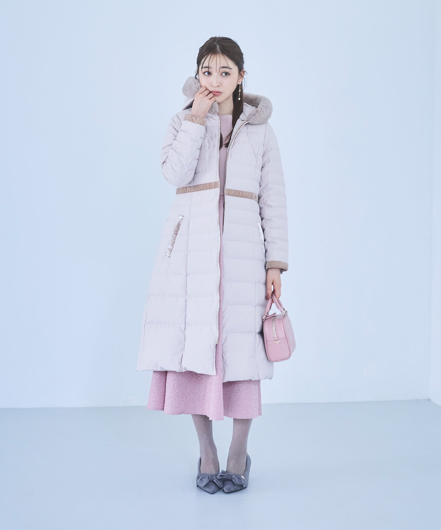 毎年高い人気を誇る、TOCCA定番の細見えシルエットが魅力のロングダウンコート。