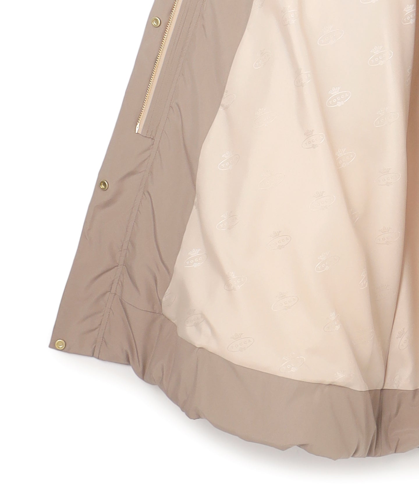 保温性にもとても優れていてダウン並みのあたたかさがあります。 ウエスト部分はご自身で調整することができるのでお好みのシルエットに。ゴールドの金具やグログランテープが、エレガントで女性らしさを演出します。