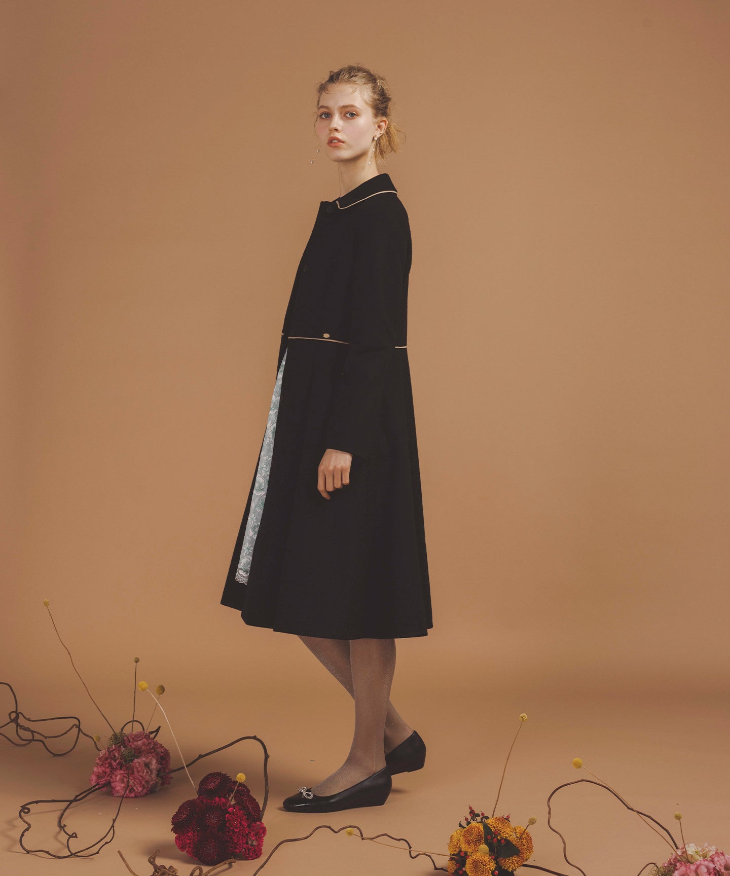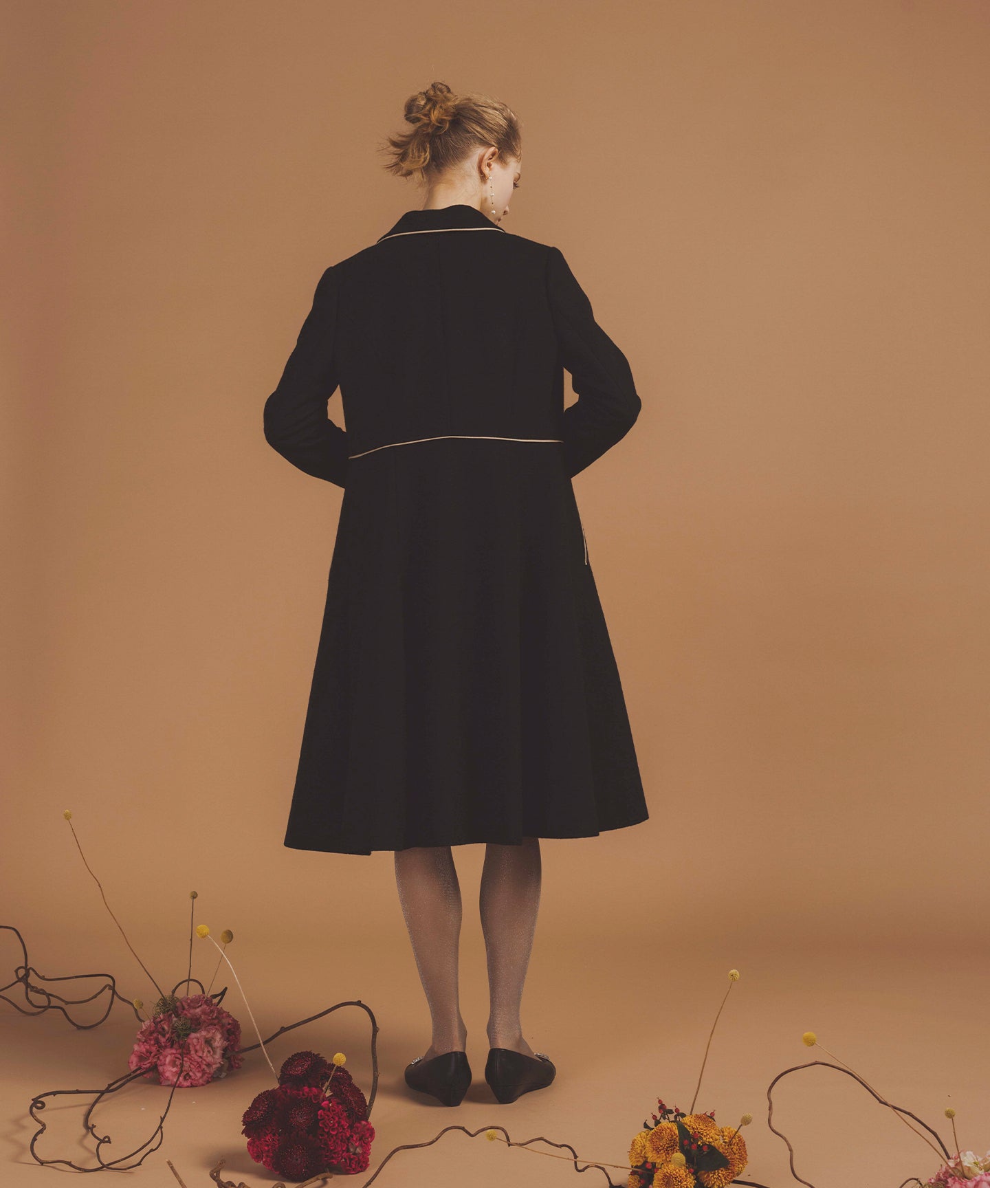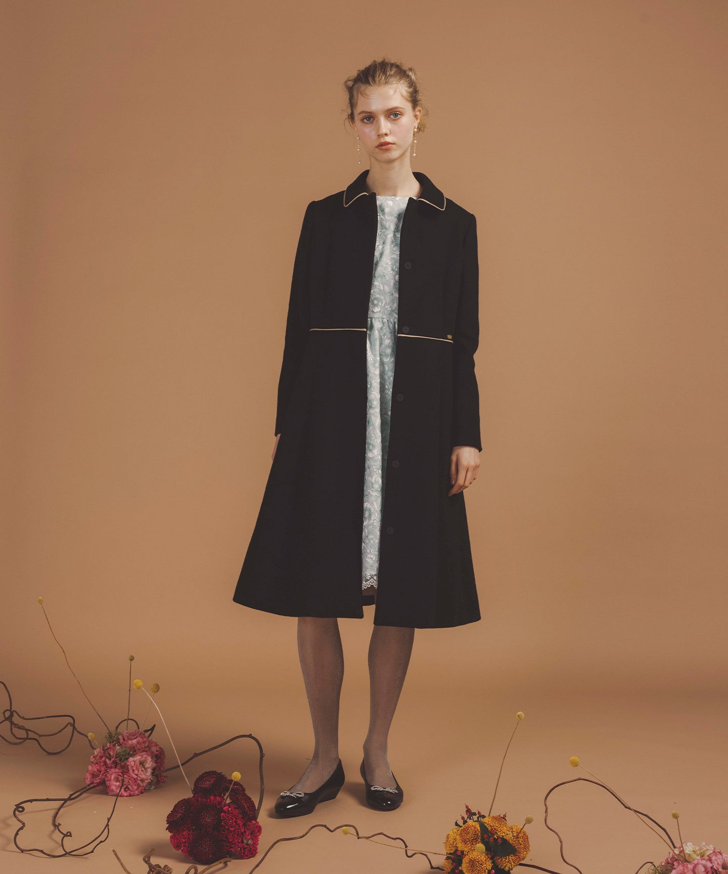 まるでカシミヤのように滑らかで、しっとりとした肌触りが魅力のウールコート。 TOCCAらしい。程よく広がるAラインシルエットは、身体のラインを美しく見せるだけでなく、ワンピースやスカートともバランス良く調和し、フェミニンなコーディネートを品よくまとめてくれます。 また、洗練された印象を与える配色のディテール使いもポイント。 襟付きのきちんと感あるデザインは、通勤スタイルにはもちろん、学校行事やちょっとしたセレモニーなどのオケージョンシーンにも対応。上品で落ち着いた雰囲気の中に、華やかさをひとさじ加えた、大人の女性にふさわしいコートに仕上げました。 【素材】 上質なウールカシミアを使用し、密に仕上げたコート素材。 保温性に優れています。上品な光沢感があり、防風性が高いです。