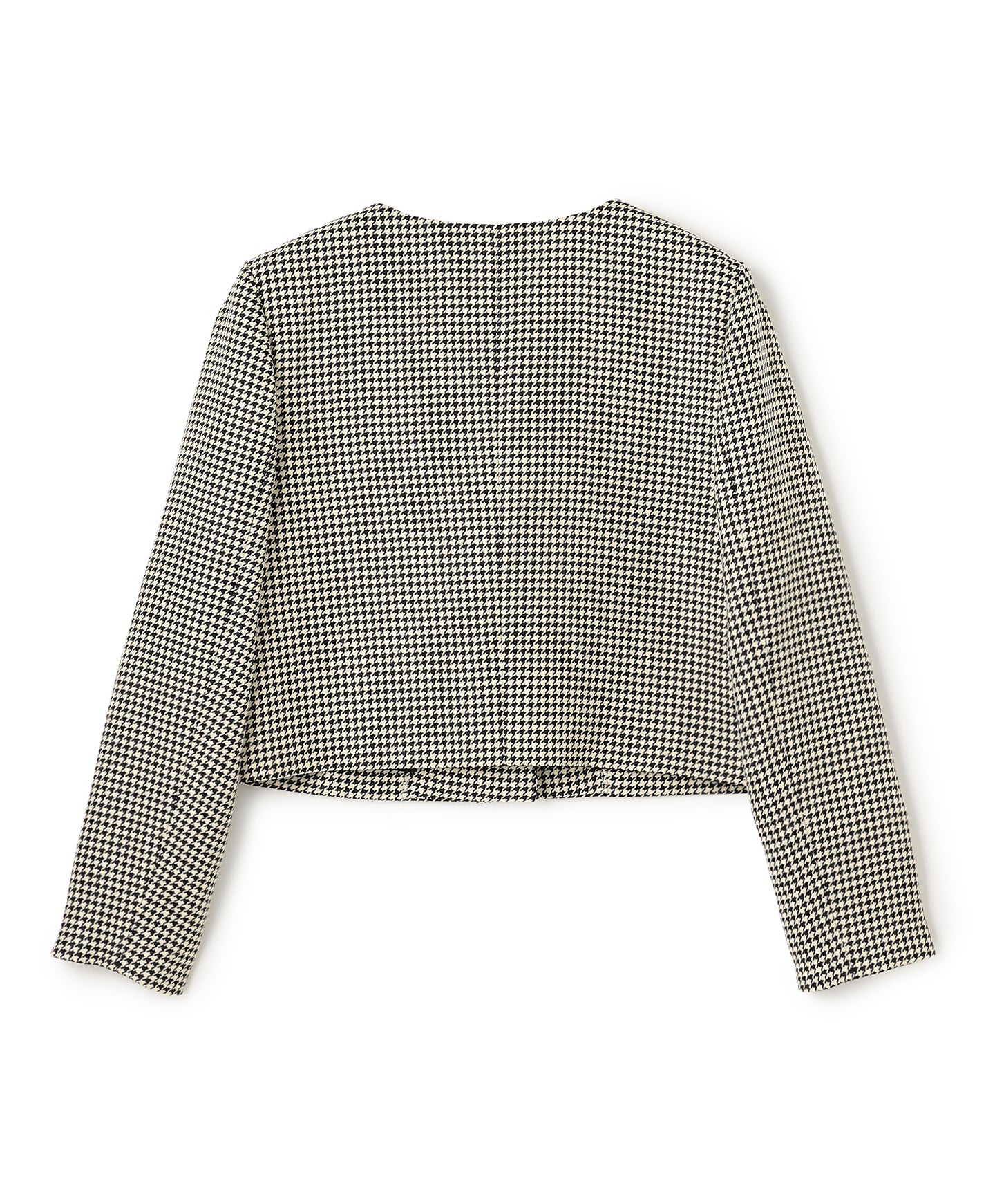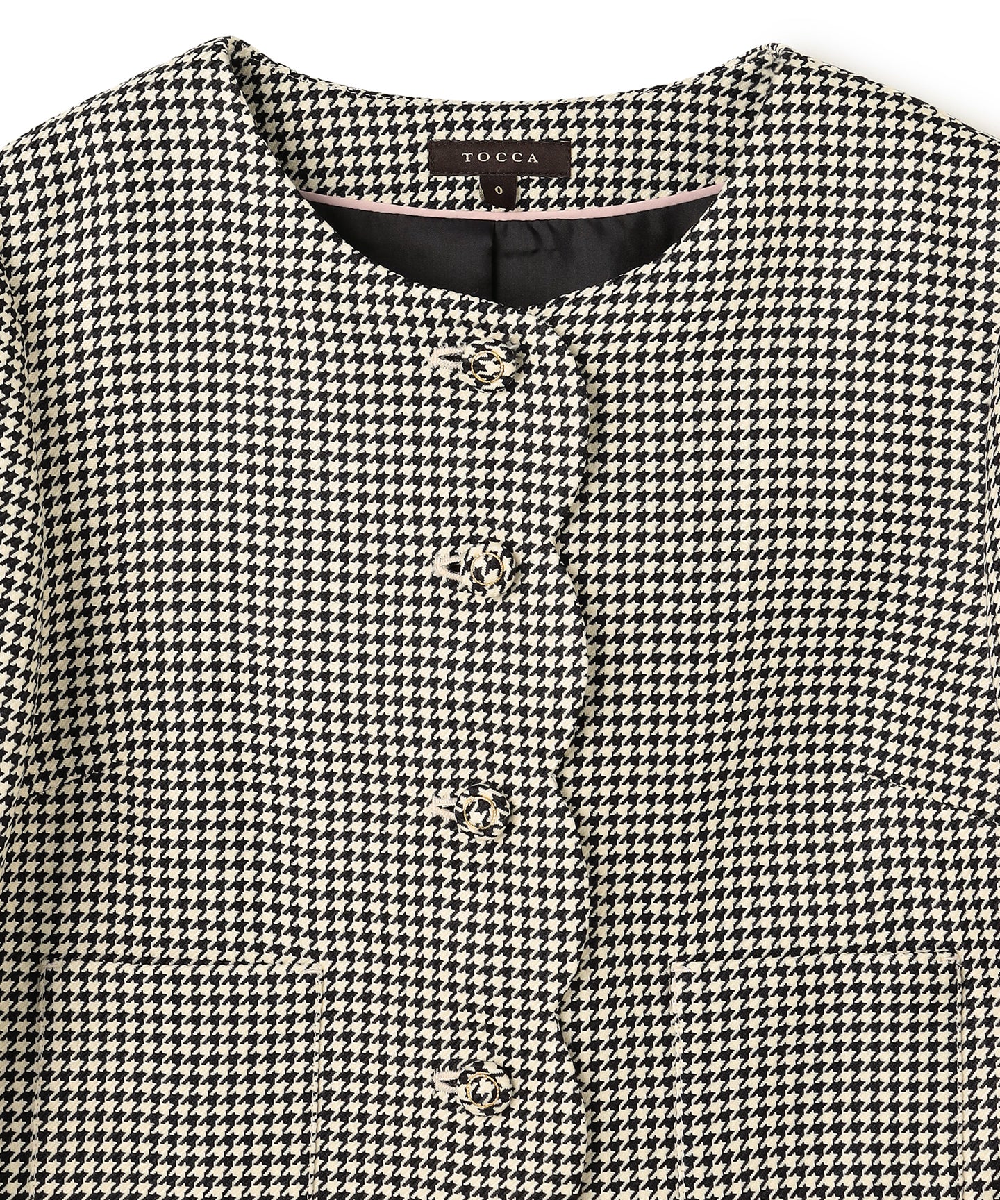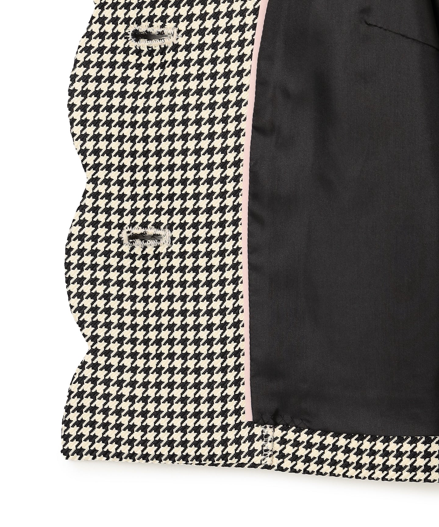 スカラップデザインが目を惹く、おしゃれなジャガード素材を使用した上品な印象のショート丈ジャケット。特徴的なスカラップカットは、女性らしさを引き立てながら、柔らかく優しい印象を演出。品のあるシルエットで、きちんと感とフェミニンさを両立させた一着です。