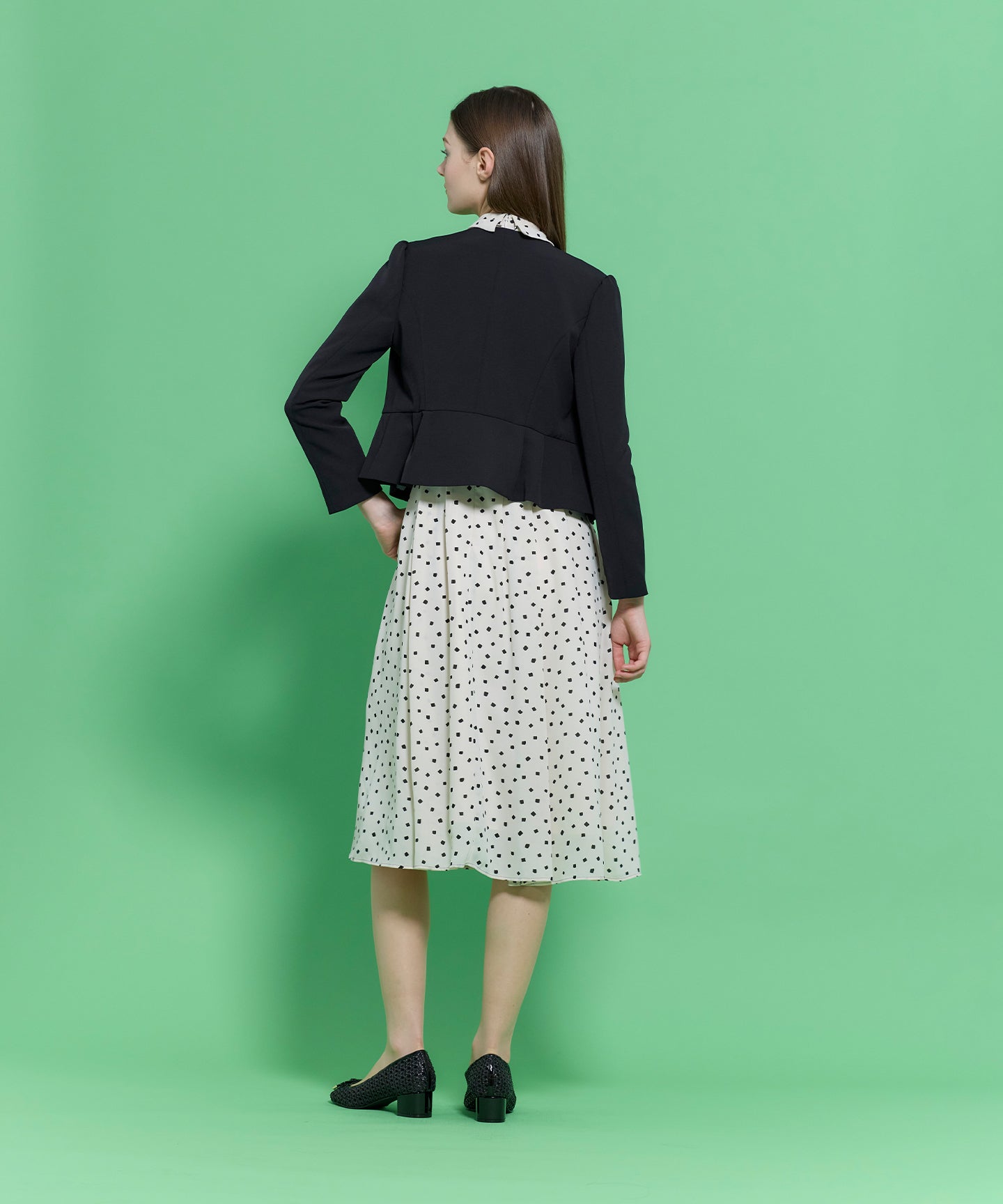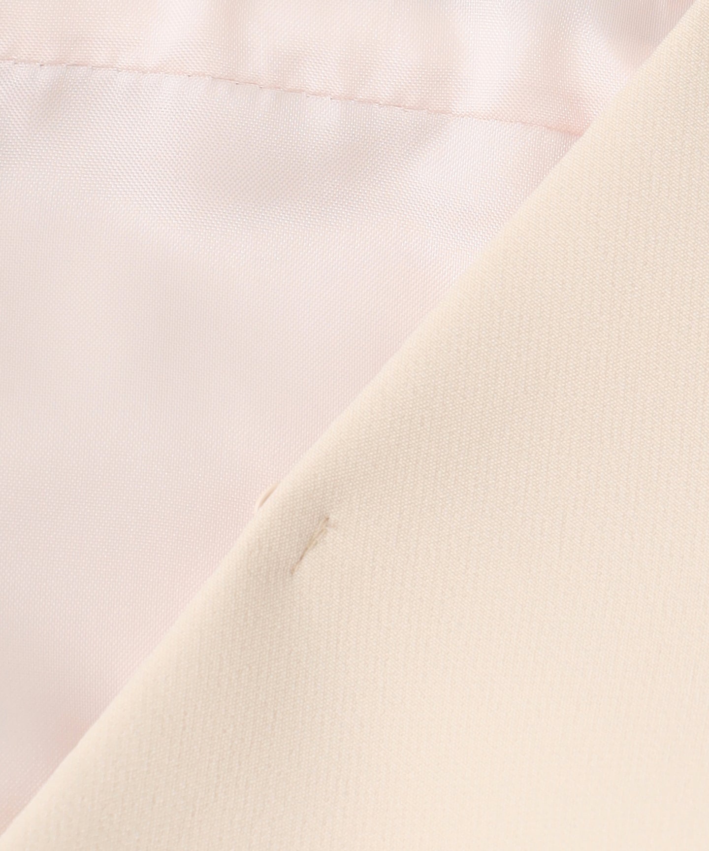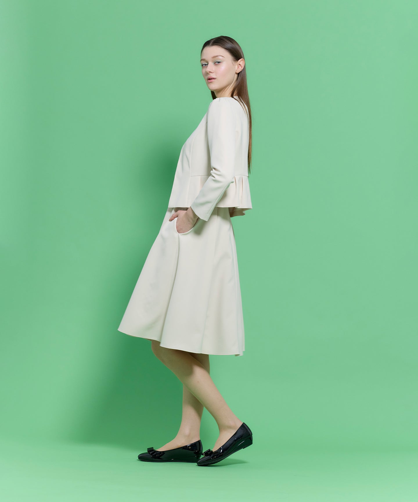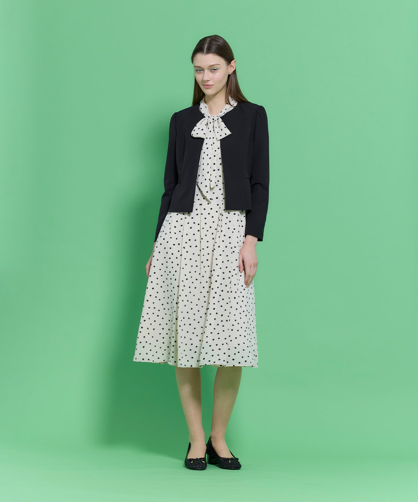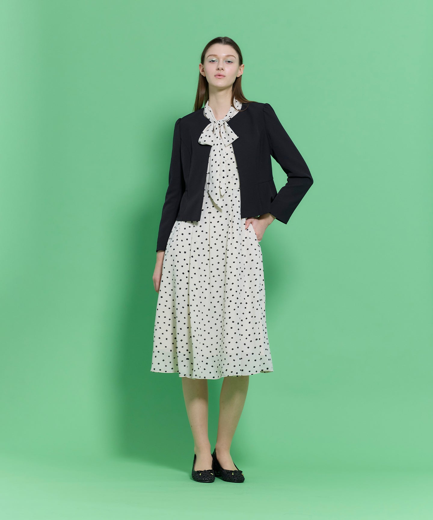 ドレスと同素材のジャケットは、一見きちんとした佇まいながら、実はとても軽く柔らかい着心地で、堅苦しさを感じさせないストレスフリーな仕上がり。 身体に沿いすぎない程よいシェイプラインで、女性らしいシルエットを演出しながら動きやすさもあります。