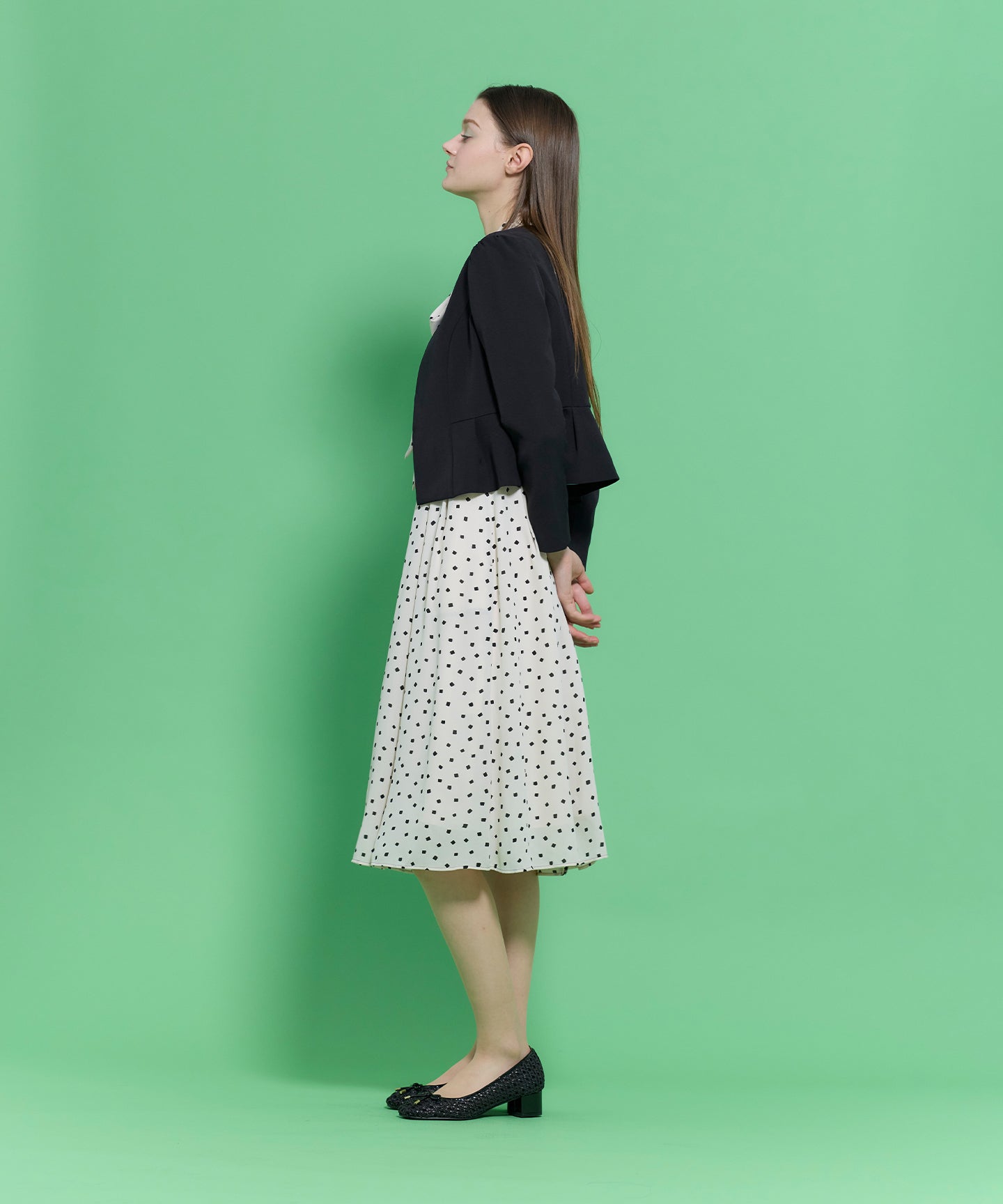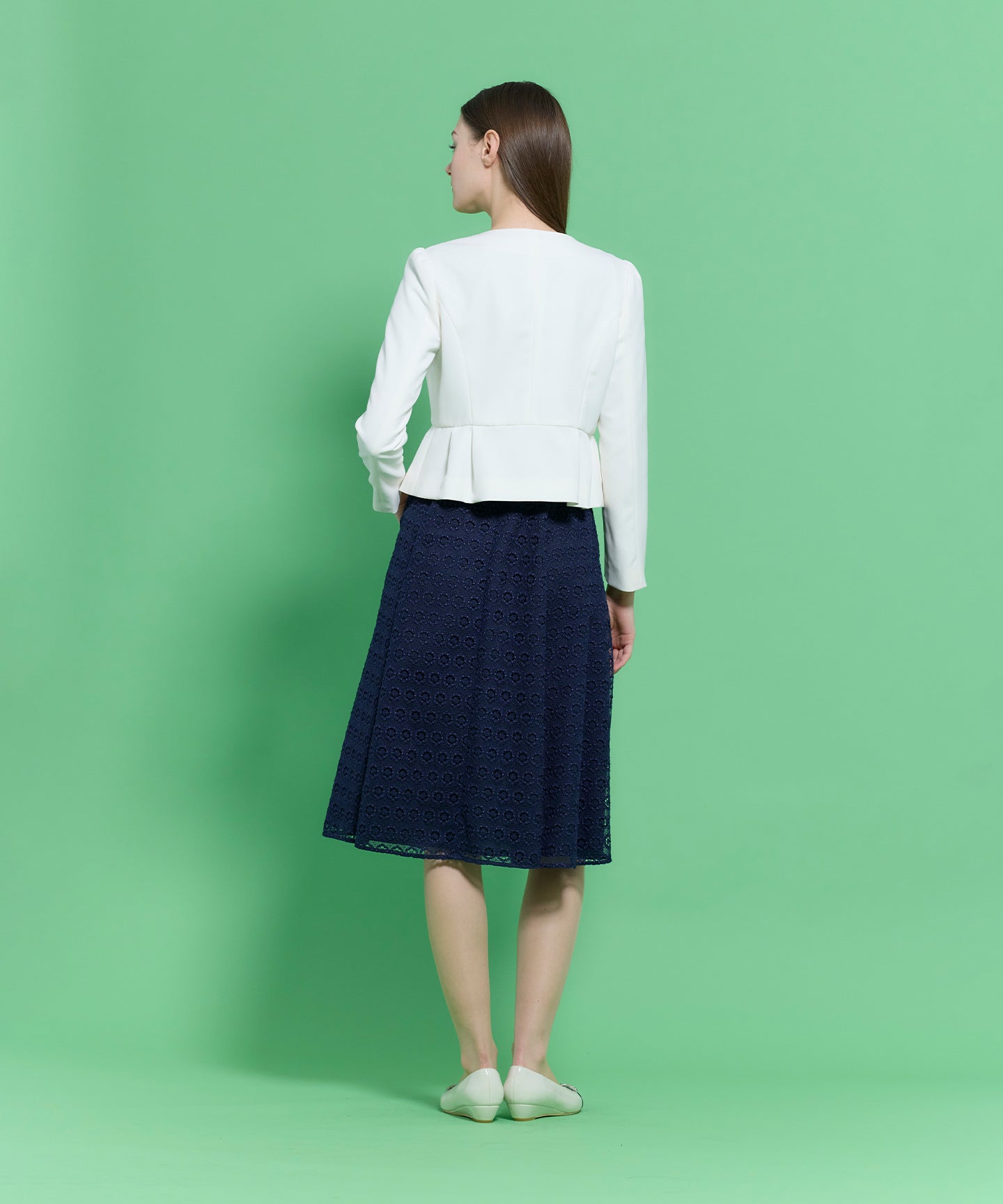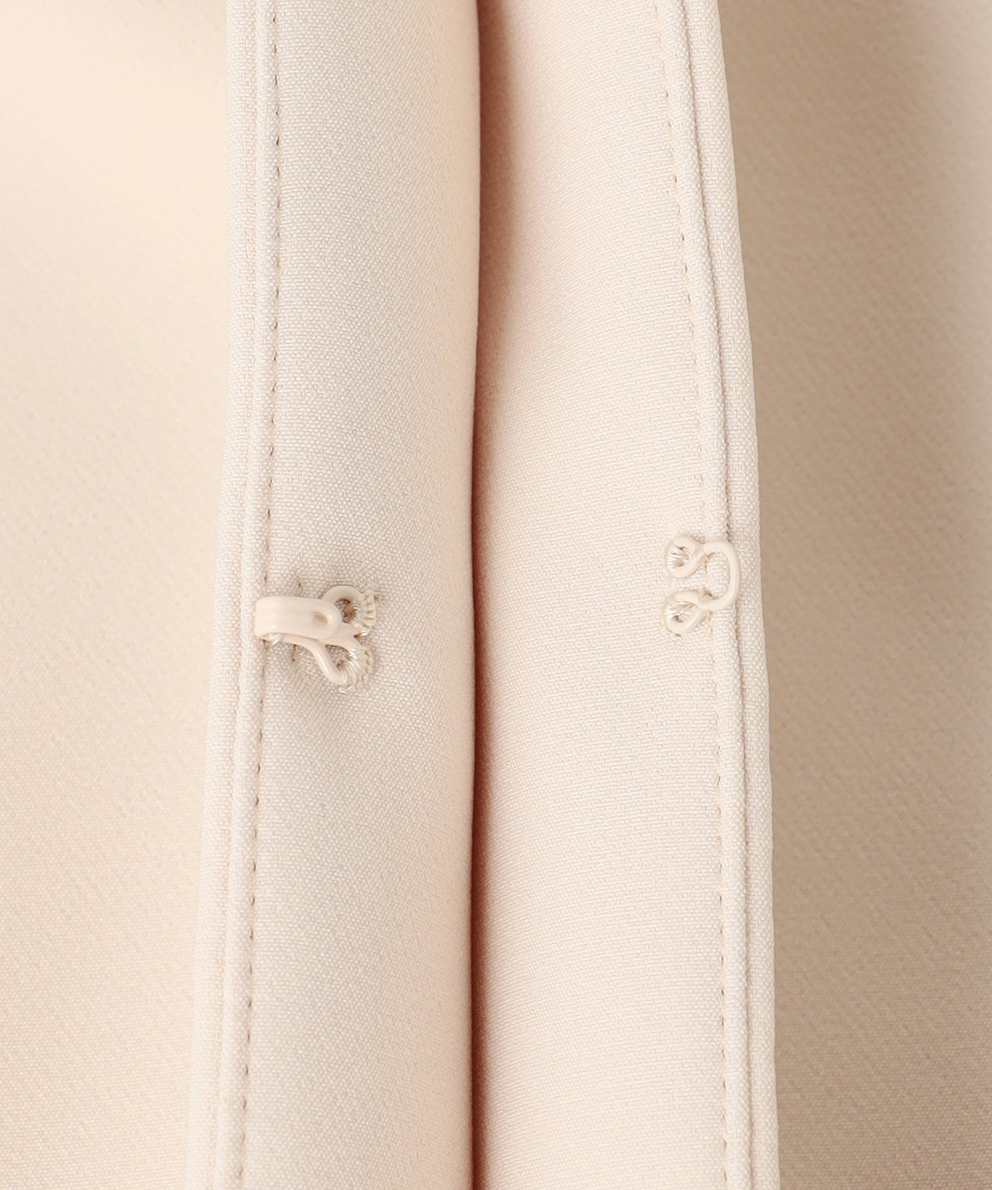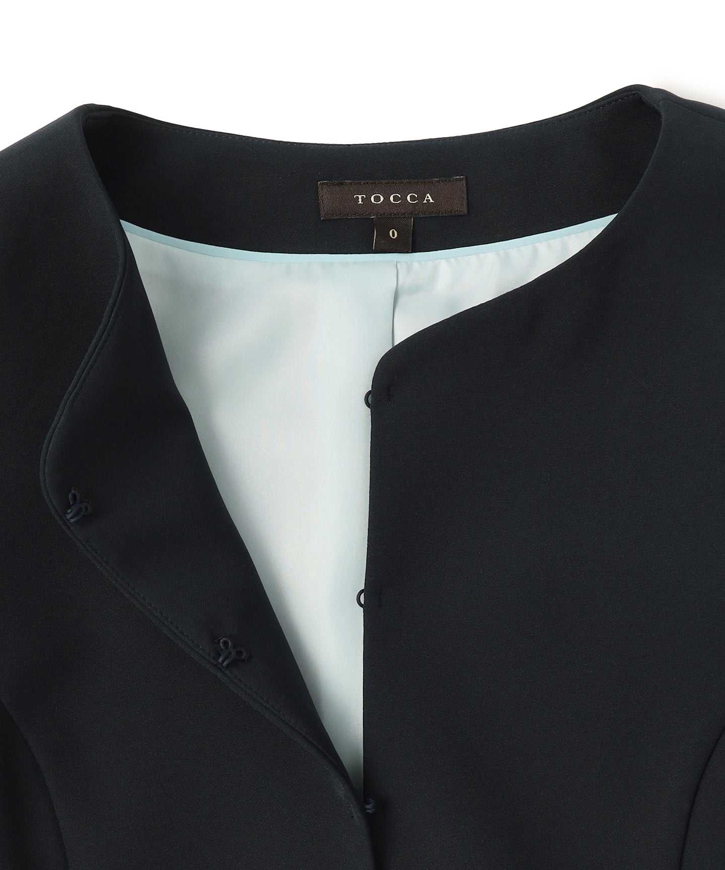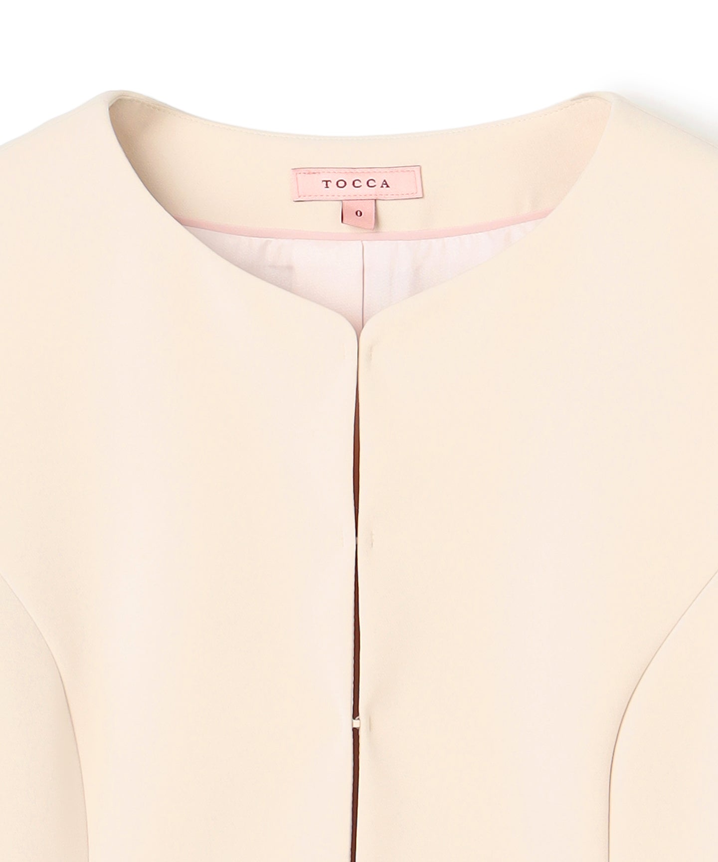 ドレスと同素材のジャケットは、一見きちんとした佇まいながら、実はとても軽く柔らかい着心地で、堅苦しさを感じさせないストレスフリーな仕上がり。 身体に沿いすぎない程よいシェイプラインで、女性らしいシルエットを演出しながら動きやすさもあります。