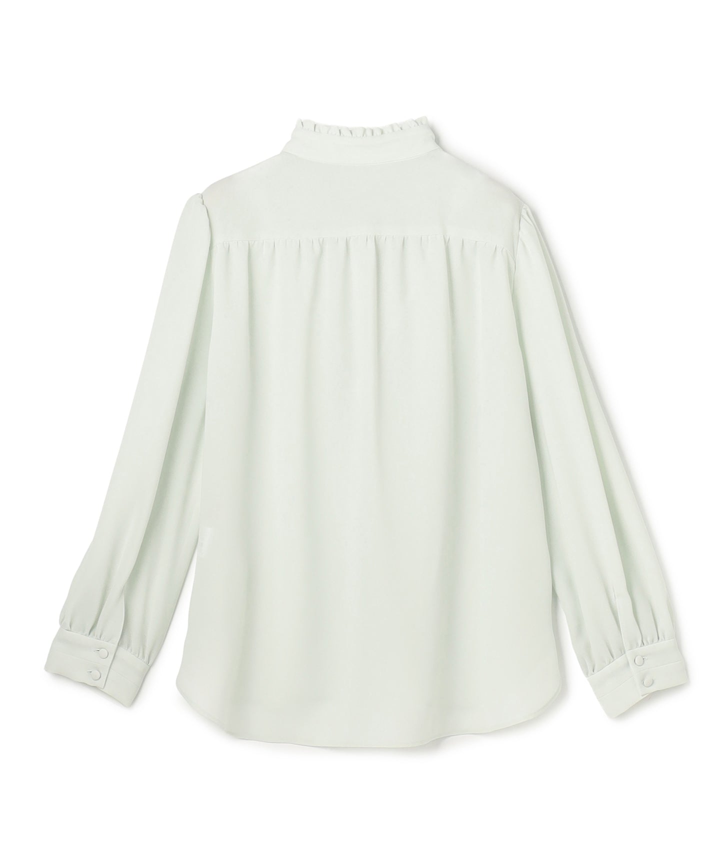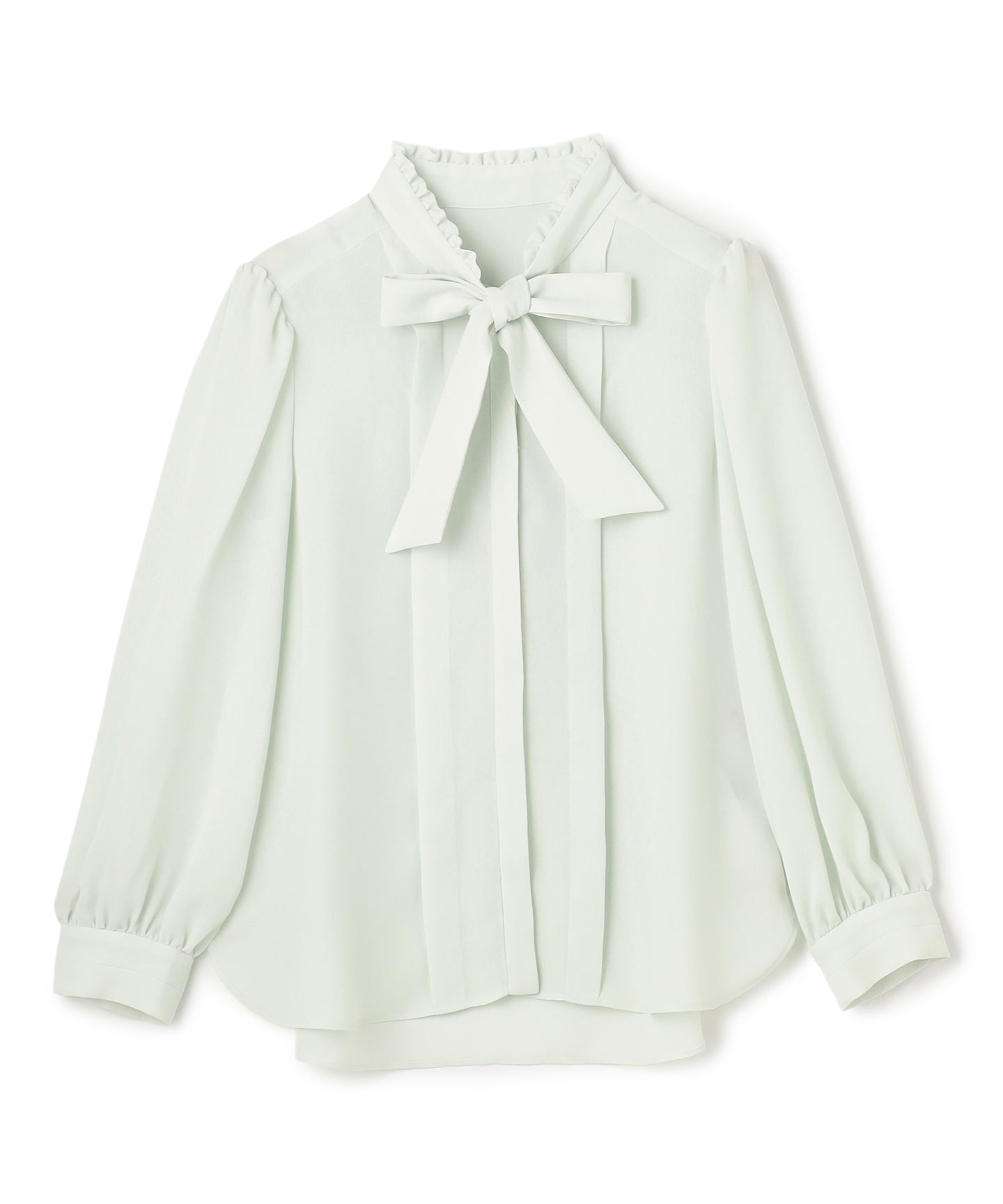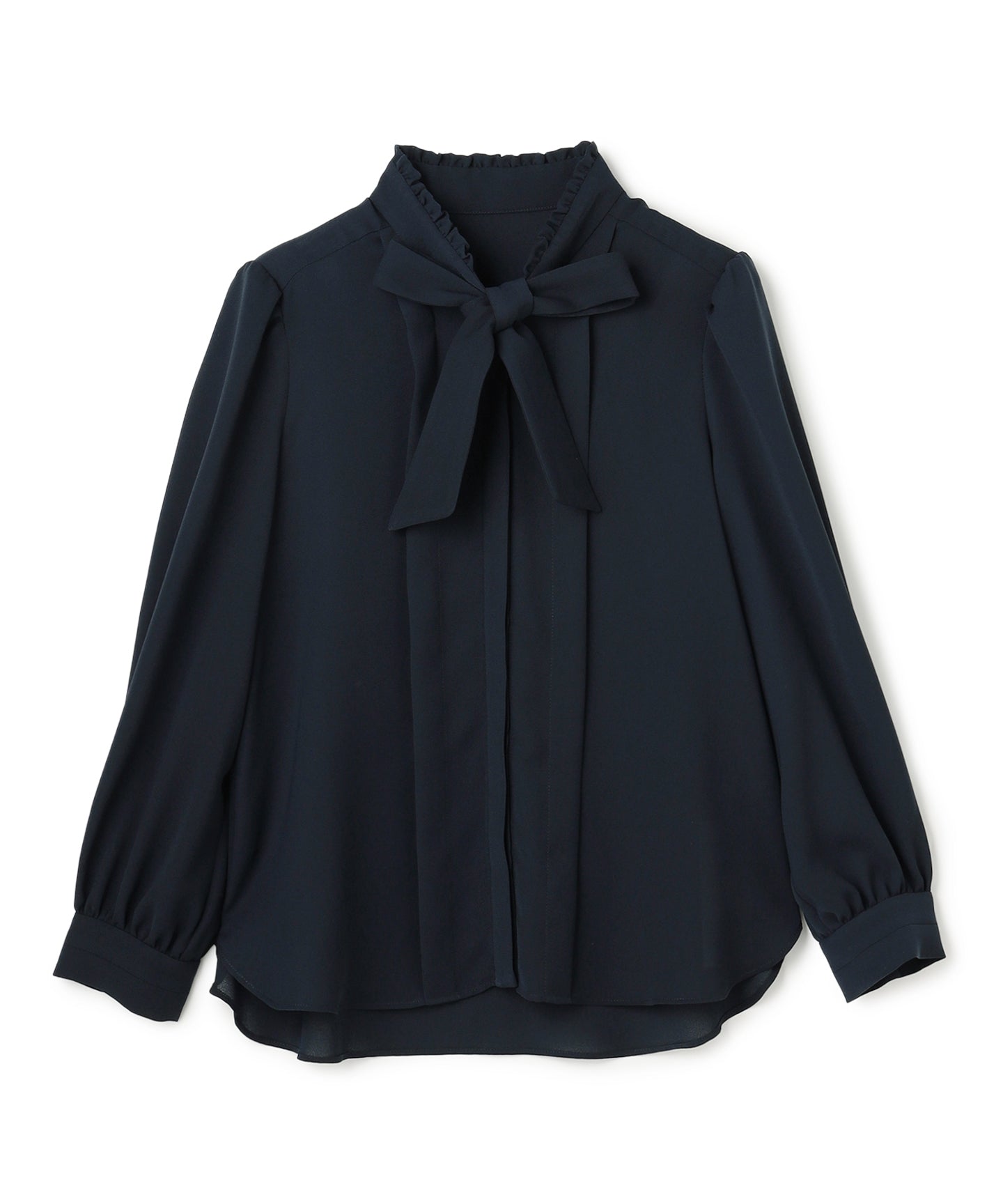 なめらかでパウダリーな素材を使用した上品なブラウス。 フロントにあしらったタックデザインが縦のラインを強調し、すっきりとしたシルエットを演出。さらに、大きめのボウタイがクラシカルなアクセントとなり、シンプルながらも印象的なスタイルを叶えます。ジャケットやカーディガンのインナーとしても上品に映え、きちんと感が求められる通勤や学校行事にもおすすめ。1枚で着ても華やかで、オンからオフまで幅広く活躍する万能な一着です。同素材でお作りしたドレスもございます。