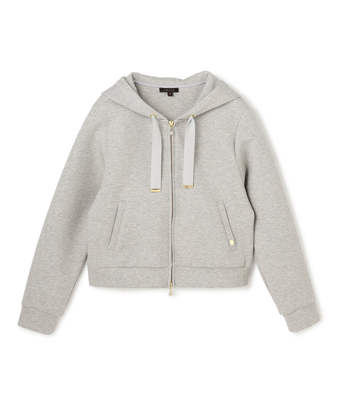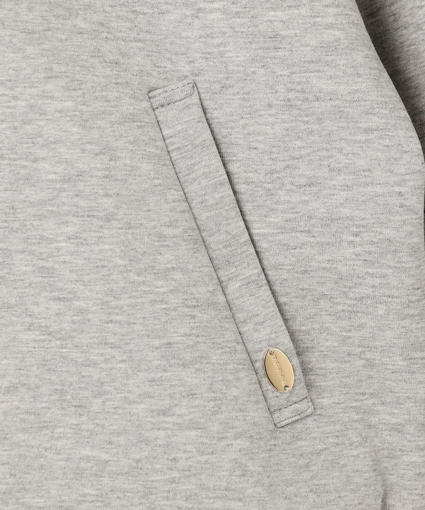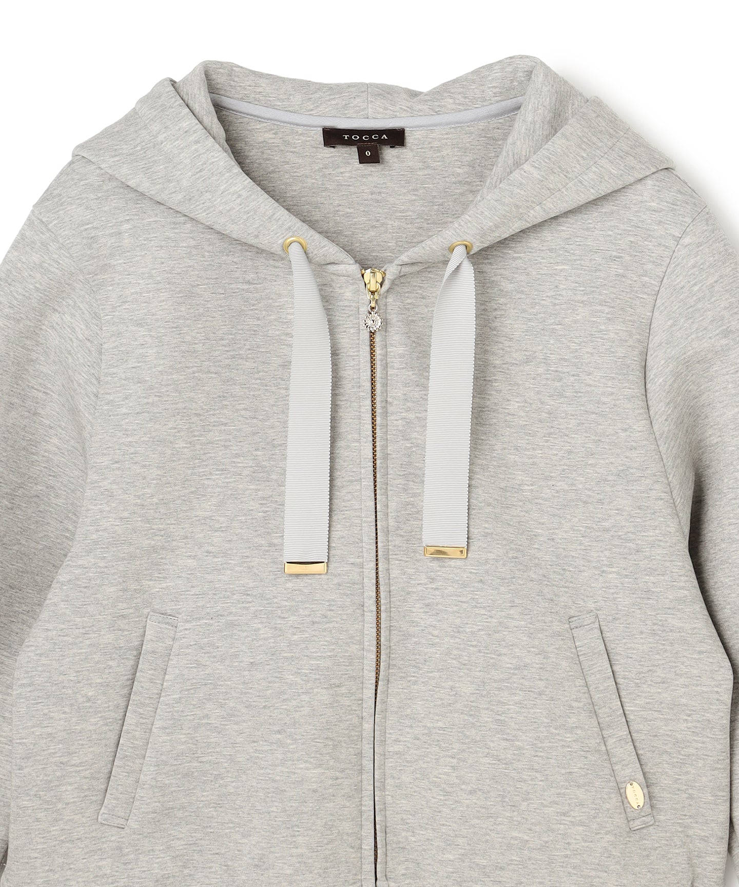 トレンドのダンボール素材でおつくりしたフーディは、滑らかでハリがあり、カジュアルなアイテムながらも綺麗見えします。 チャックの引手にデイジーのパーツを使用しさりげない可愛らしさを備えています。短めの丈でスカートやドレス合わせにぴったりな丈感とゴールドやグログランテープなどのフェミニンな付属使いで、TOCCAらしい可憐さをプラスしています。