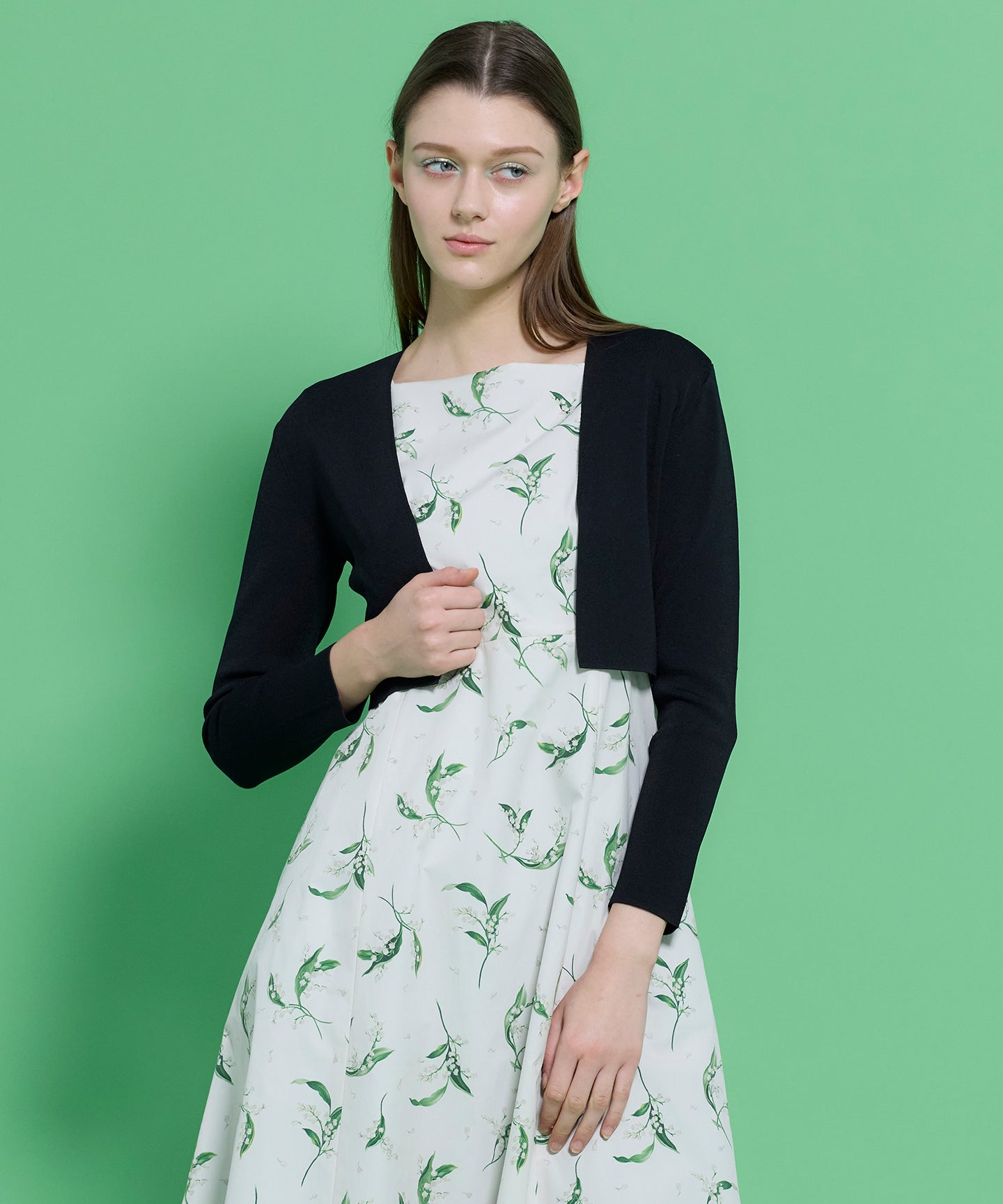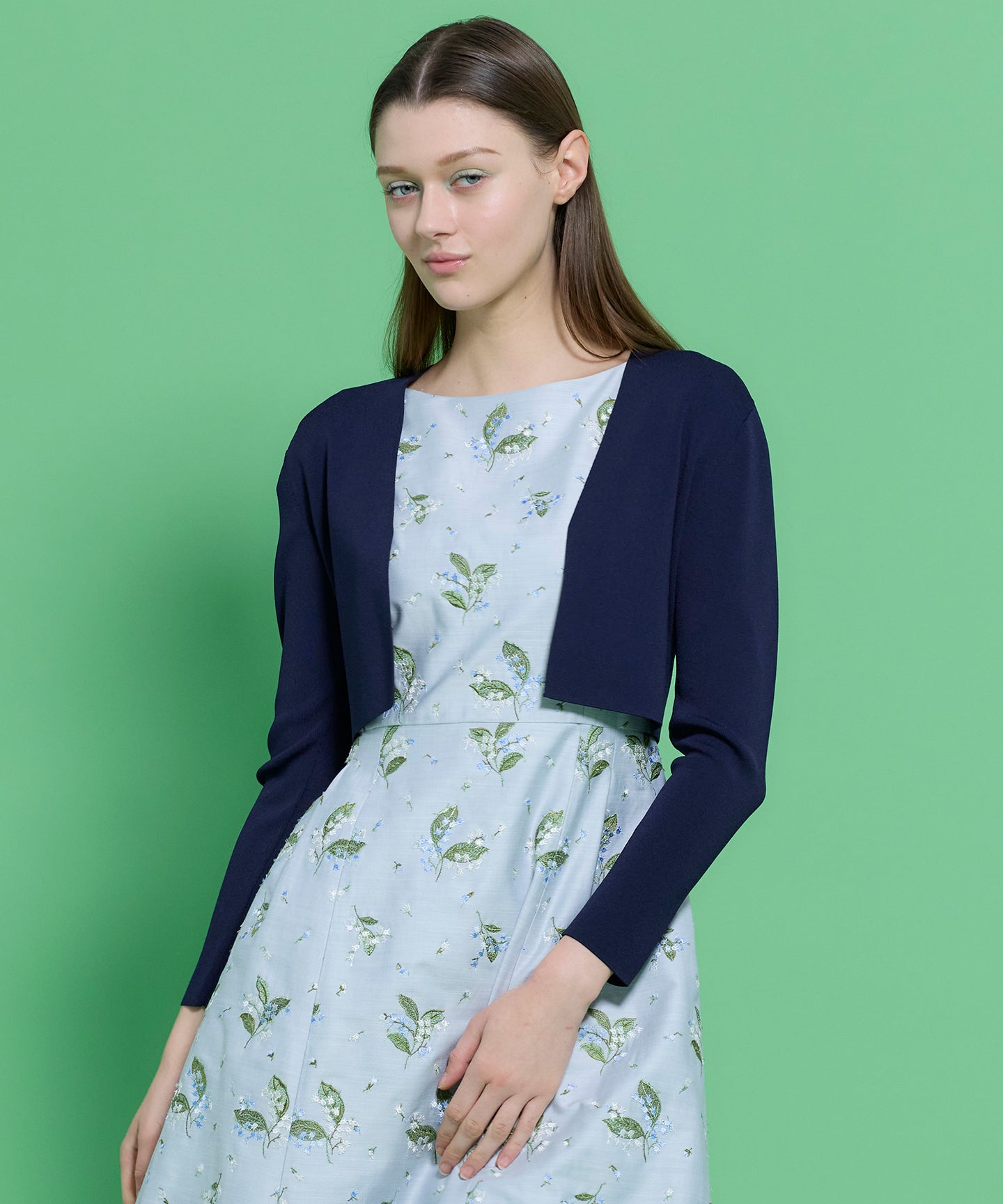 毎年ご好評いただいている定番のスクエアボレロに新色を追加しました。 ドレスにぴったりなコンパクトサイズが着やすく、短めのレングスでスタイルが良く見えるバランス感が特長です。 しっかりとした編み方ですがシャリ感があり、汗ばむシーズンまでお召しいただけます。きちんとした印象になるデザインなので、通勤やフォーマルなシーンにもおすすめ。