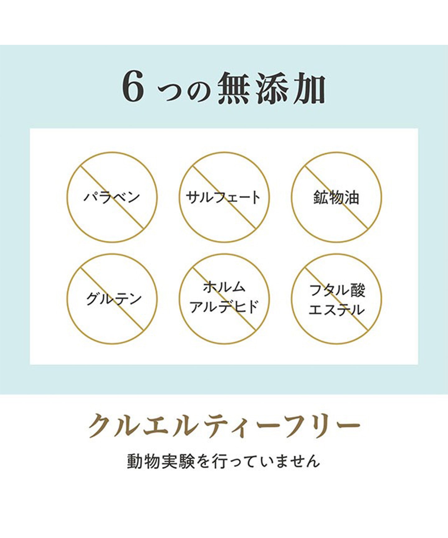 ・6つの無添加(パラベン・サルフェート・鉱物油・グルテン・ホルムアルデヒド・フタル酸エステル)
