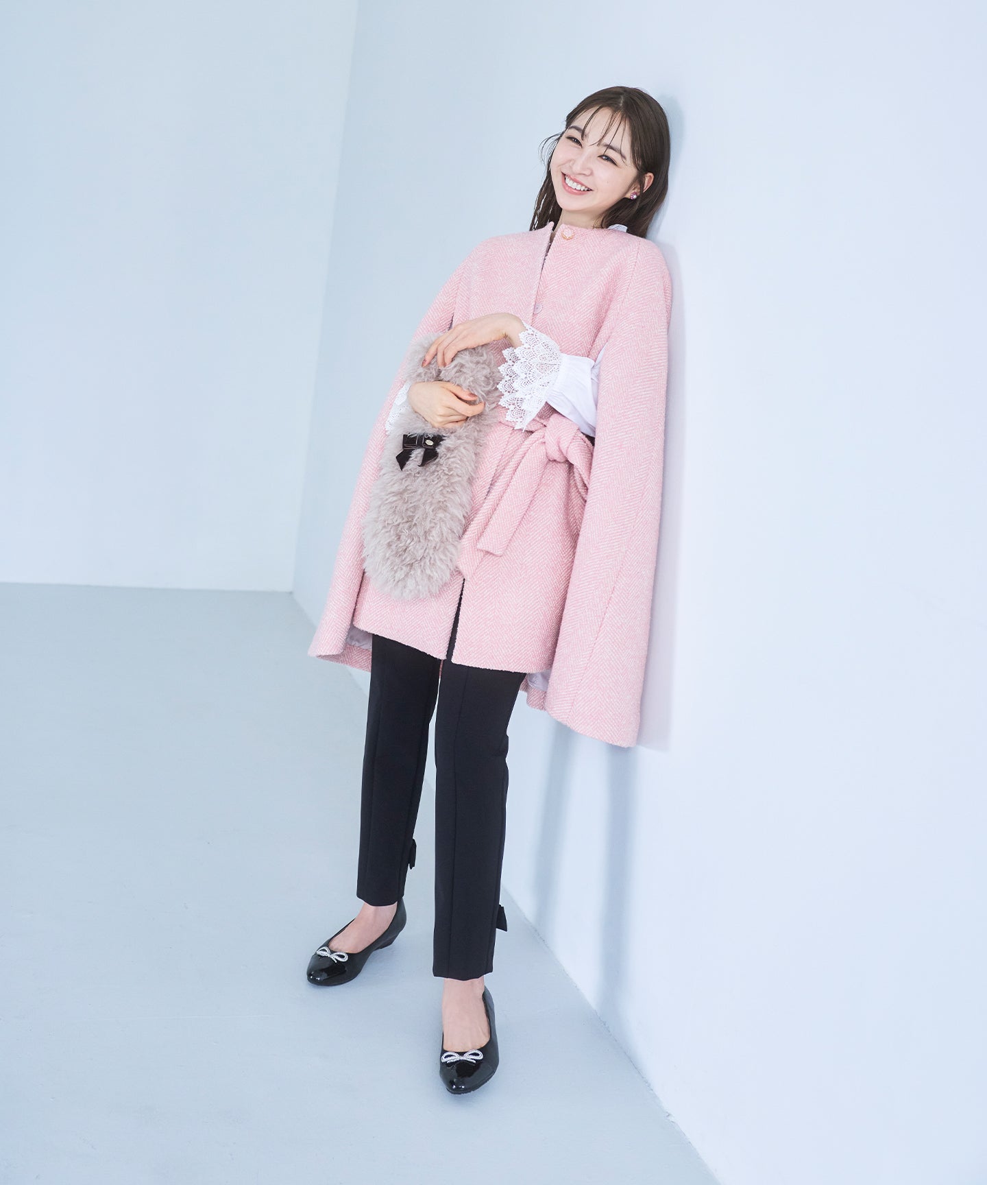 レイヤードスタイルでもしっかりと存在感を放ち、コーディネートに立体感と女性らしさを添えてくれます。