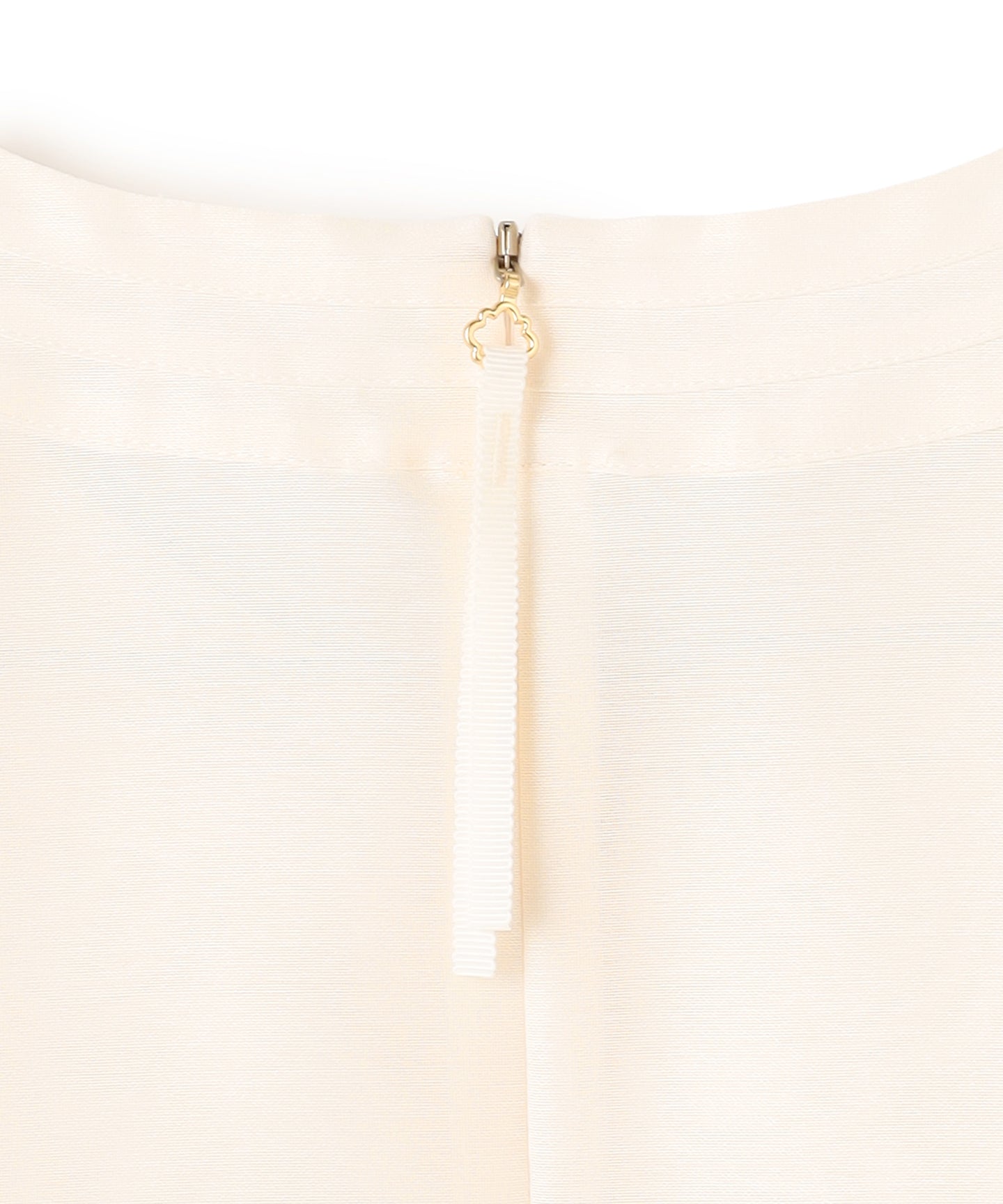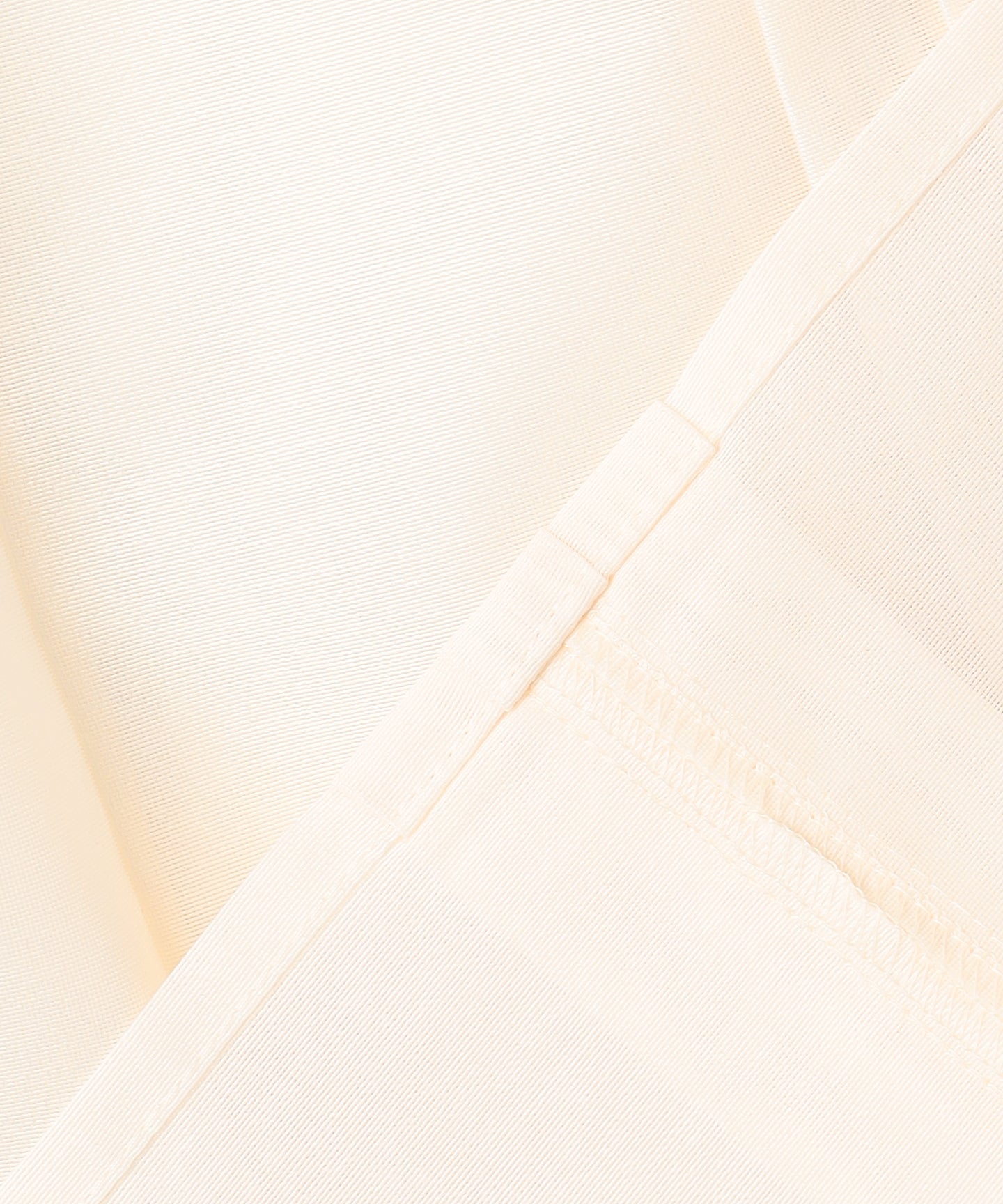 ハリのあるオーガンジー素材を使用しているため、リボンやフロントのタックデザインが立体的に際立ち、エレガントな存在感を放ちます。