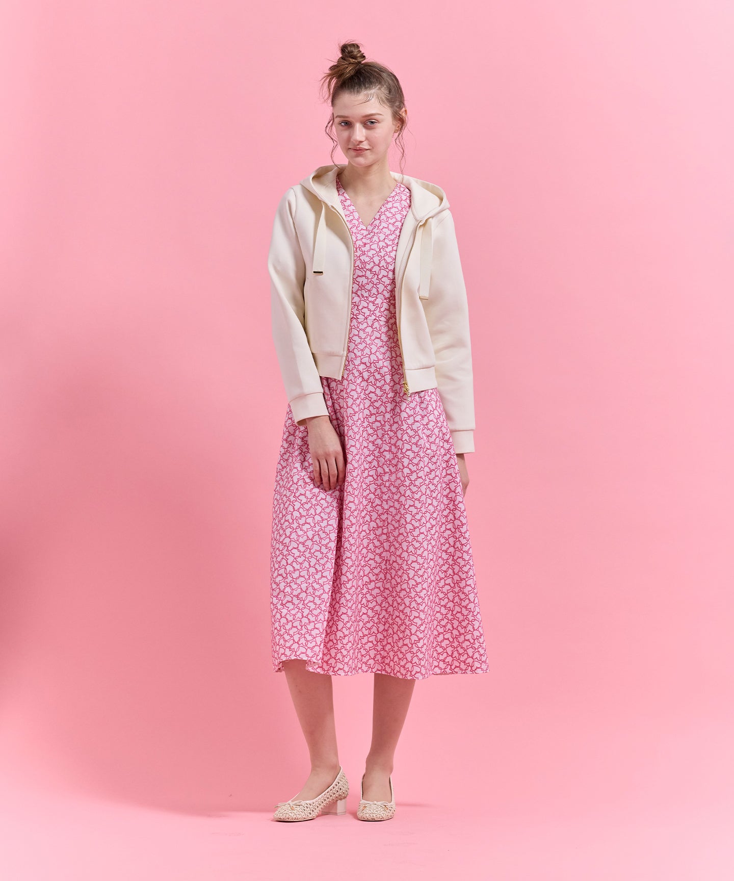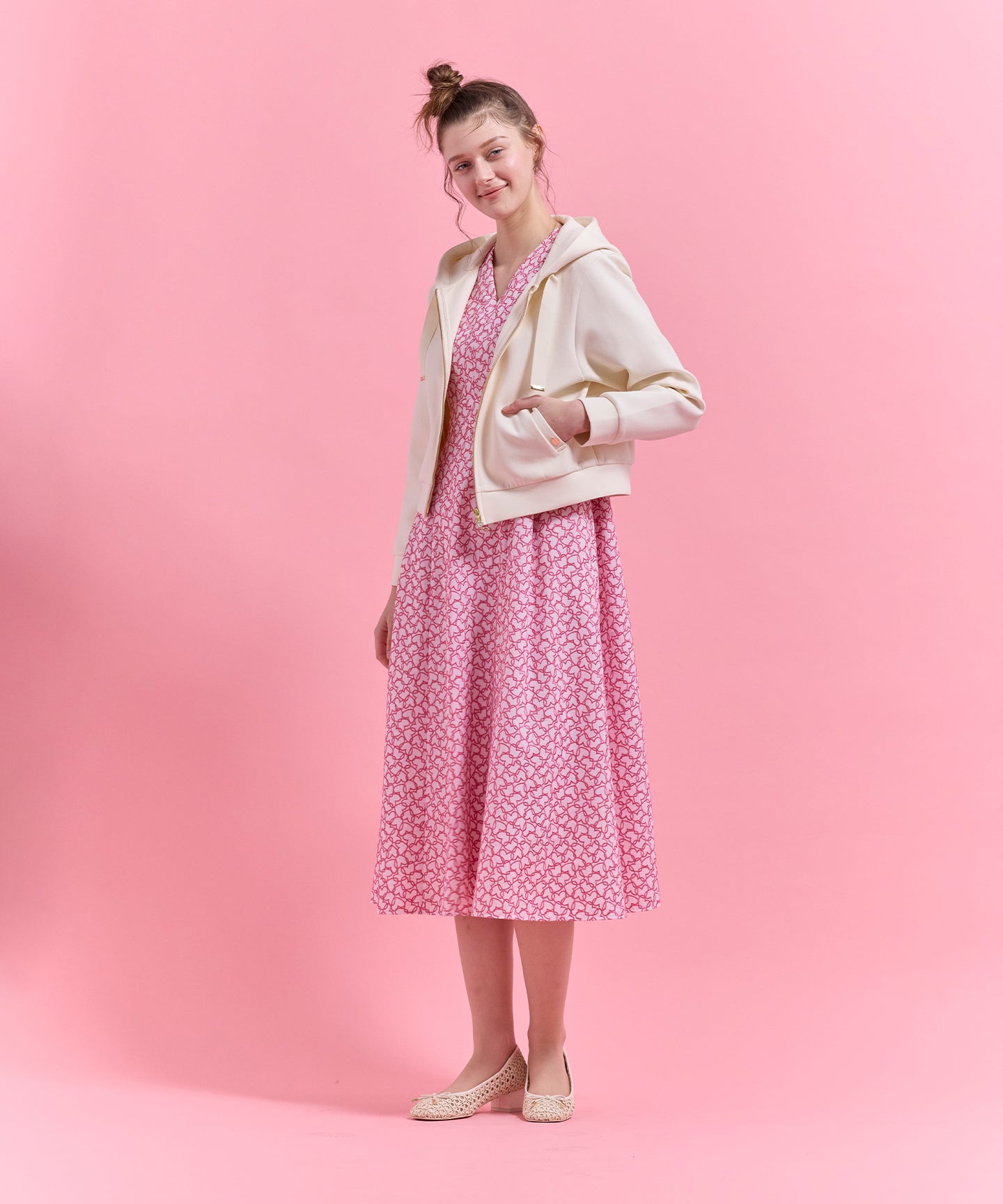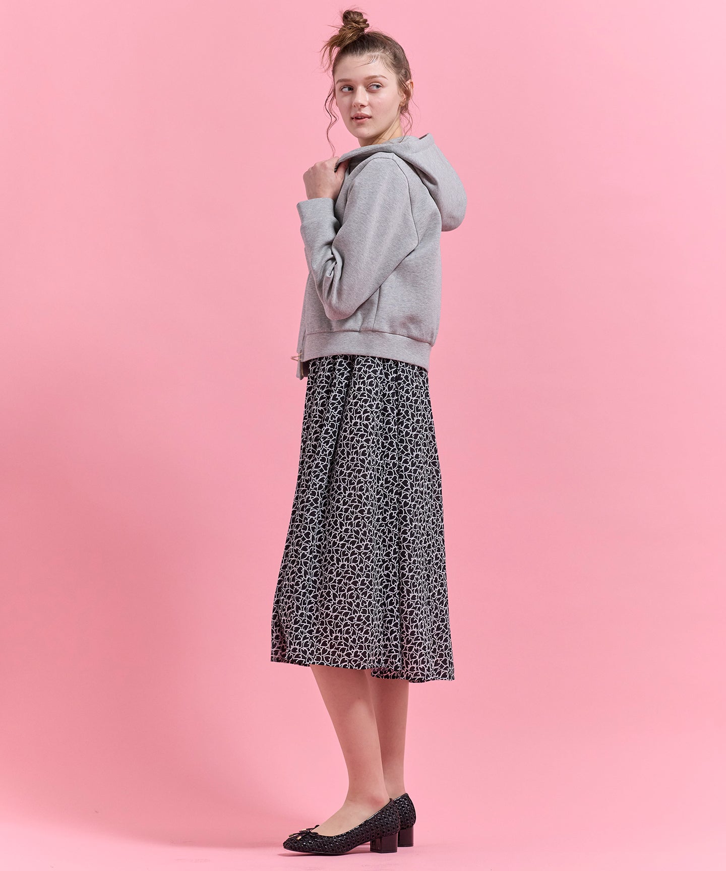 トレンドのダンボール素材でおつくりしたフーディは、滑らかでハリがあり、カジュアルなアイテムながらも綺麗見えします。 チャックの引手にデイジーのパーツを使用しさりげない可愛らしさを備えています。短めの丈でスカートやドレス合わせにぴったりな丈感とゴールドやグログランテープなどのフェミニンな付属使いで、TOCCAらしい可憐さをプラスしています。