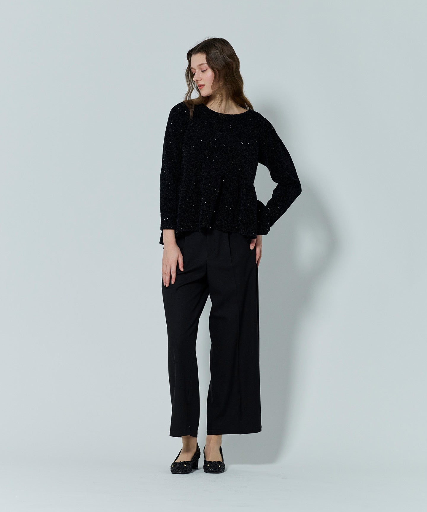 編地には、またたく夜空の星々を思わせるような繊細なスパンコールがさりげなく編み込まれており、動くたびにきらきらと優しく輝きを放ちます。