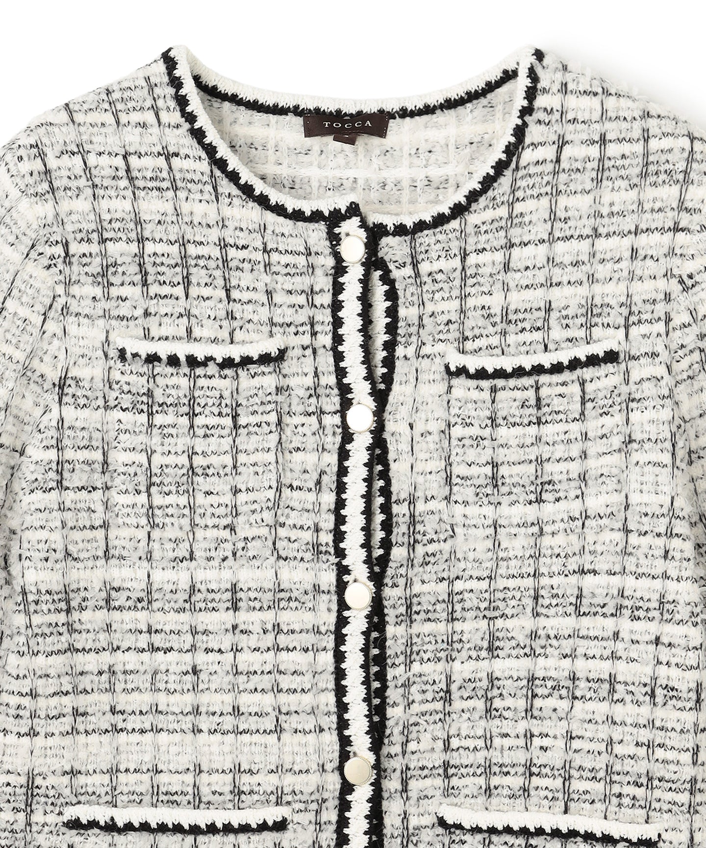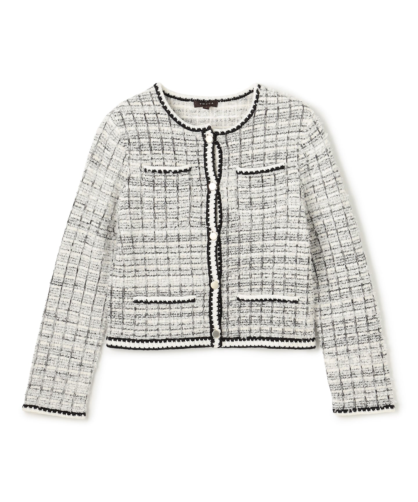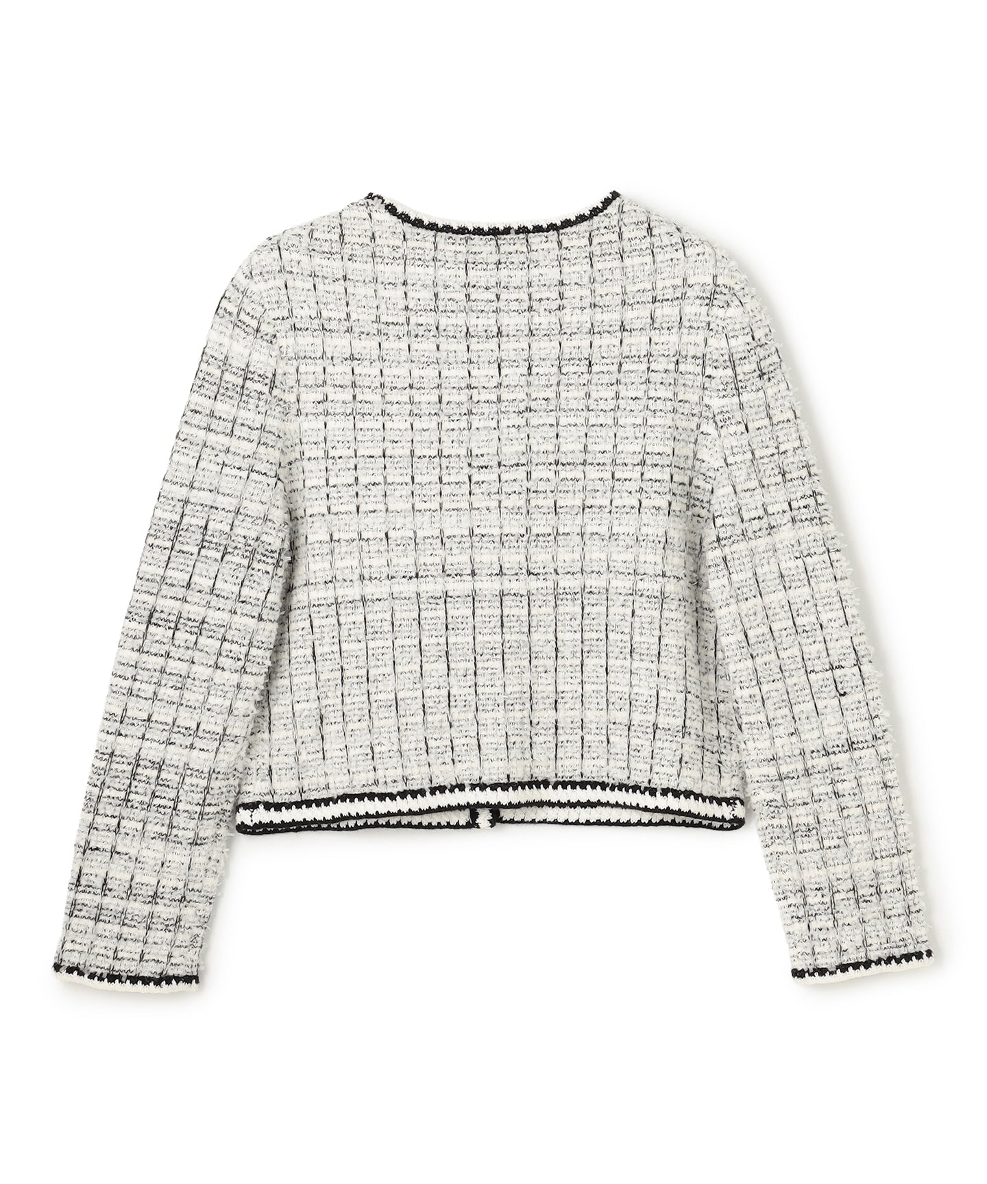 かっちりとした印象を持つツイード素材でありながら、ニット仕立てにすることで身体にやさしく馴染み、堅苦しさを感じさせないリラックス感のある1着に仕上げました。