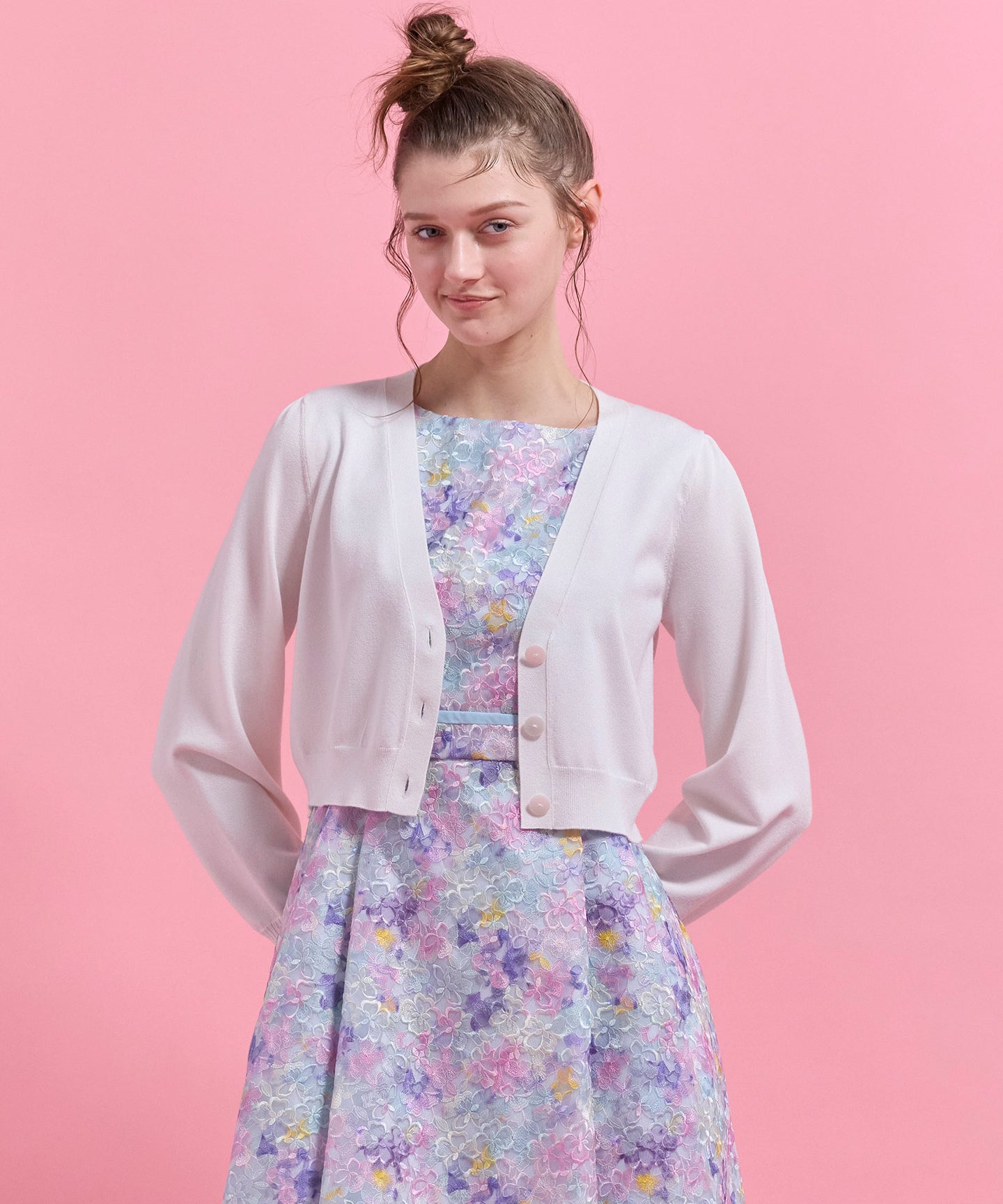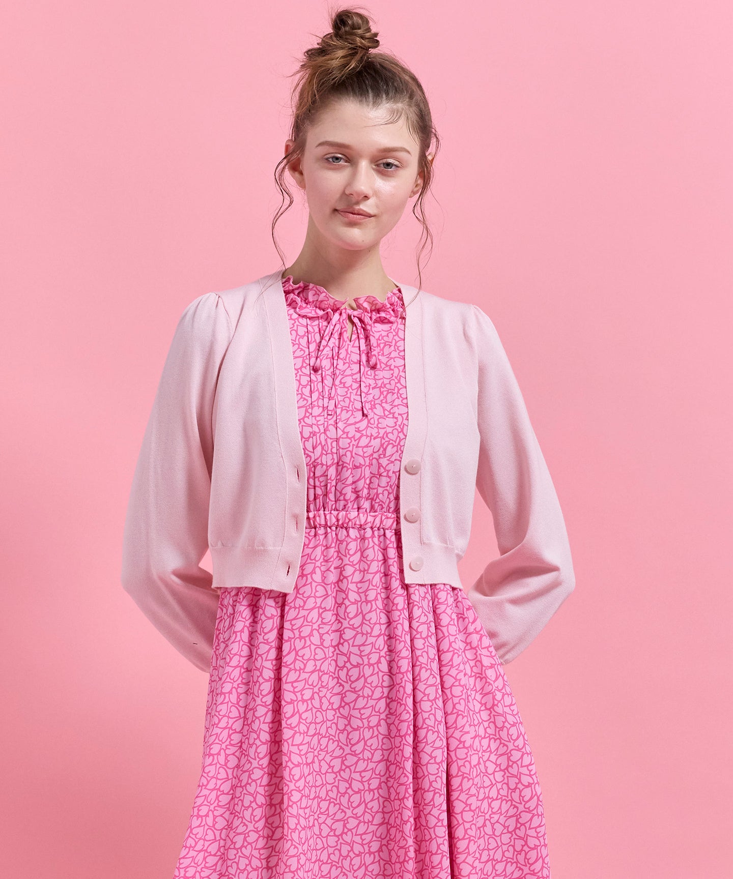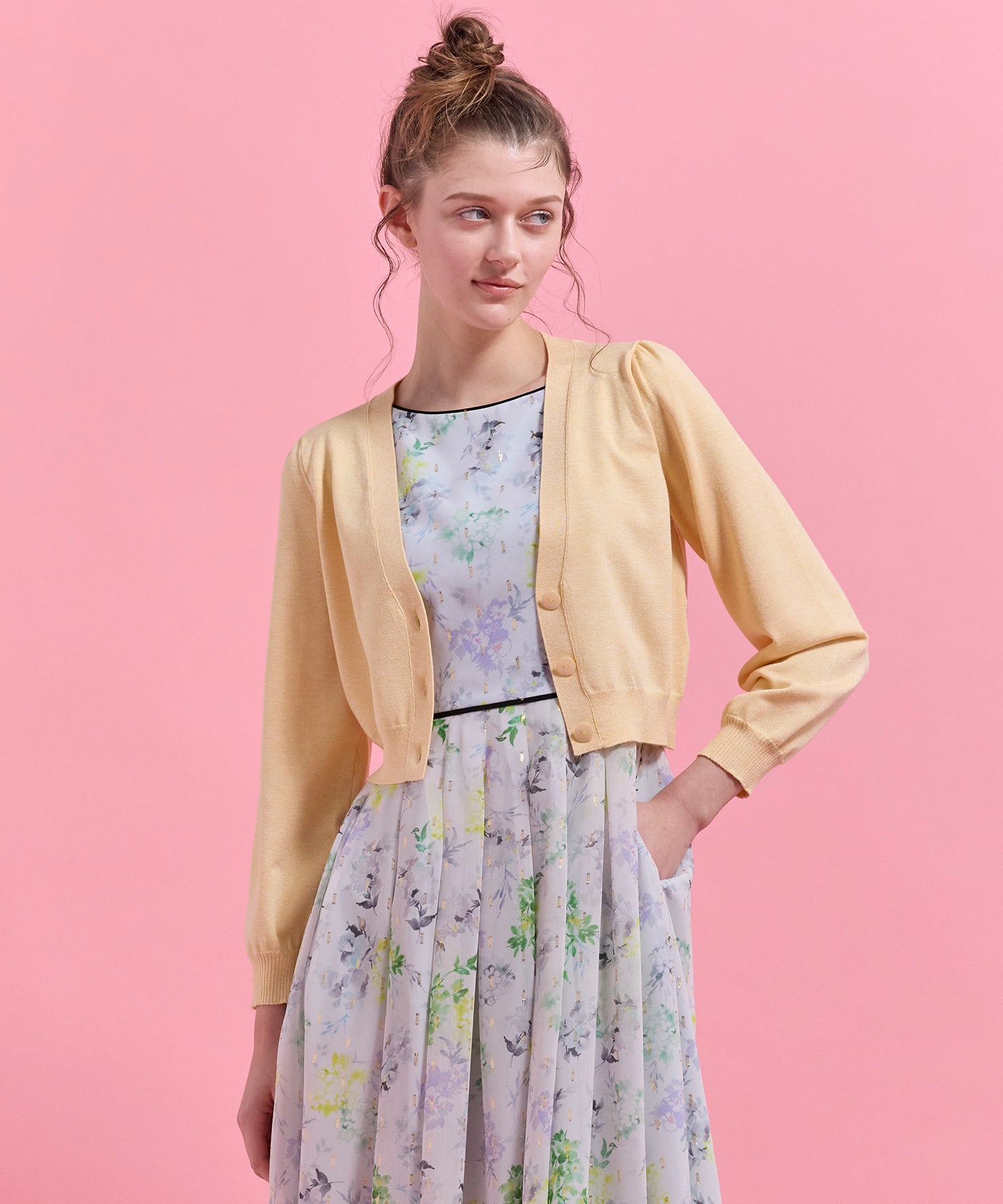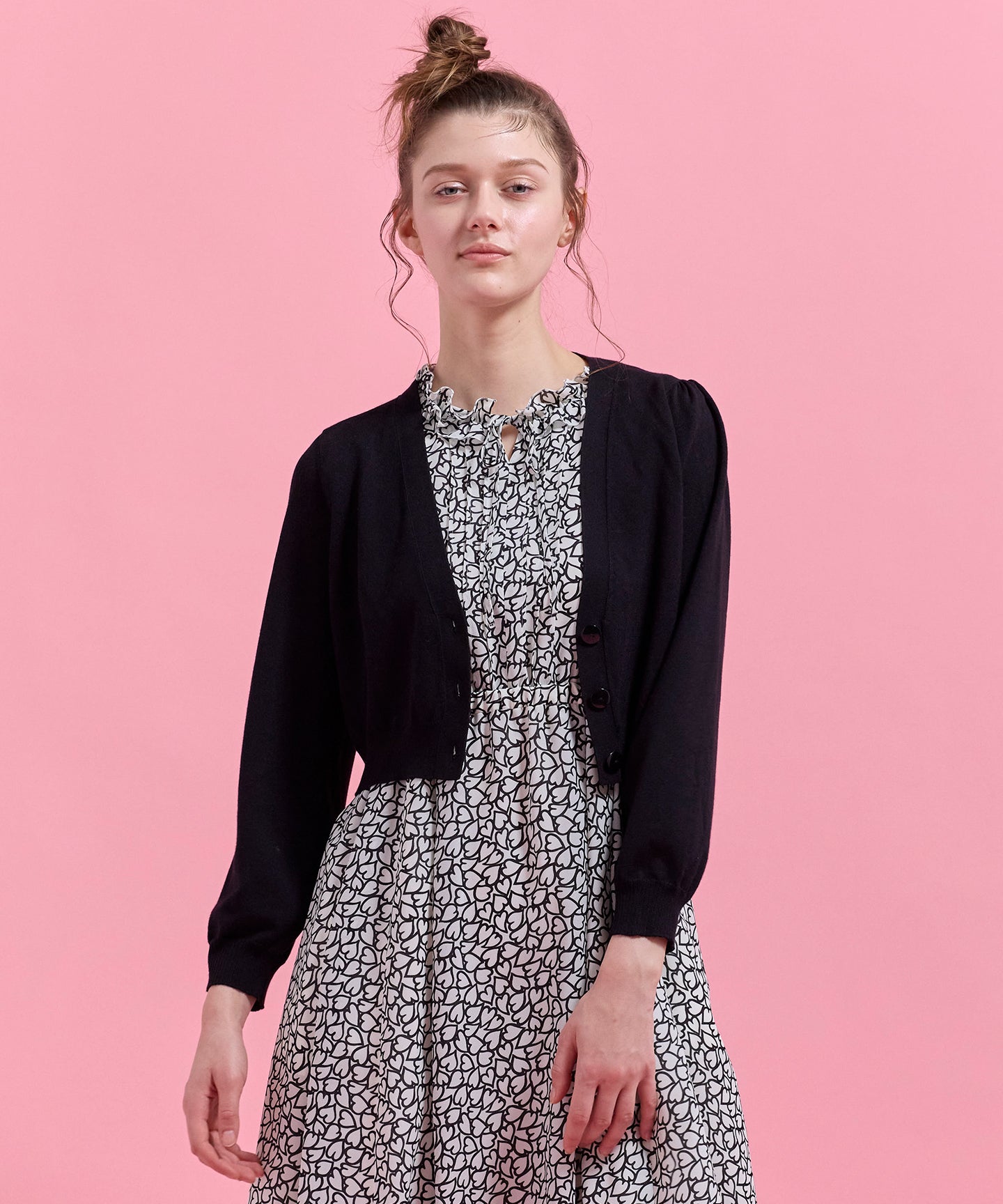 すっきりとしたシルエット、ドレスと合わせてもスタイルが良く見えるコンパクトな丈感で幅広く活躍するカーディガン。 体のラインを拾わない、お袖のふわっとしたシルエットが細見えを叶えてくれる一押しポイントです。