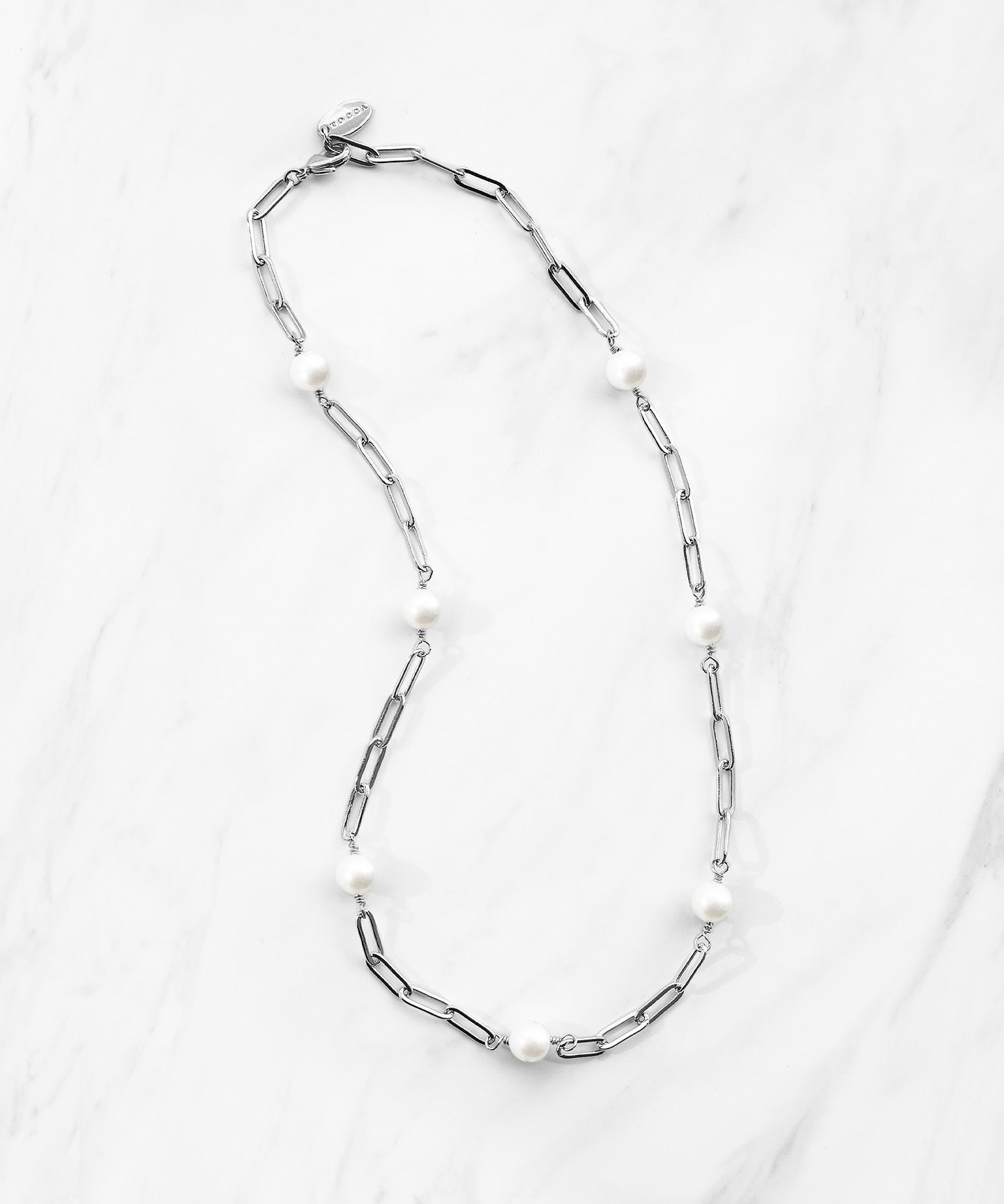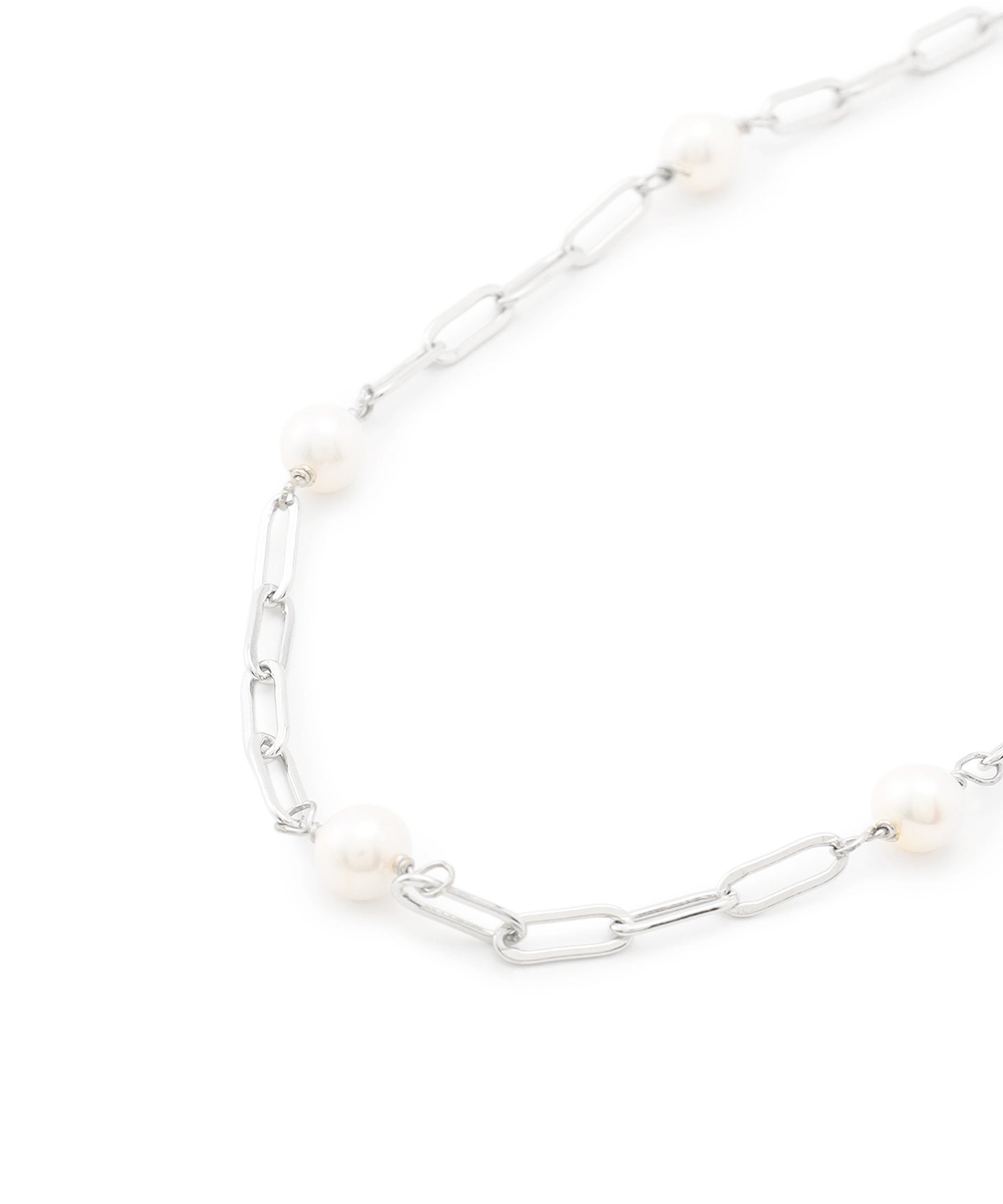 着けるだけでスタイリングをリュクスでスタイリッシュにアップデートできる、シンプルな淡水パールチェーンネックレス。