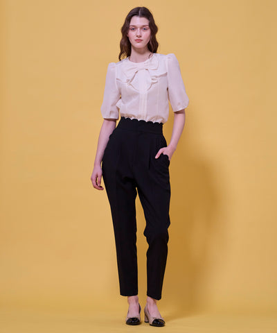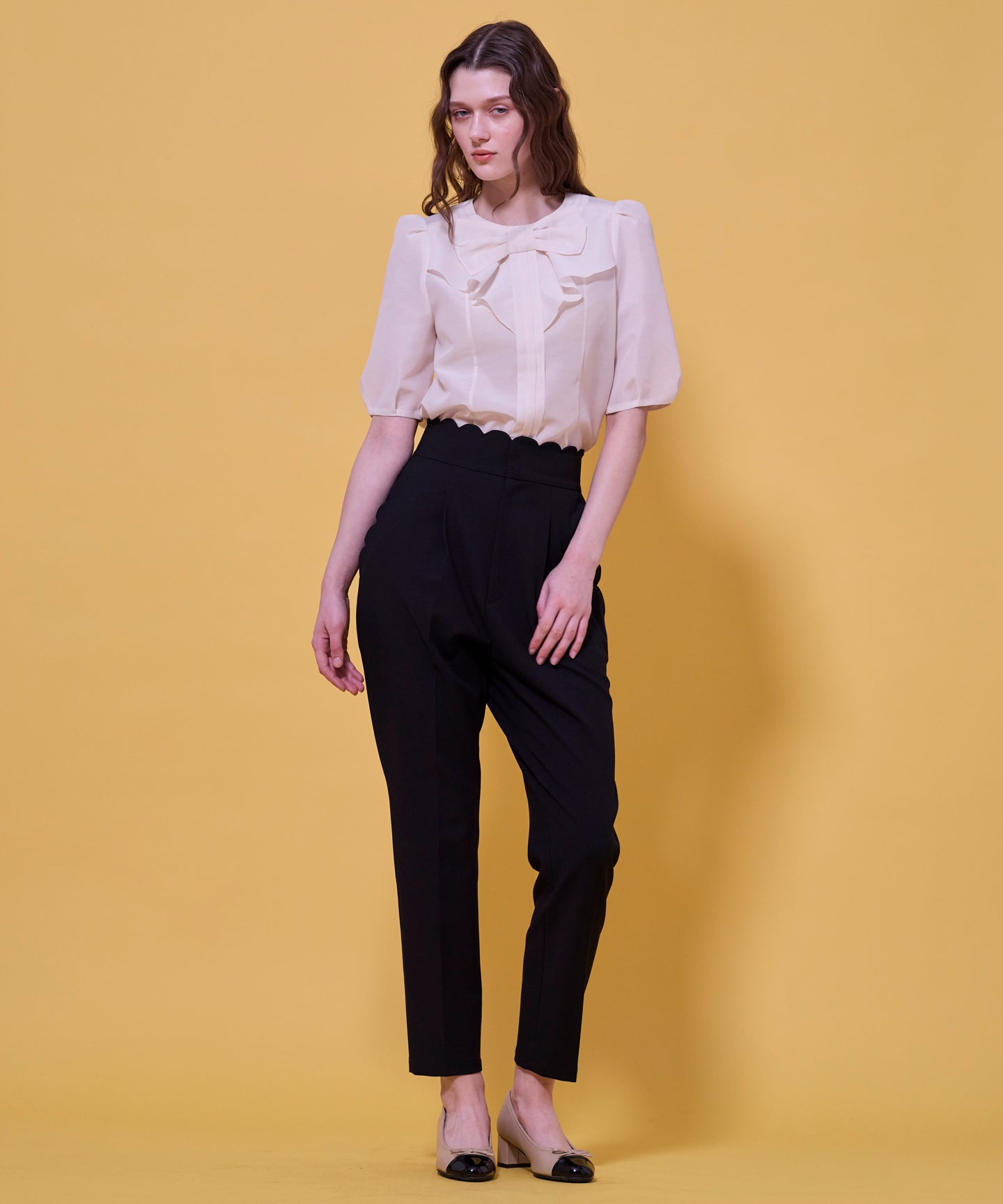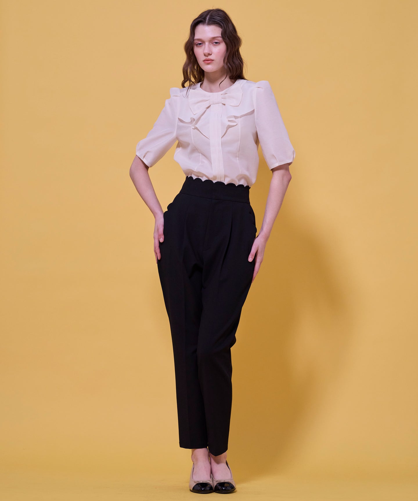 大きなリボンが目を惹く、フェミニンで華やかなブラウス。