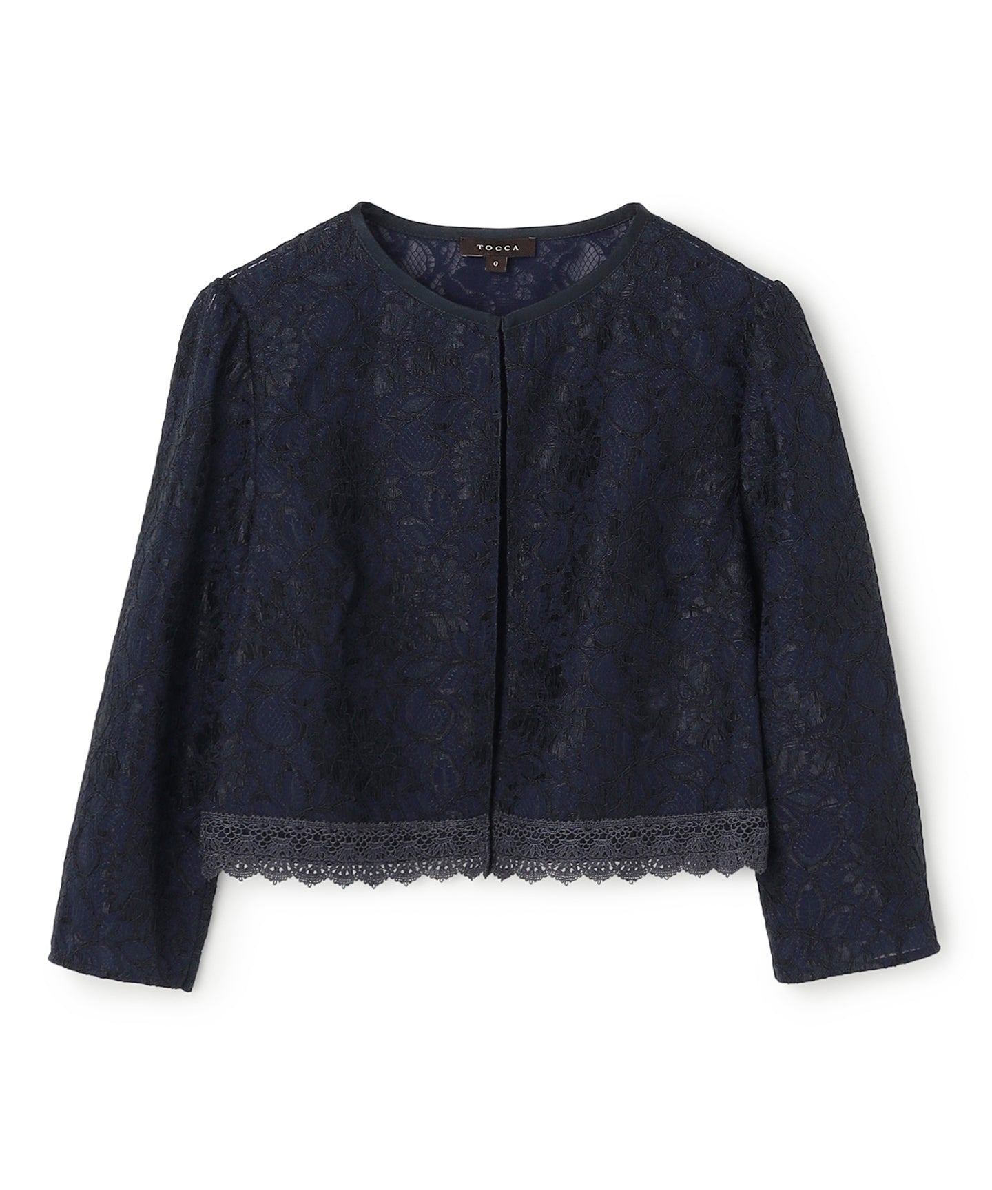 繊細なレース素材を贅沢に使用した、上品で華やかなボレロ。裾にはさりげないレーストリミングをあしらい、シンプルな中にも女性らしいアクセントを加えました。 すっきりとしたノーカラーデザインで、ドレスのデザインを引き立てながらフォーマル感を演出。七分袖が手首を美しく見せ、軽やかで洗練された印象に仕上げてくれます。 コンパクトなシルエットは、羽織るだけでバランスよくまとまり、特別なシーンの装いをより華やかに彩ります。結婚式やパーティーなどのフォーマルな席はもちろん、お食事会など幅広いシーンで活躍する一枚です。