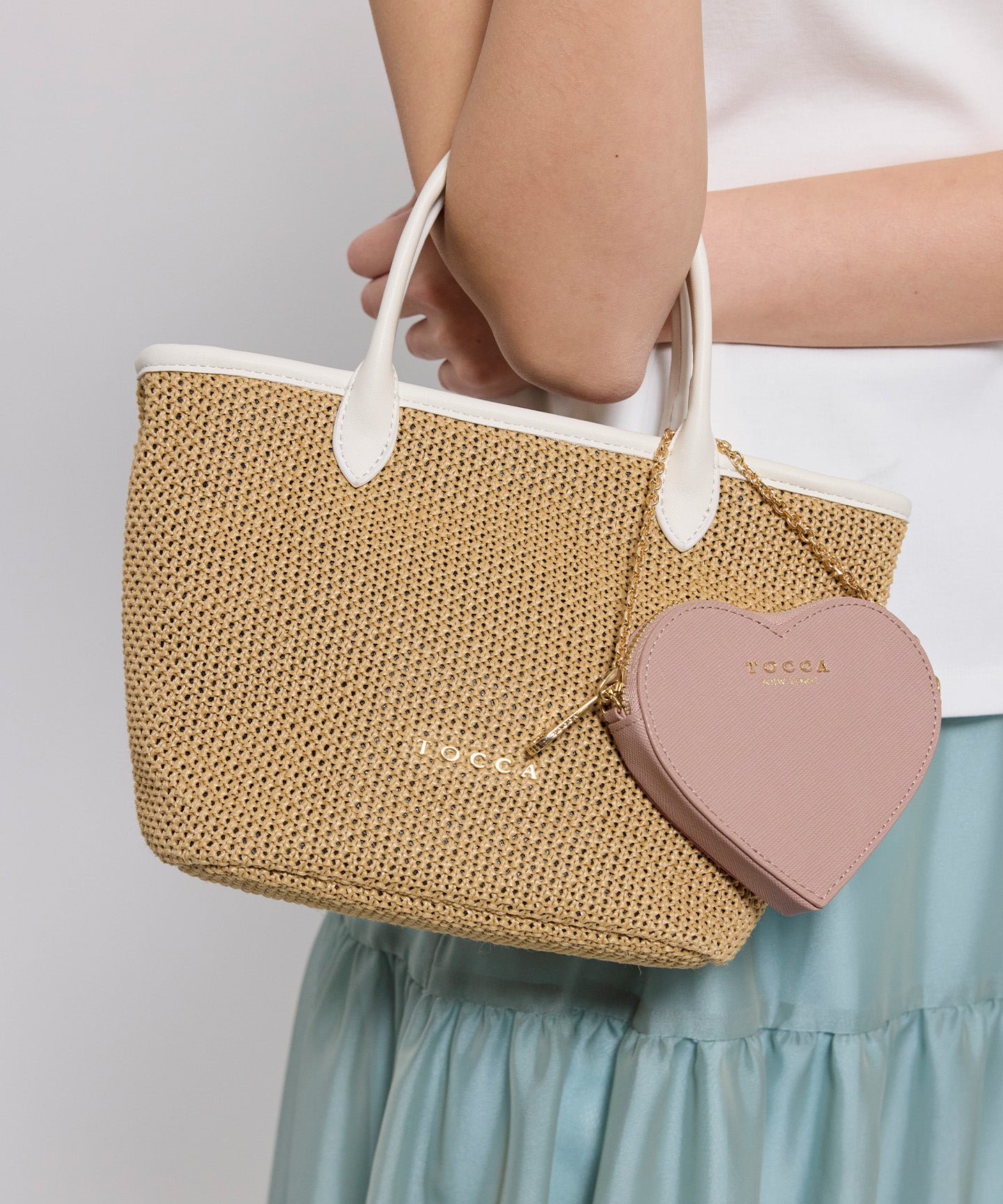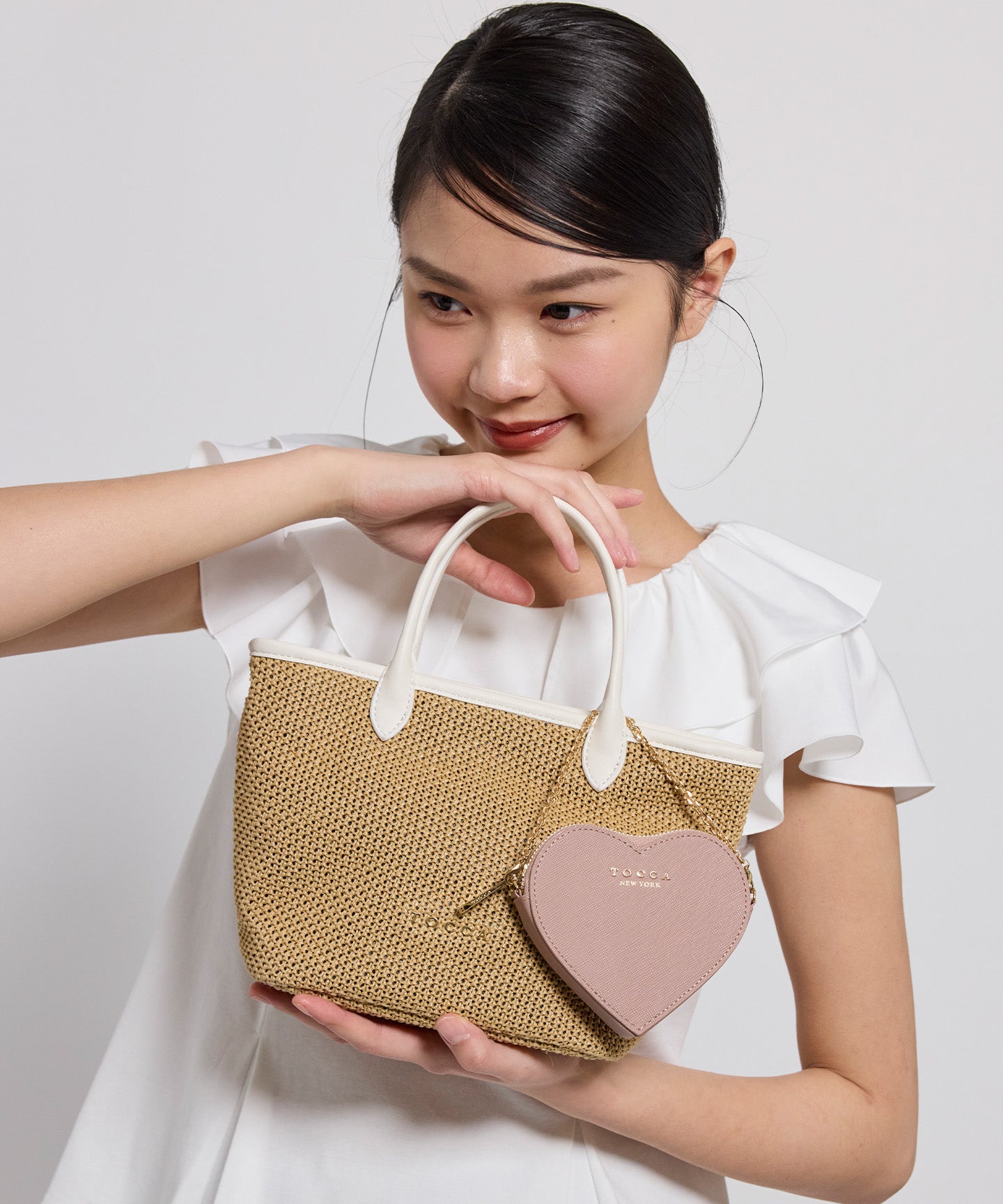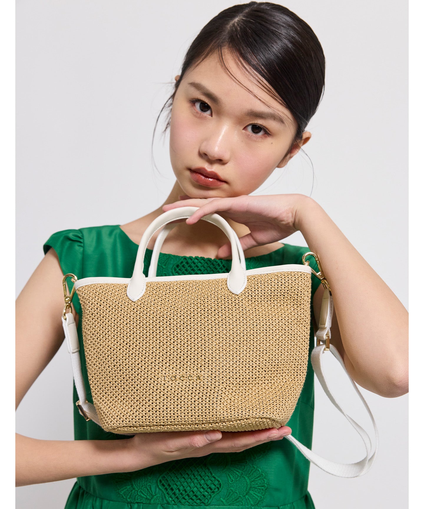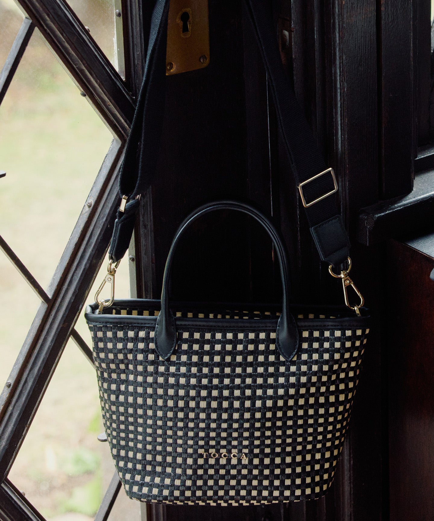ベースの素材はベーシックなベージュのほかにモダンなチェック柄をチョイスし、モノトーンのパイピング・ハンドルカラーがアクセントに。きれいめはもちろん、カジュアルなスタイリングとも好相性で、ラフになりがちな夏のスタイリングを美しく彩ってくれるアイテムです。