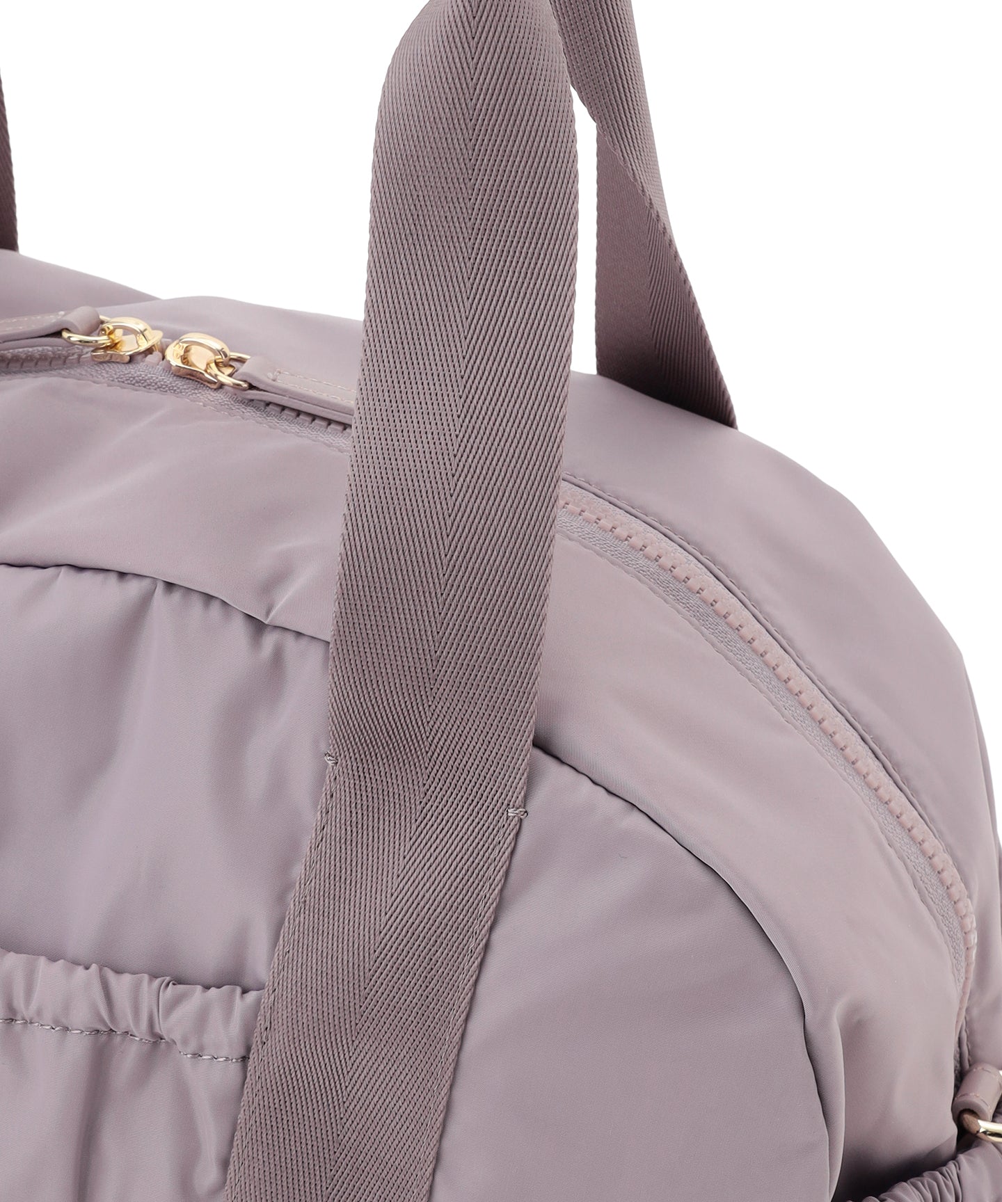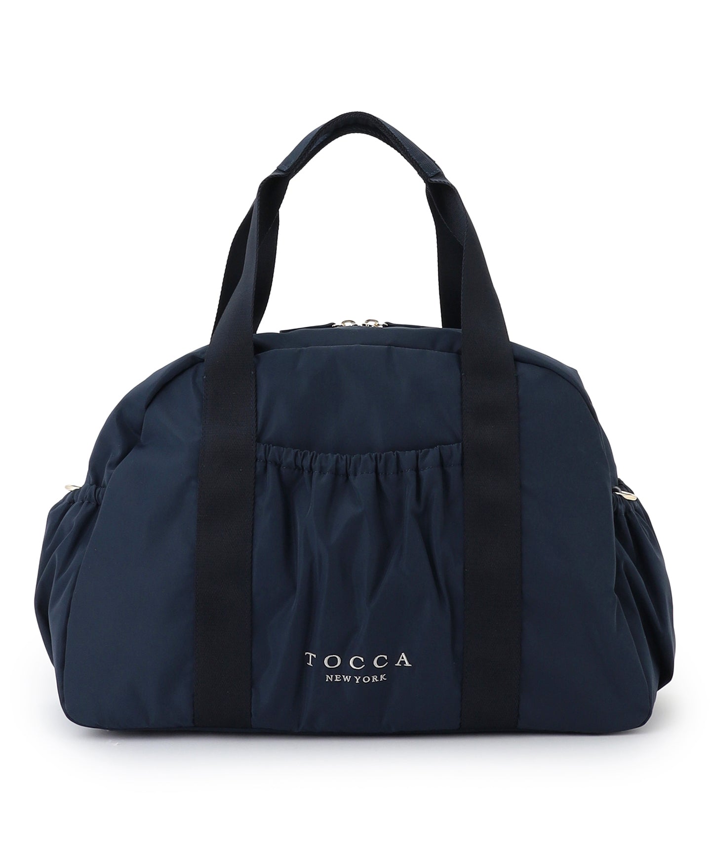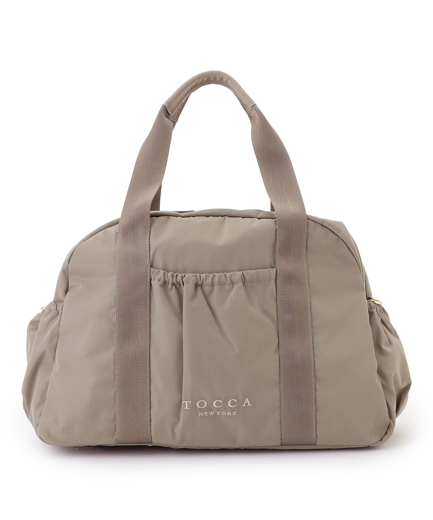 コロンとしたフォルムやポケットのギャザーディテールがほんのりフェミニンな、程よいサイズのボストンバッグ。外側は前後・左右すべてにポケットを付け、内側にもオープン・ファスナーポケットを装備。マチがしっかりありペットボトルや水筒、長財布や折り畳み傘など身の回りのものをたっぷり入れられ、見た目以上の収納力です。 取り外し可能なショルダーテープでハンズフリーが叶い、軽量のナイロン素材を使用しているのでバッグ本体はとっても軽やか。デイリーはもちろんご旅行先でも活躍する便利なアイテムです。