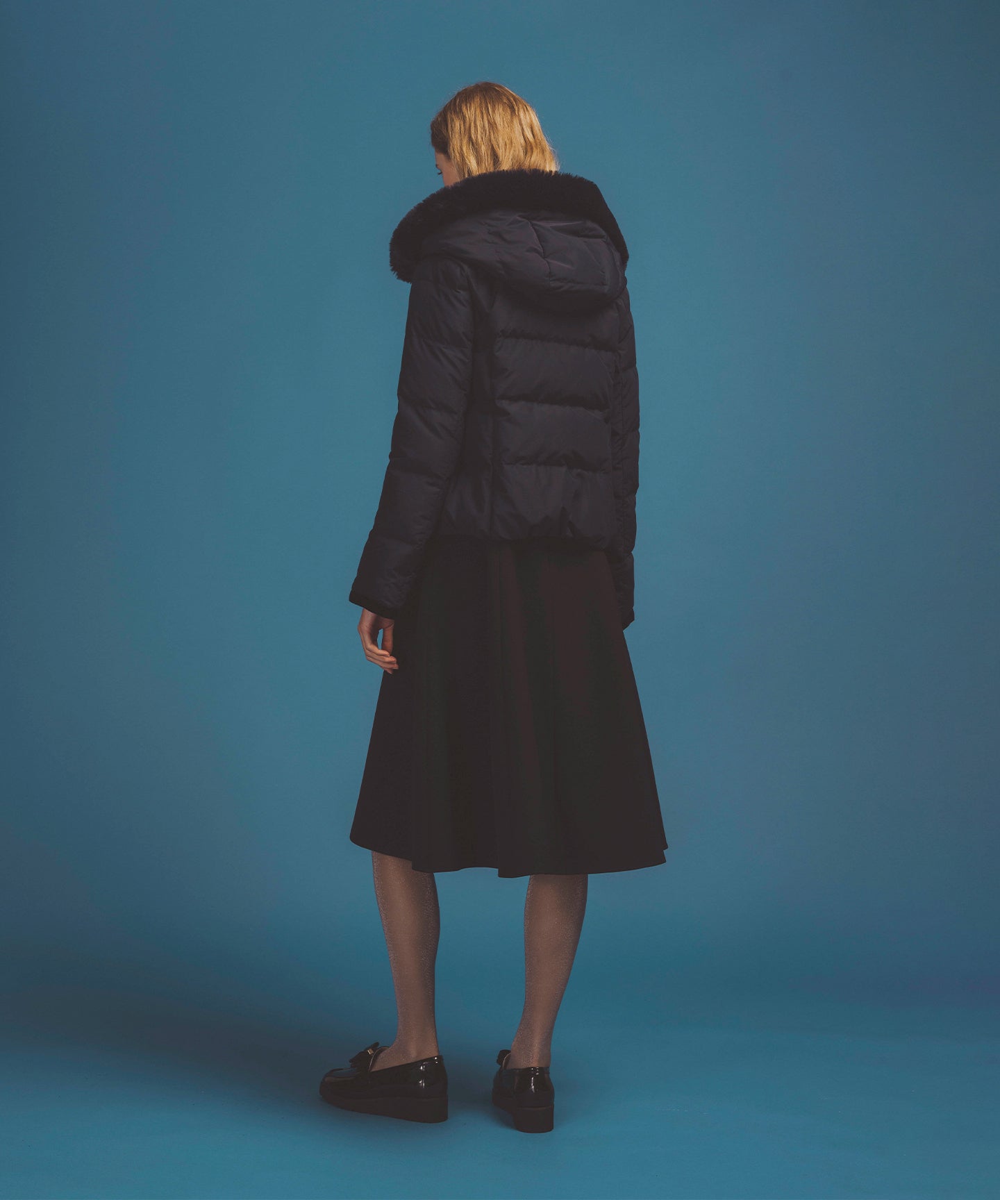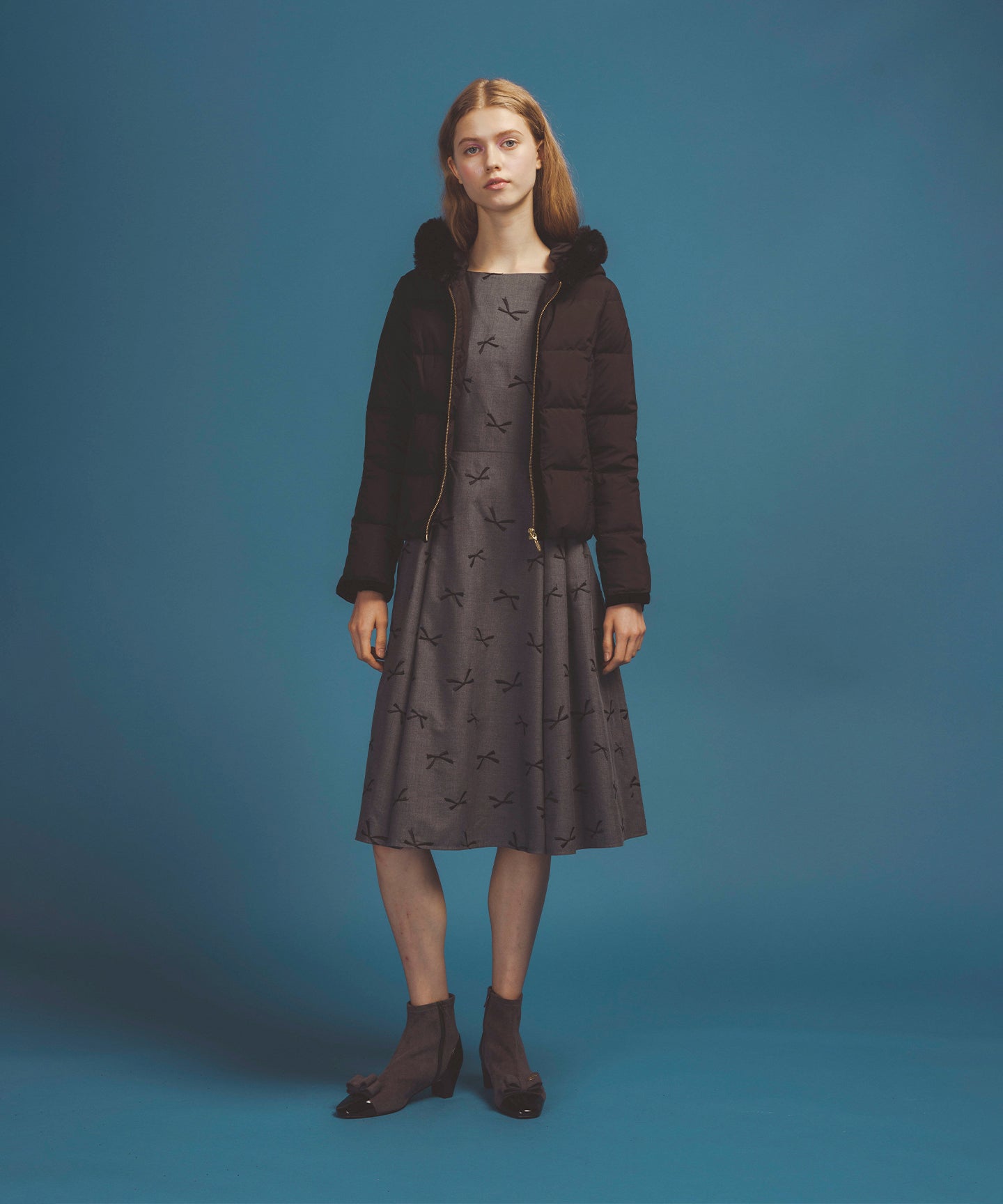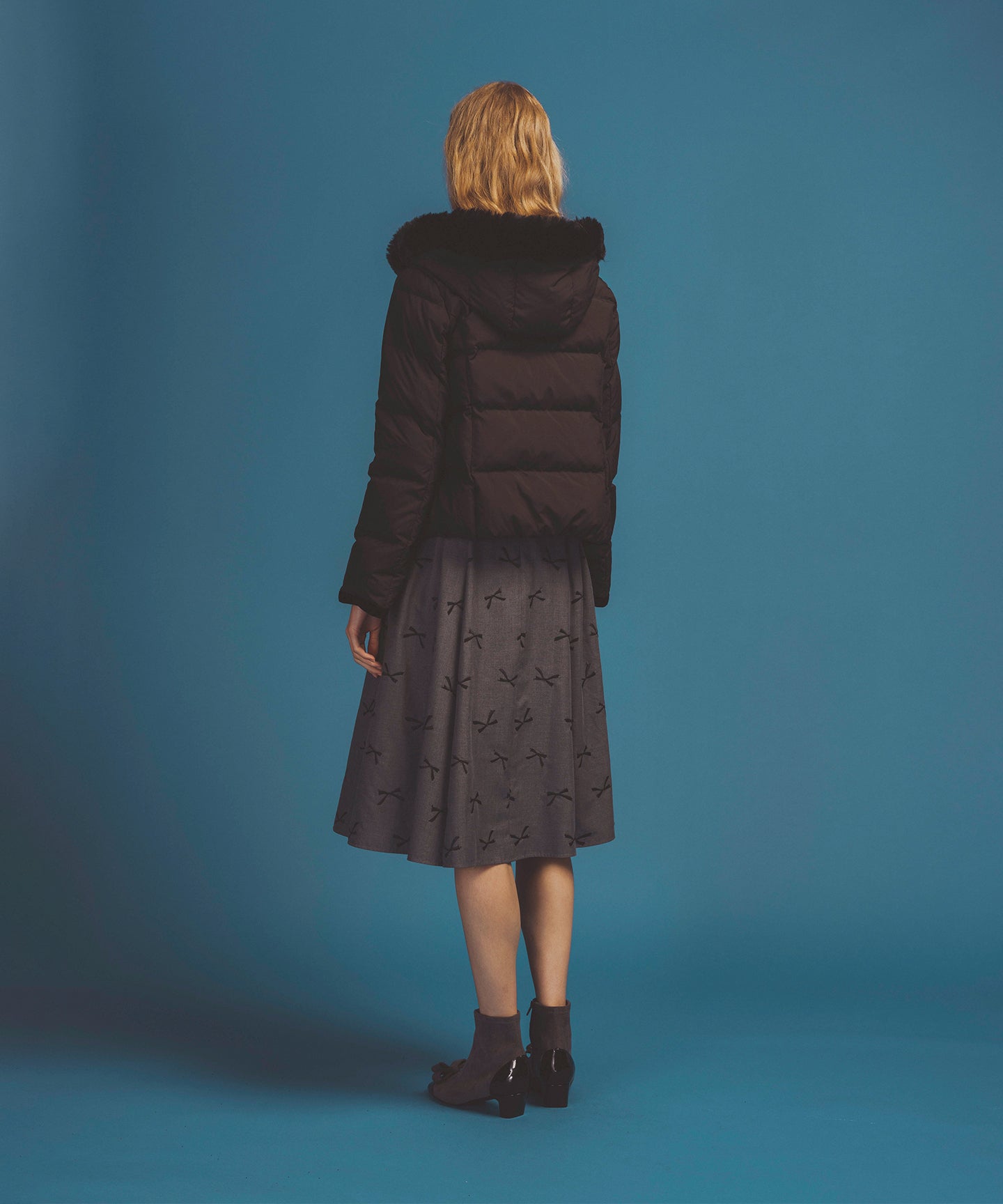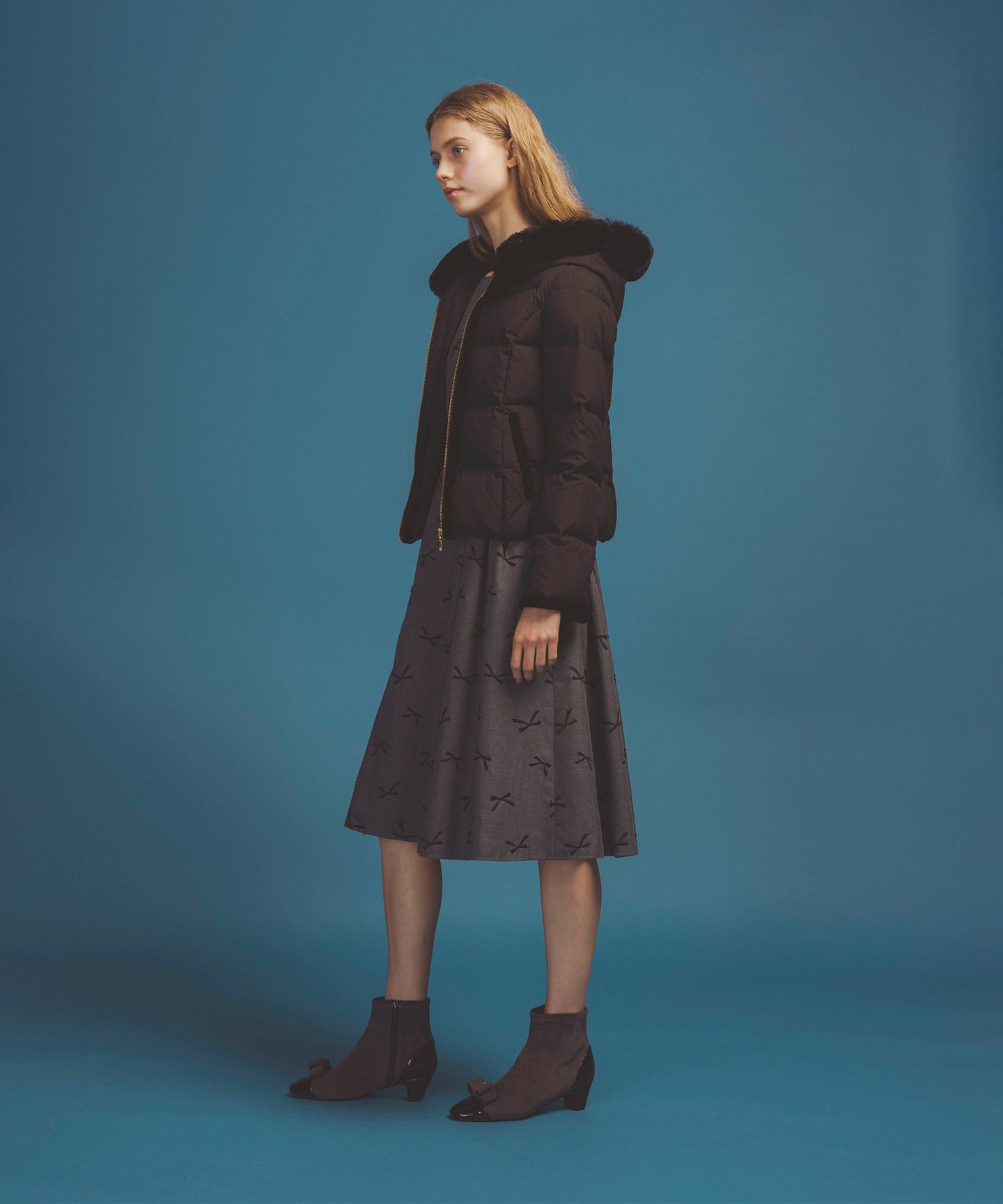 細部にまでこだわったディテールが、クラシックでエレガントな印象を引き立て、他にはない特別感を演出します。 ドレスやスカートと相性の良いコンパクトな丈感も、このダウンの大きな魅力。腰位置が高く見えることで、自然と脚長効果も生まれ、全体のバランスが美しく整います。スカートスタイルにはもちろん、ハイウエストのパンツと合わせたメリハリのある着こなしにも最適。