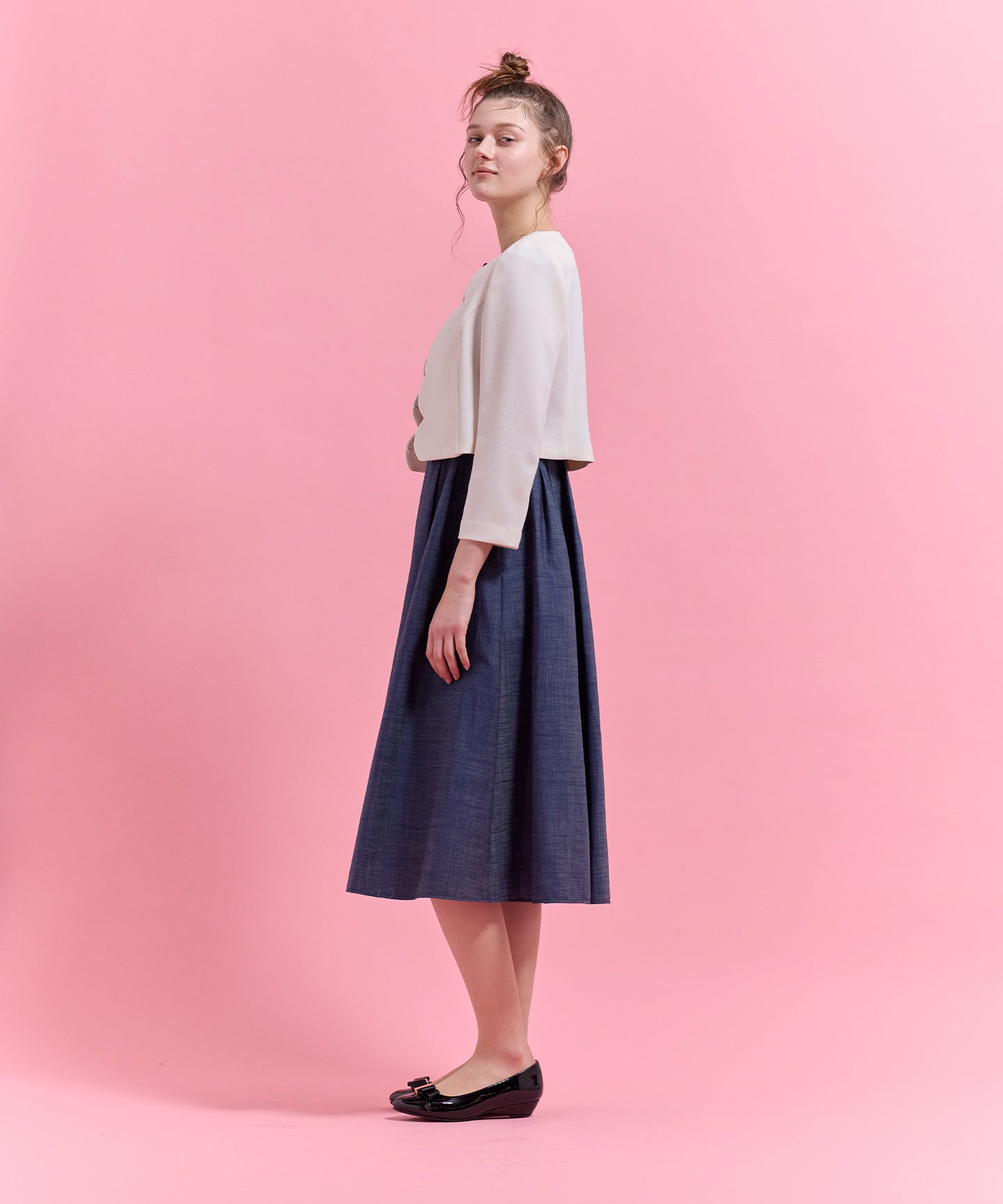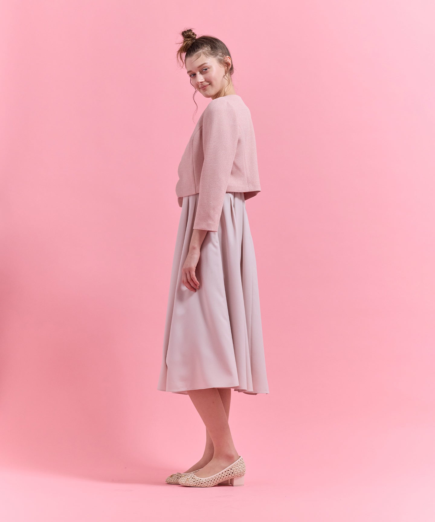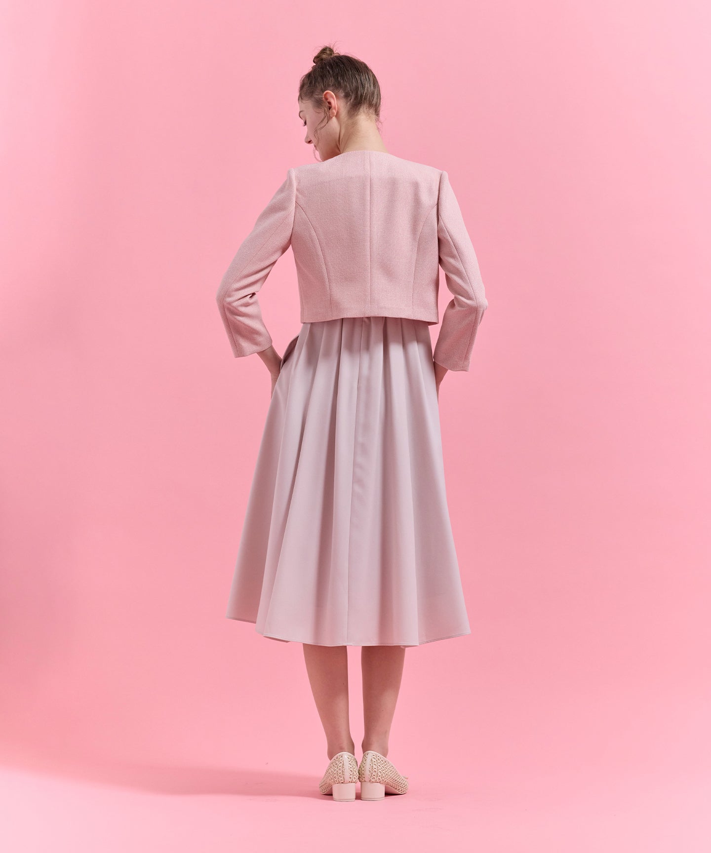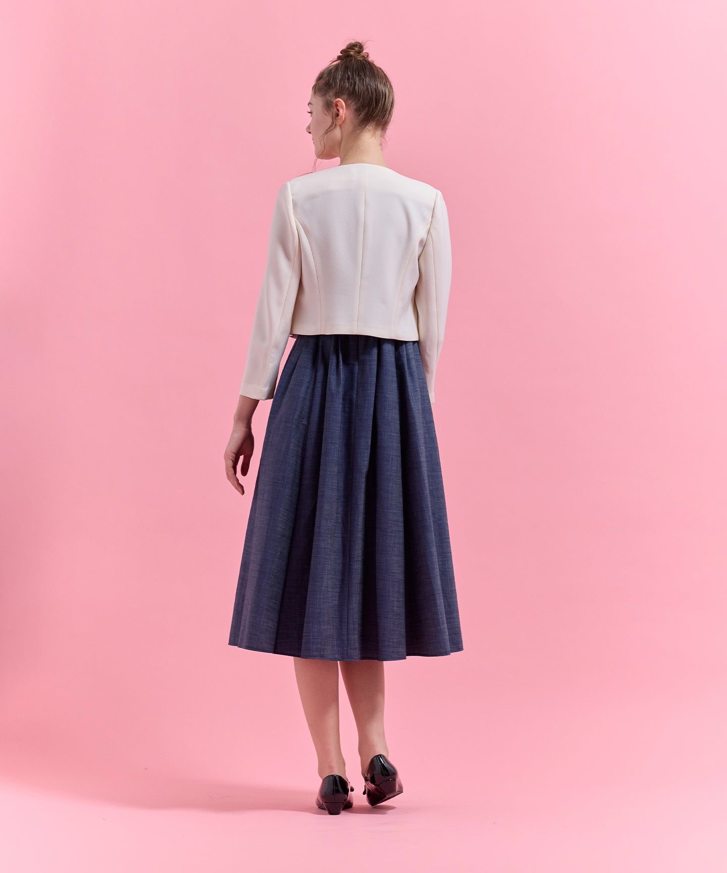 ツィード見えの表情ある素材感。 程良いハリ感で綺麗めにお召いただけます。袖の裏地がなく、着心地も軽やかです。