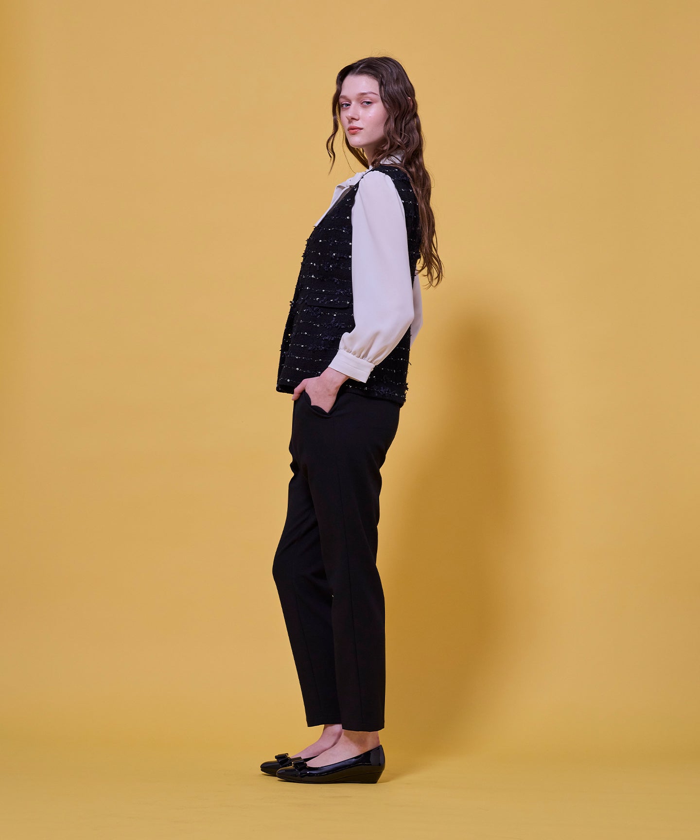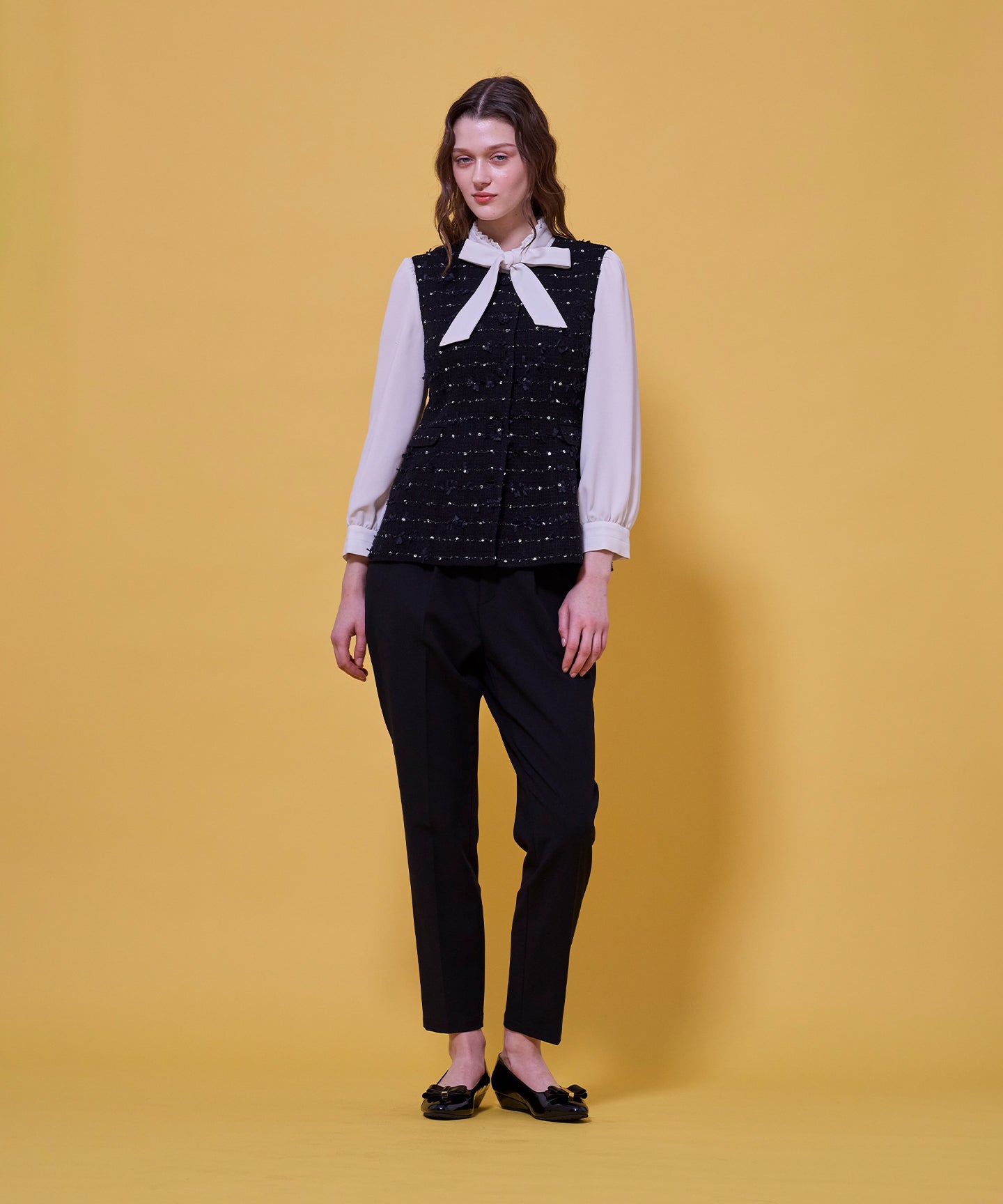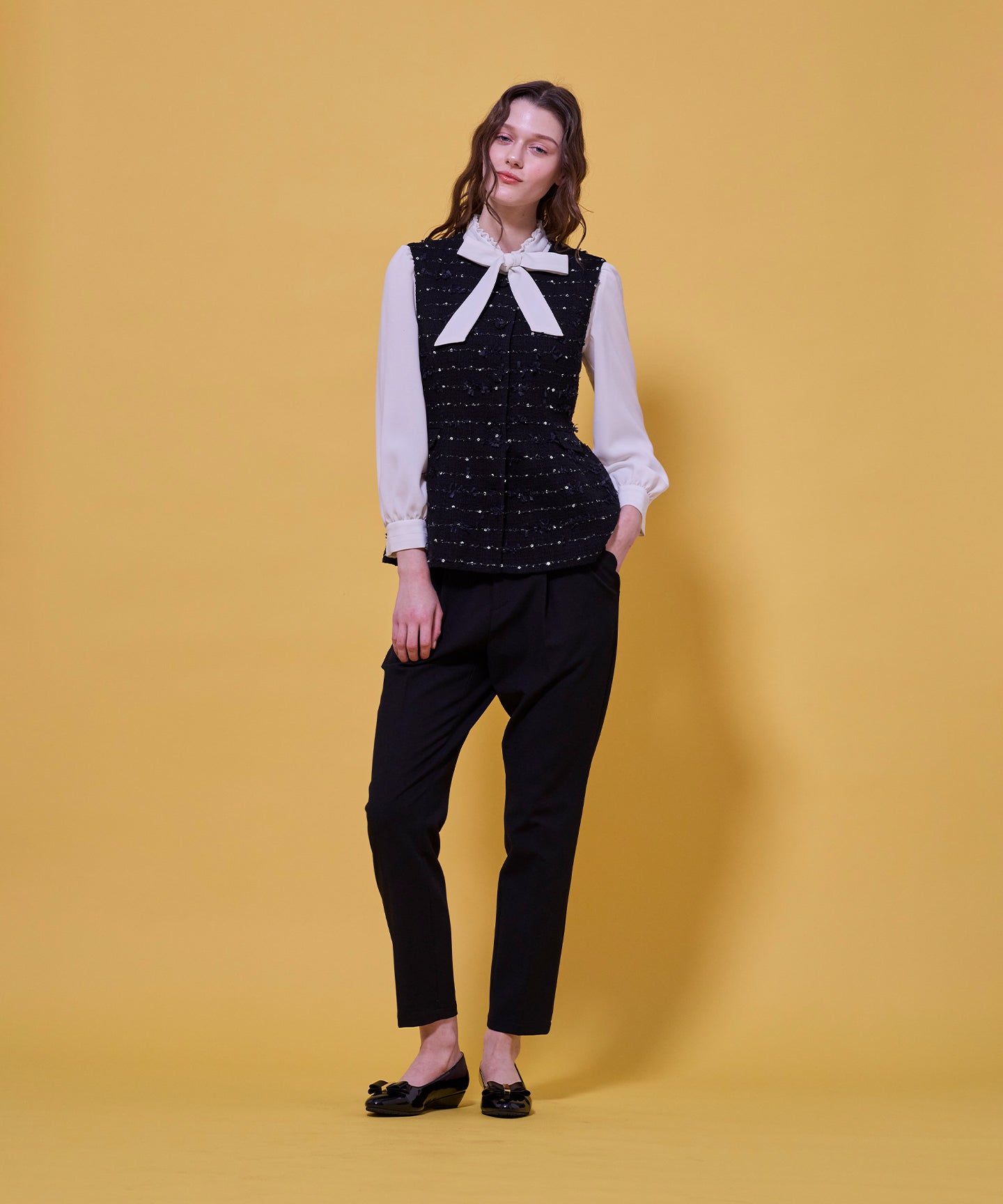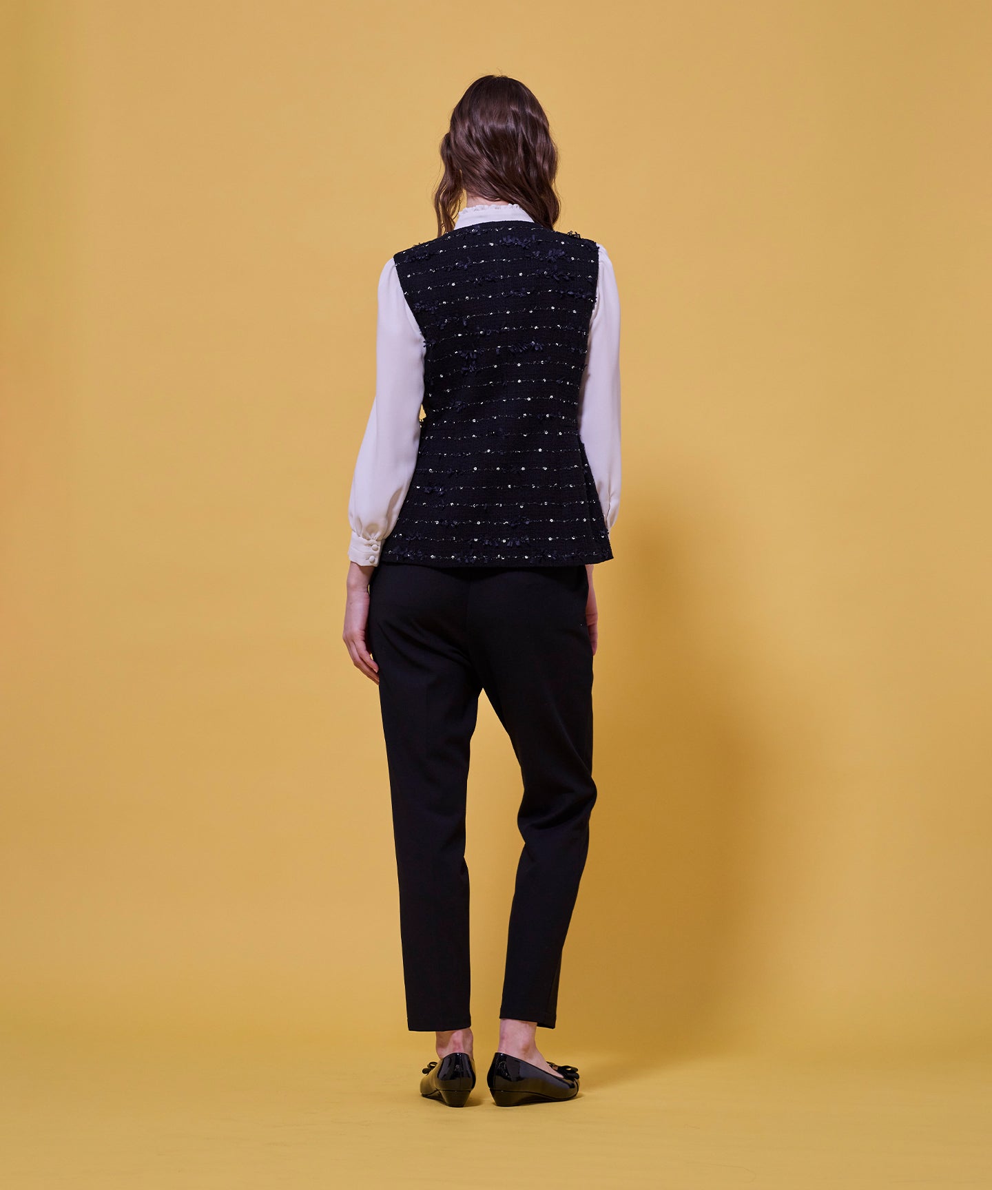 上品でやわらかく、扱いやすい。 きちんと感がありながら、動きやすいジレジャケット。