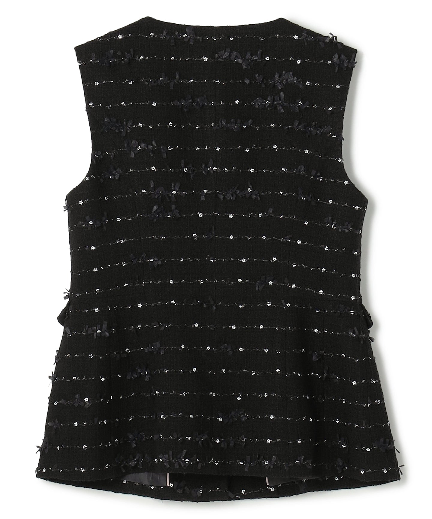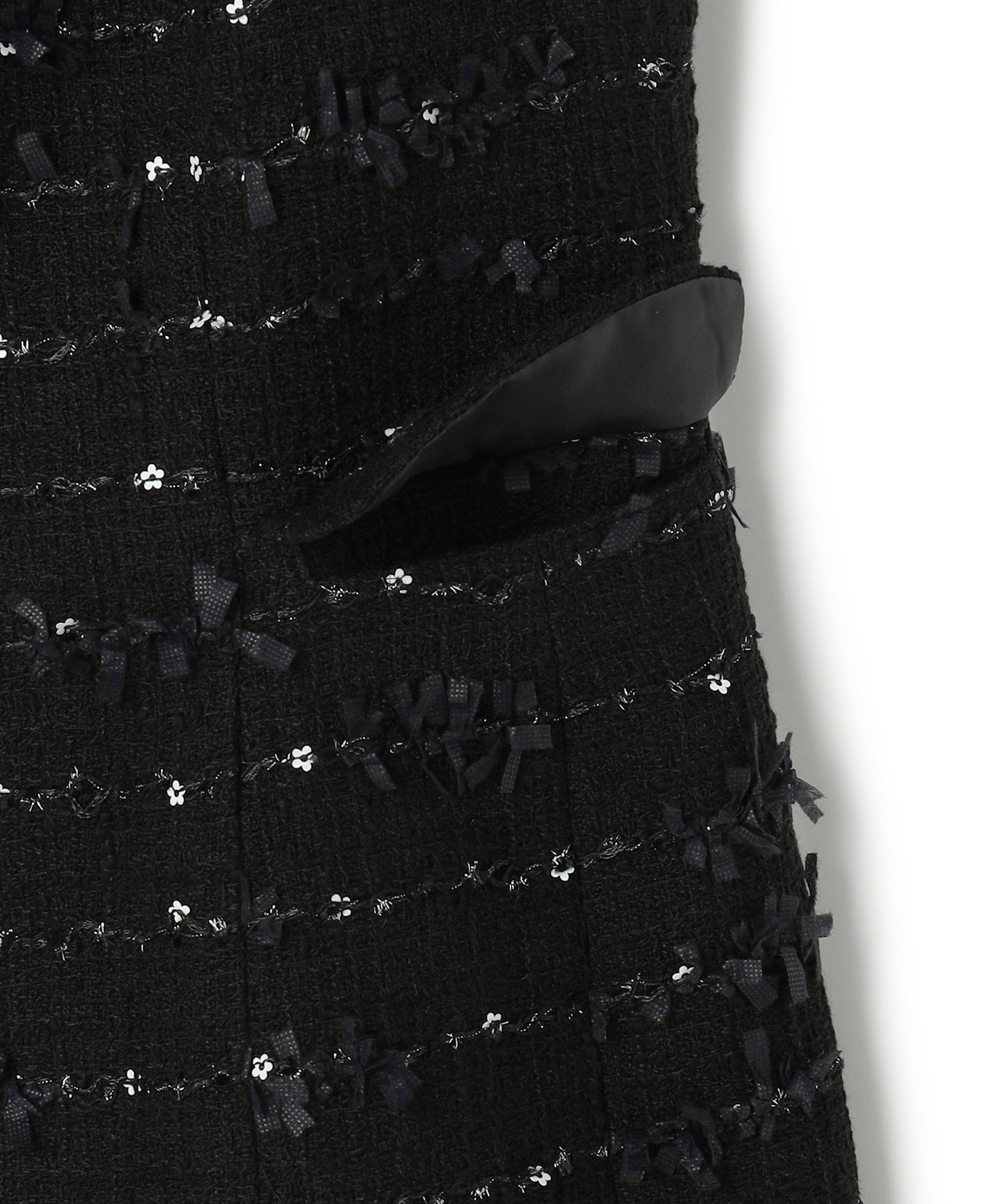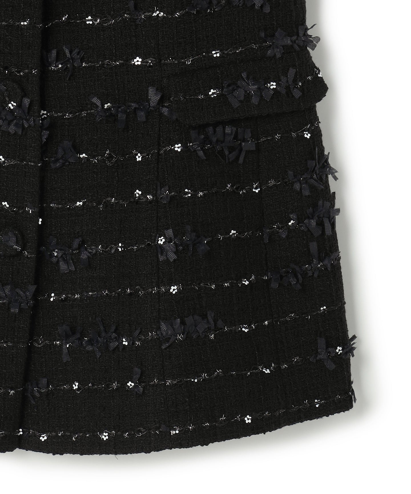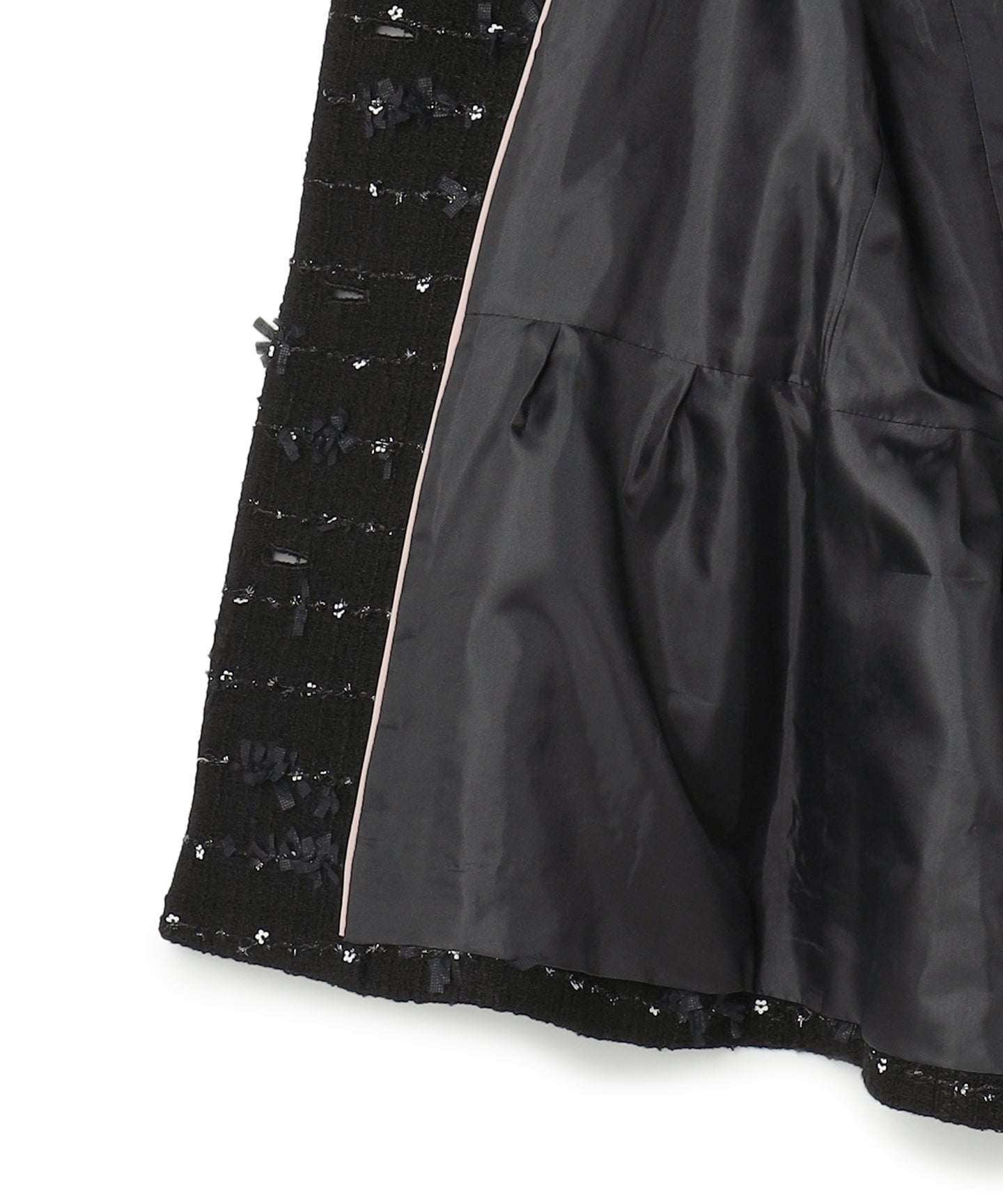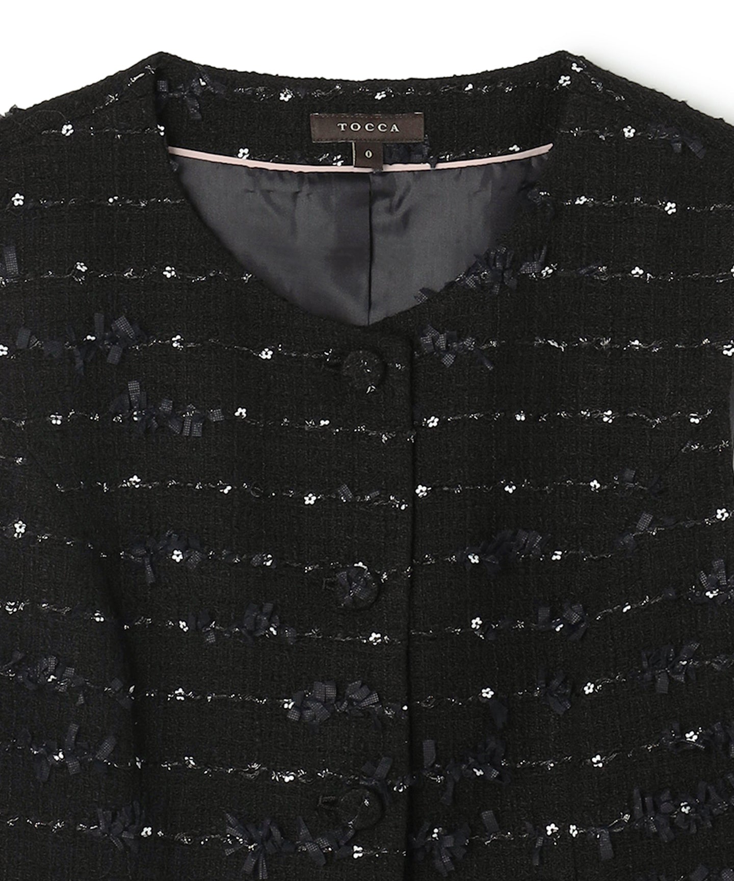 小花のスパンコールを贅沢にあしらった特別な素材で仕立てた、上品なノーカラージャケット。 動くたびにさりげなく光を放つ繊細なきらめきが奥行きと華やぎを添え、エレガントな存在感を演出します。シルエットは、すっきりとしたコンパクトな身頃に、ウエストから自然に広がるフレアラインをプラス。女性らしい柔らかなニュアンスを引き立てながら、スタイルアップも叶うバランスの良いデザインです。