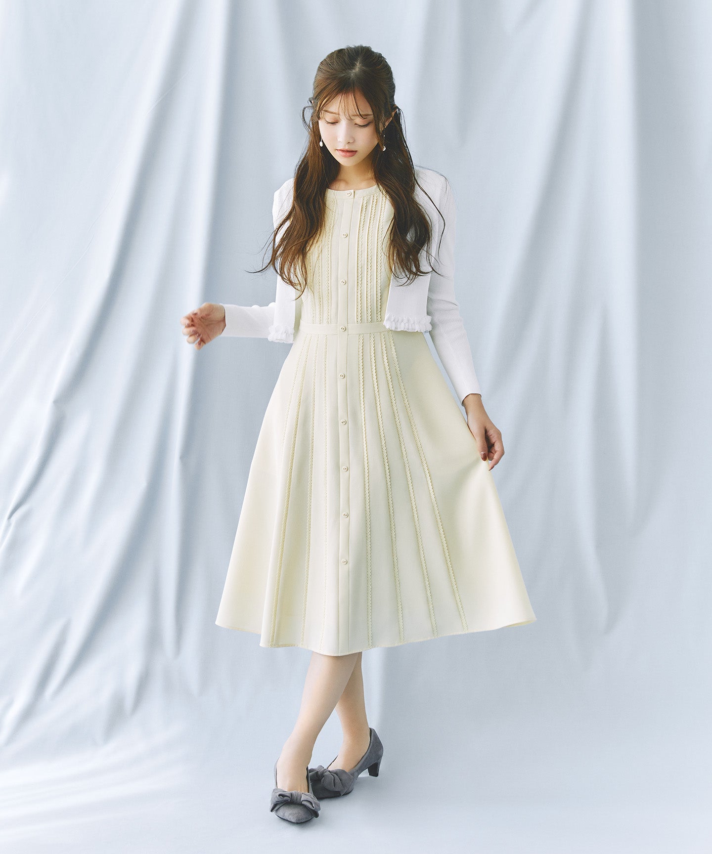 細めのフリルなので華やかになりすぎず、TOCCAらしい可憐さをプラスしました。