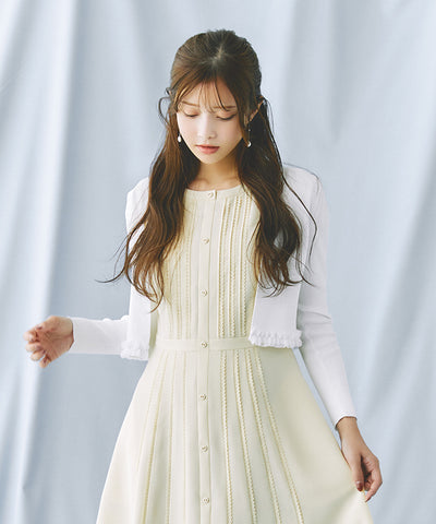 ドレスにとても合うコンパクトなサイズ感。定番のボレロ型の裾にチュールのフリルをつけた、キュートなボレロです。