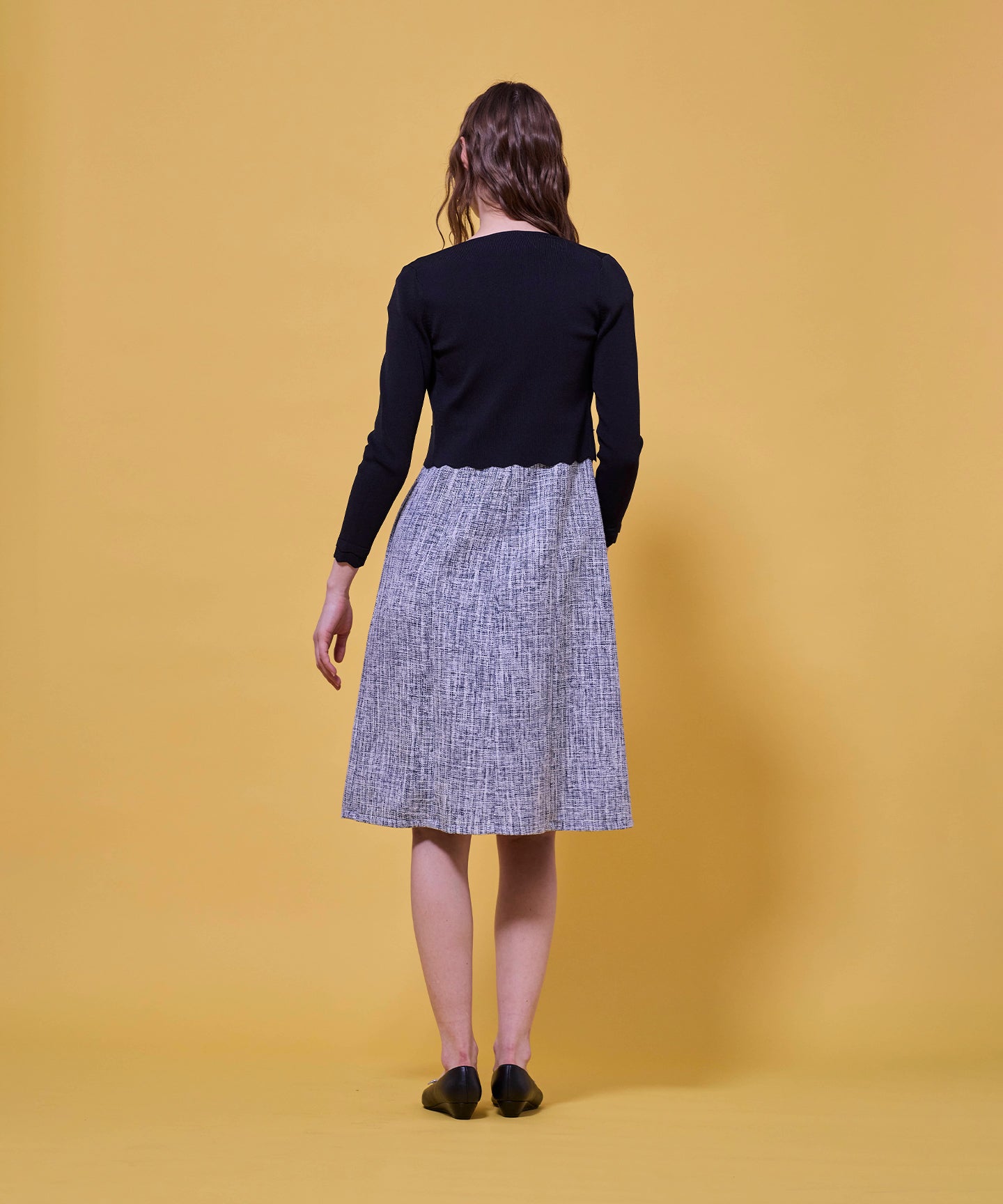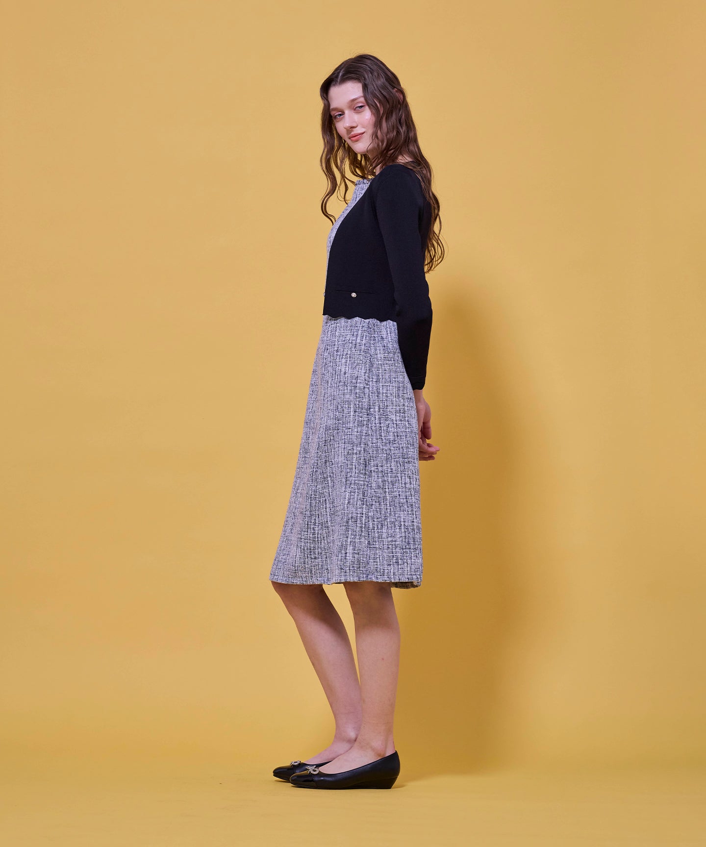 装飾を控えたシンプルなポケット風ディテールが、さりげなく上品さをプラス。程よい厚みのある素材で、きちんと感を保ちながらも軽やかに。