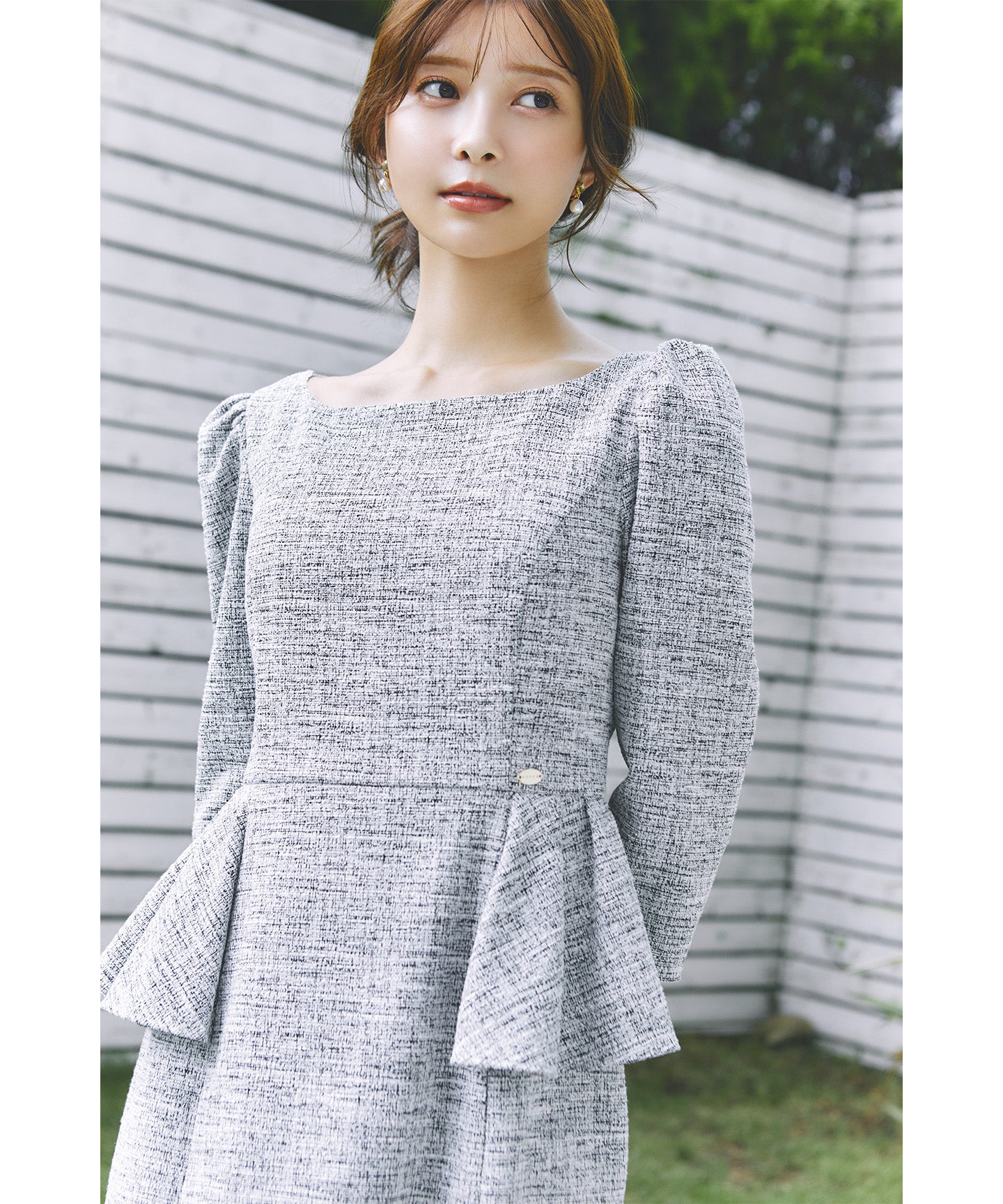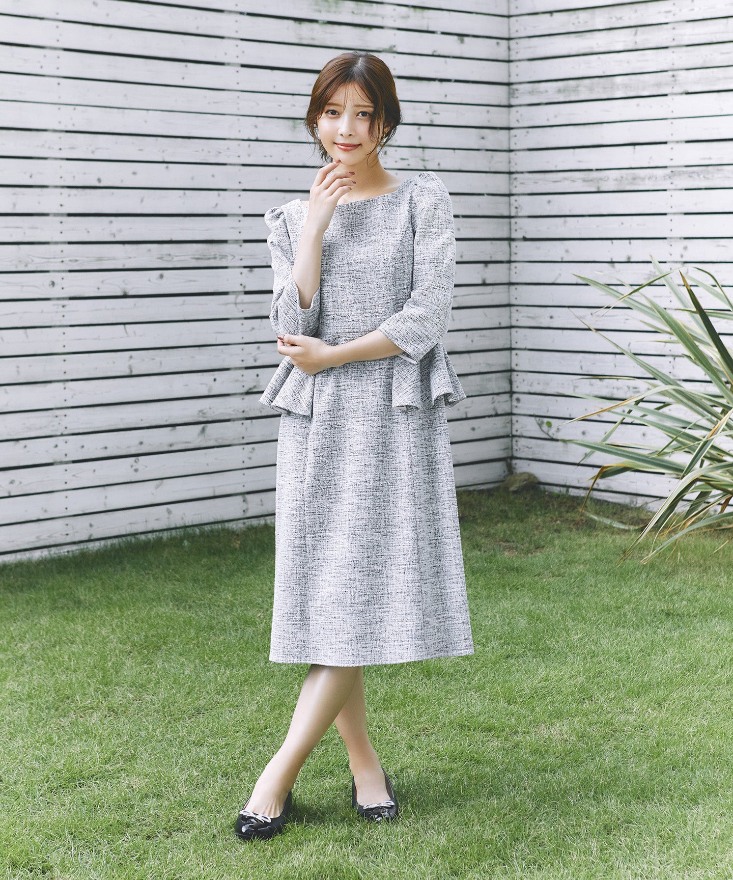 ウエストにはペプラムデザインをあしらい、気になる腰まわりをやさしくカバーしつつ、華やかなアクセントに。
