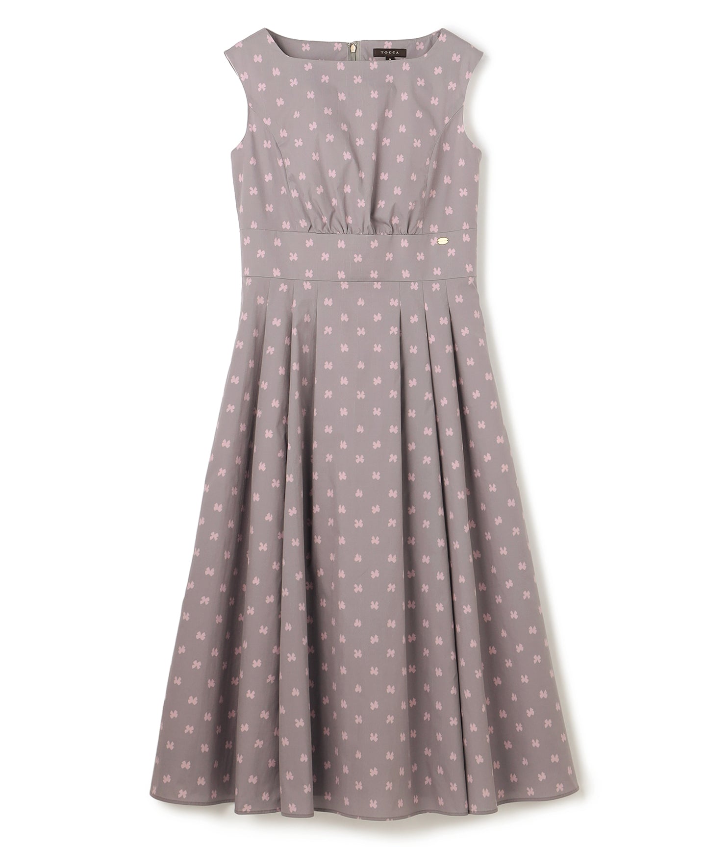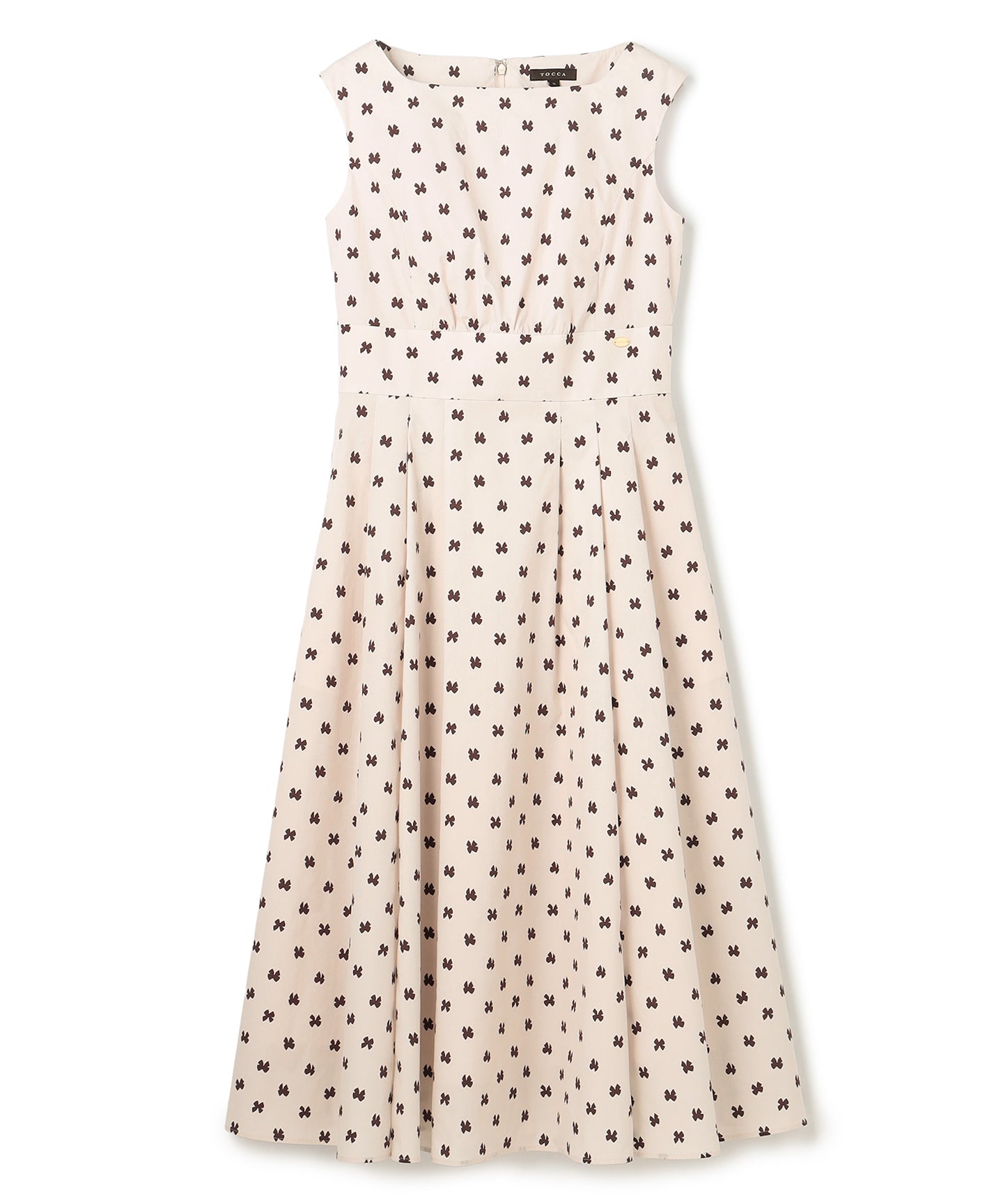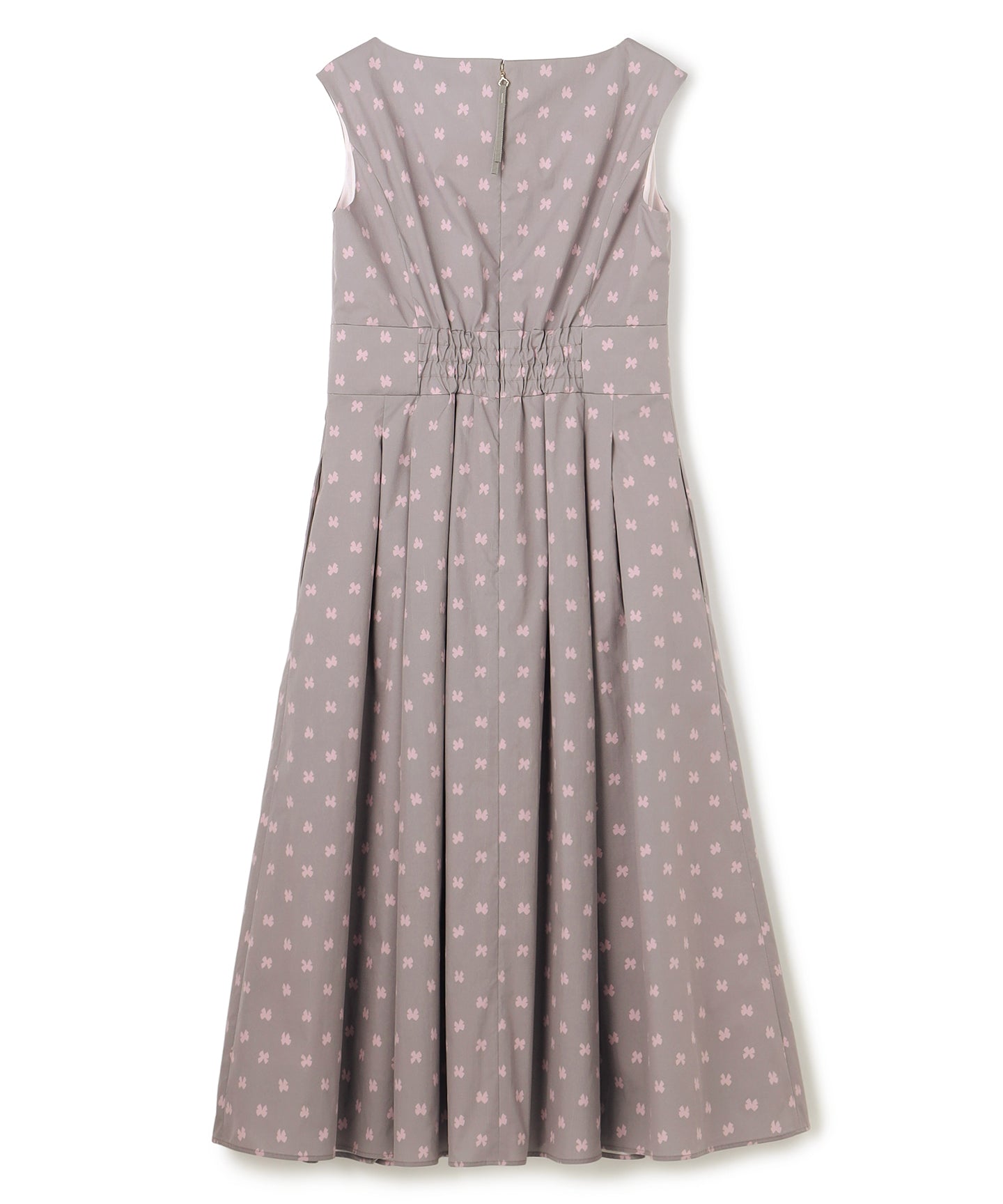 小さなリボン柄を散りばめ、可憐さと品の良さを併せ持つドレス。 甘くなりがちなモチーフも、落ち着いた配色と程よい分量感で大人の女性に似合う表情に仕上げました。 上半身はすっきりと、スカート部分はふんわりと広がるシルエットで、自然なメリハリを演出。動くたびに軽やかに揺れ、女性らしさを引き立てます。 一枚で着映えするのはもちろん、ボレロやカーディガンを合わせればきちんと感のあるスタイリングにも対応。 デイリーからお出かけ、ちょっとしたお食事シーンまで幅広く活躍する一着です。
