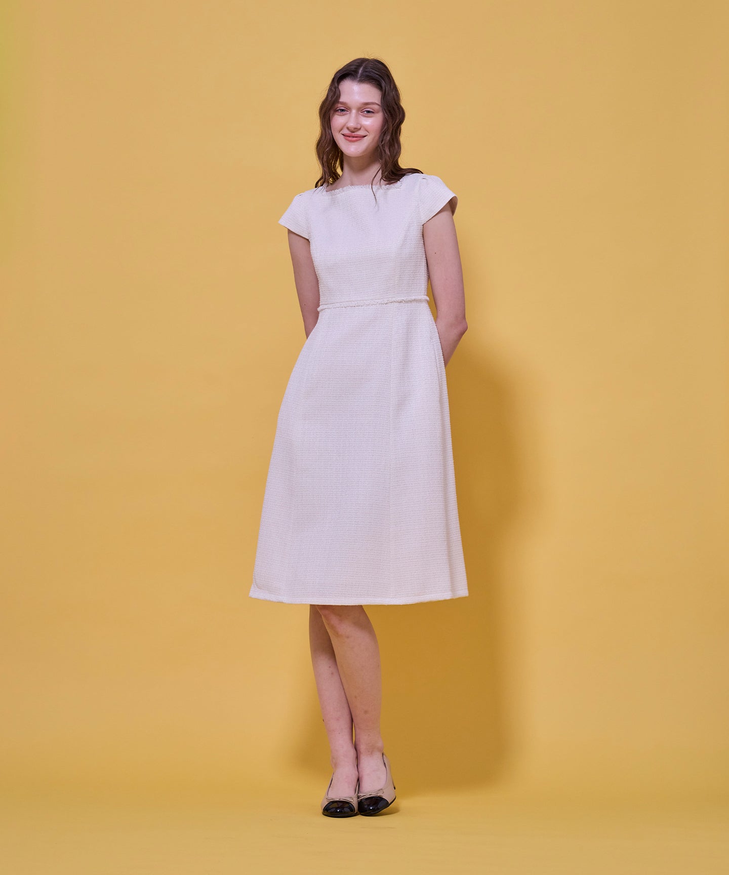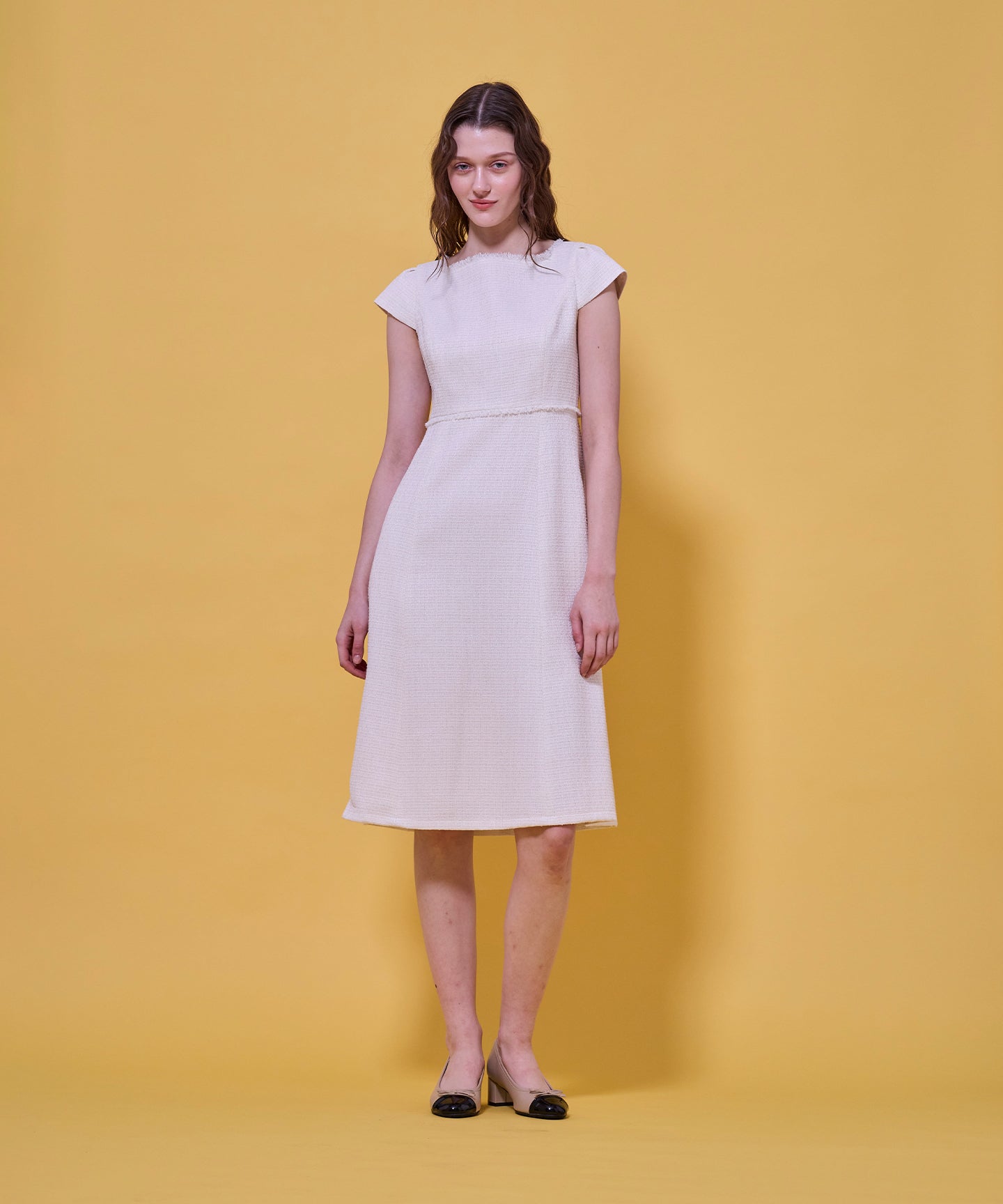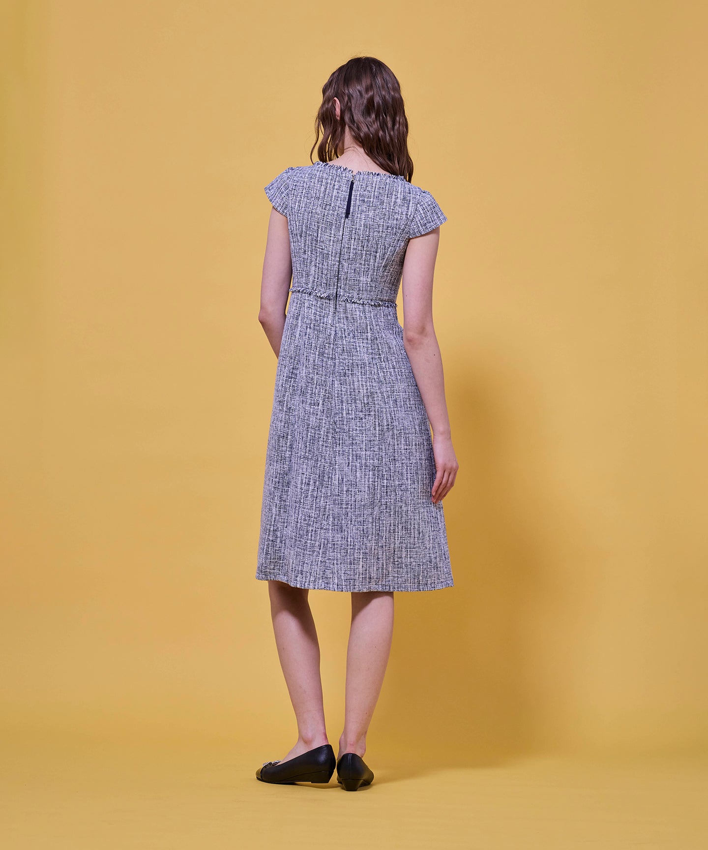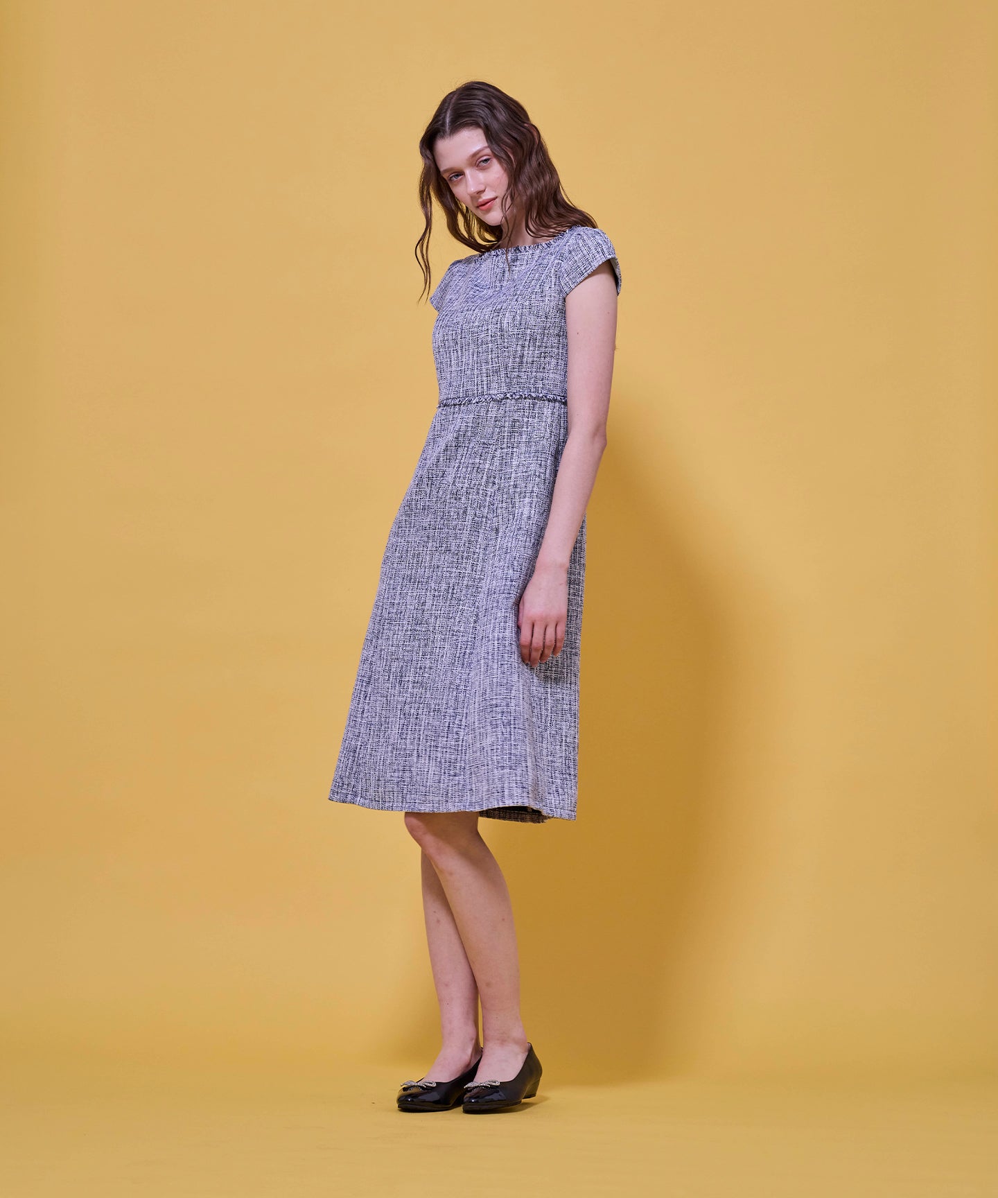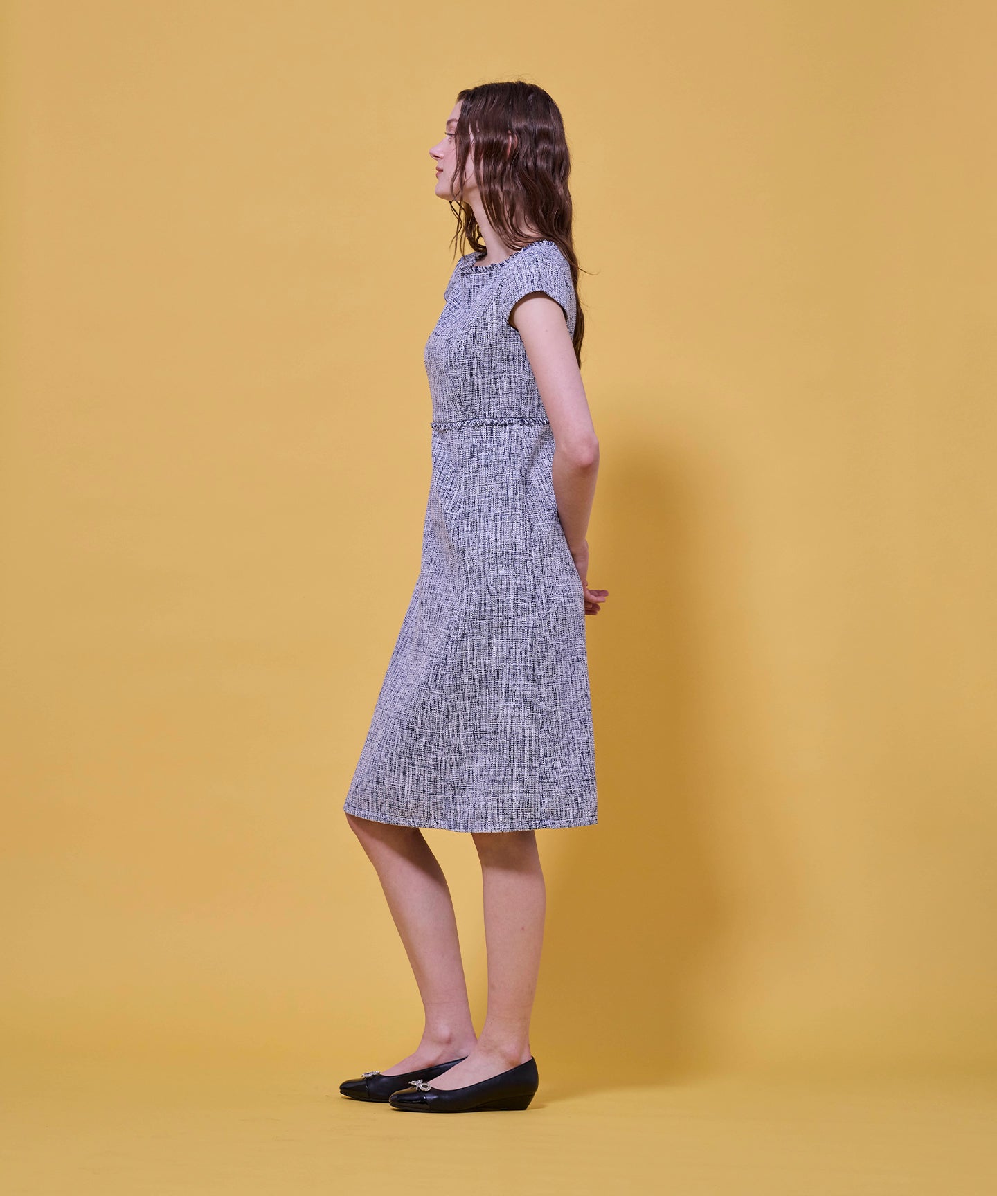 上品なツイード調素材で仕立てた、エレガントな印象のドレス。