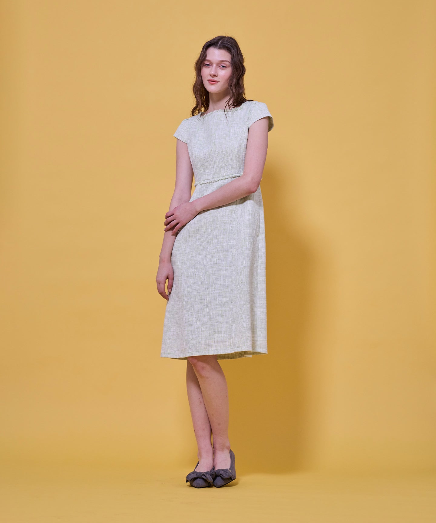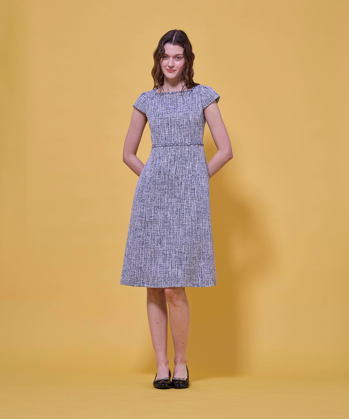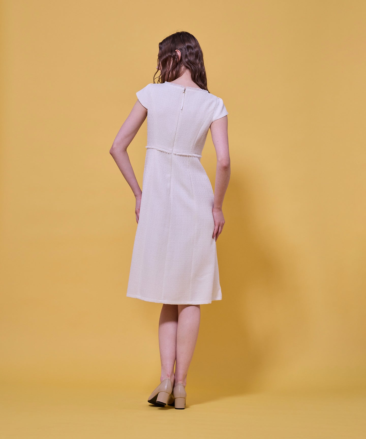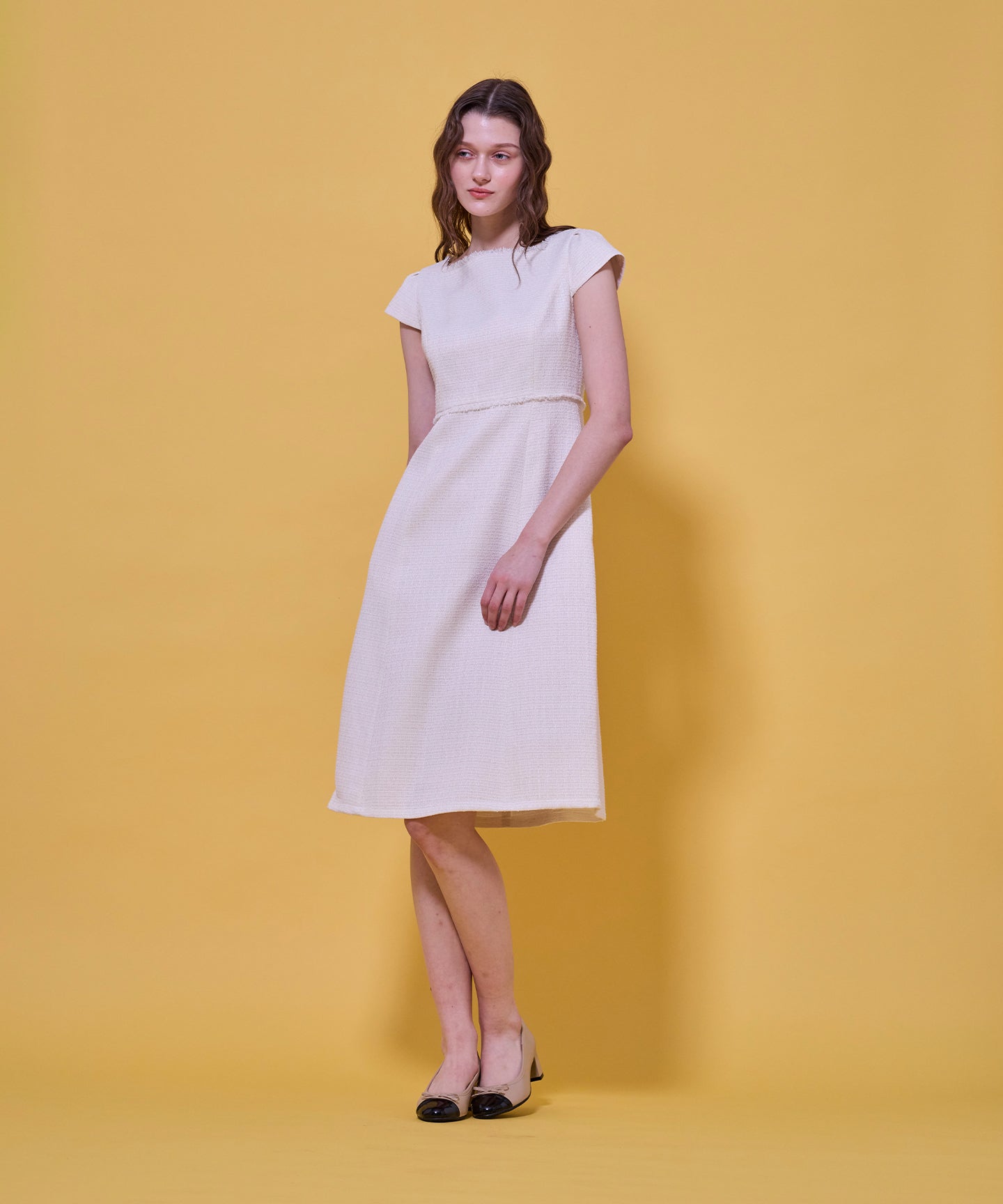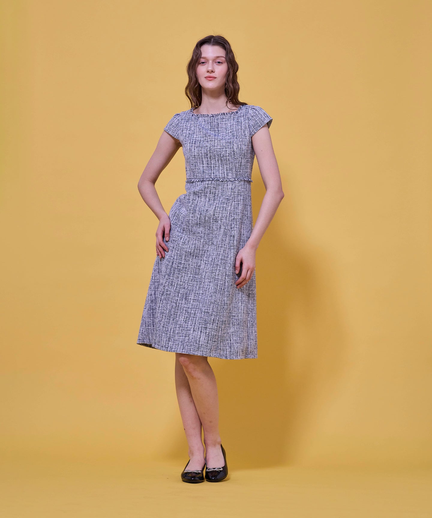 上品なツイード調素材で仕立てた、エレガントな印象のドレス。