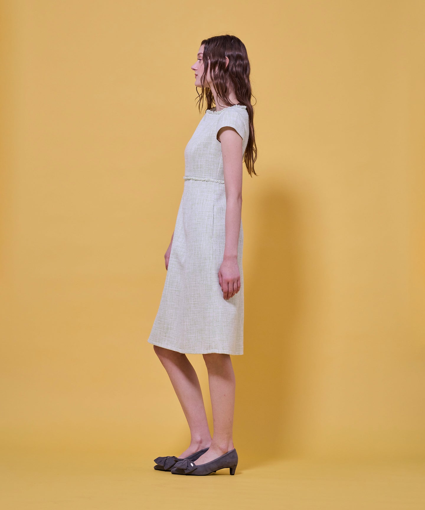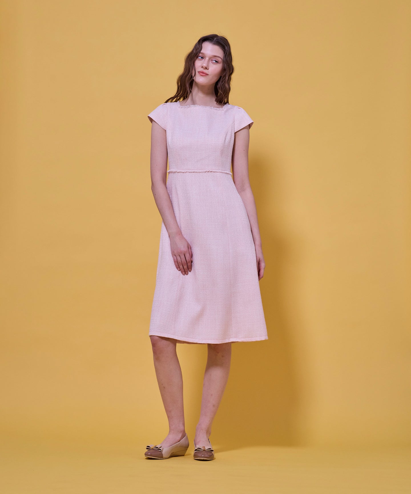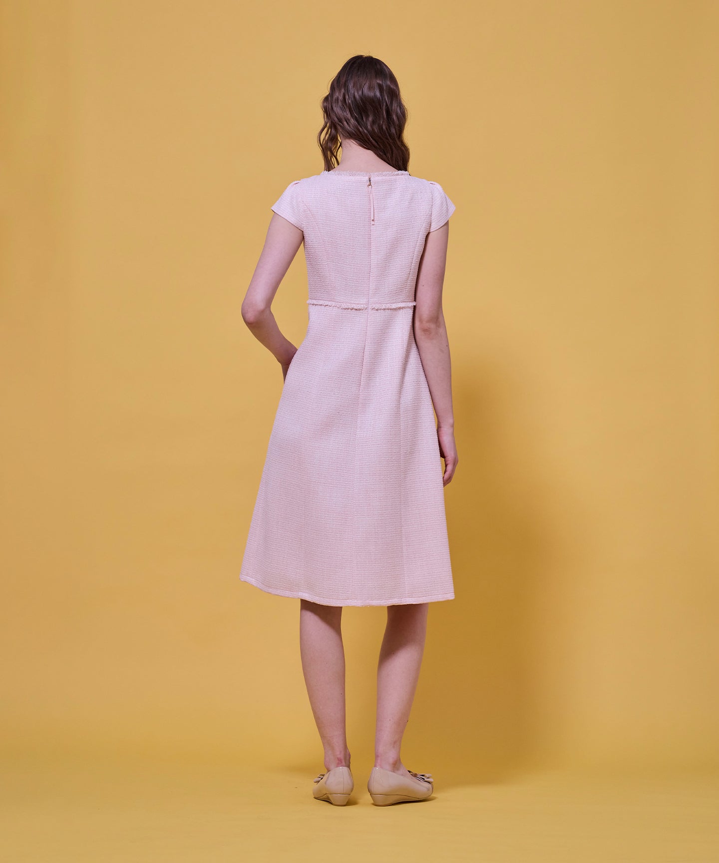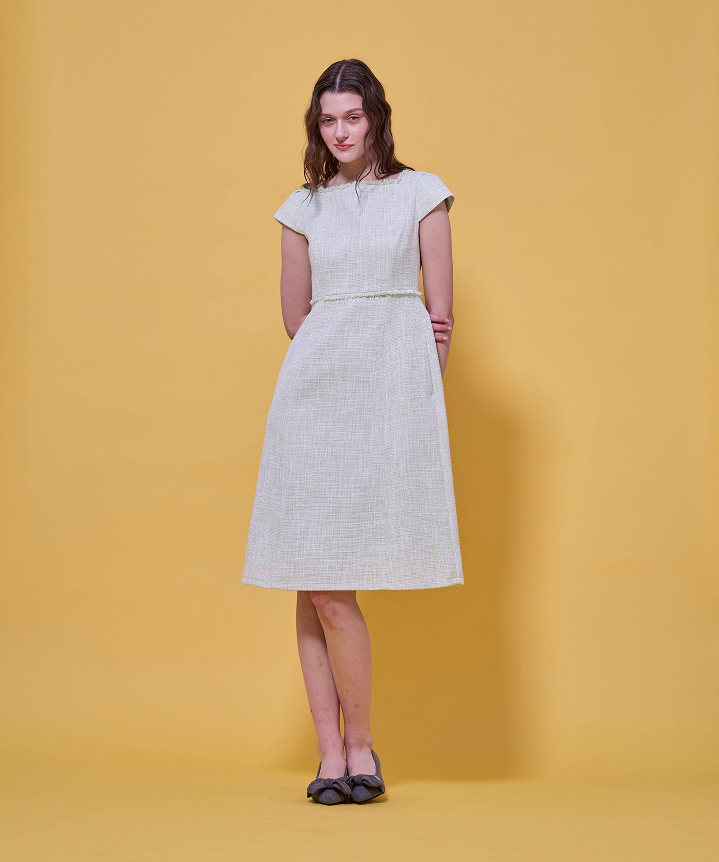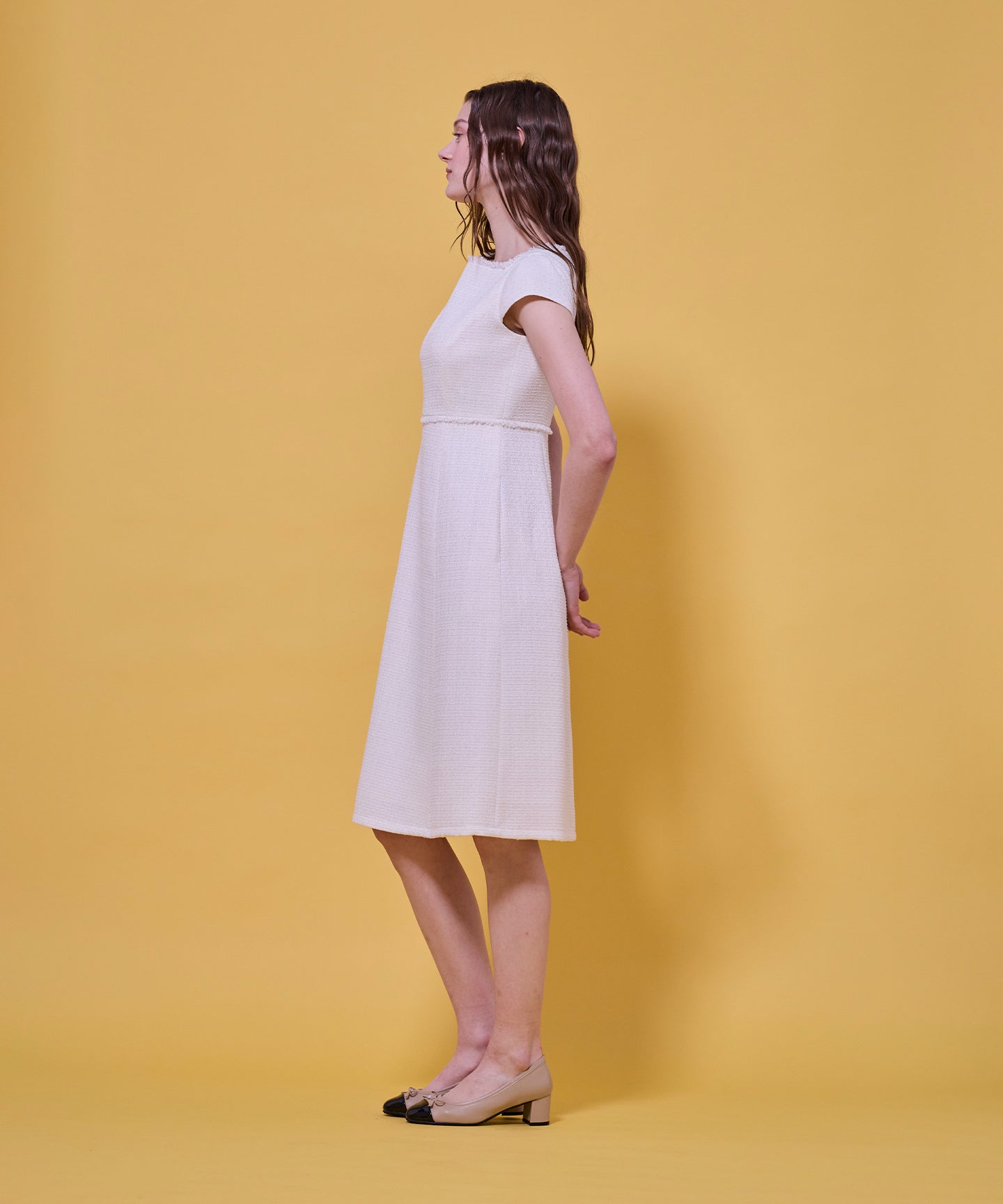 上品なツイード調素材で仕立てた、エレガントな印象のドレス。