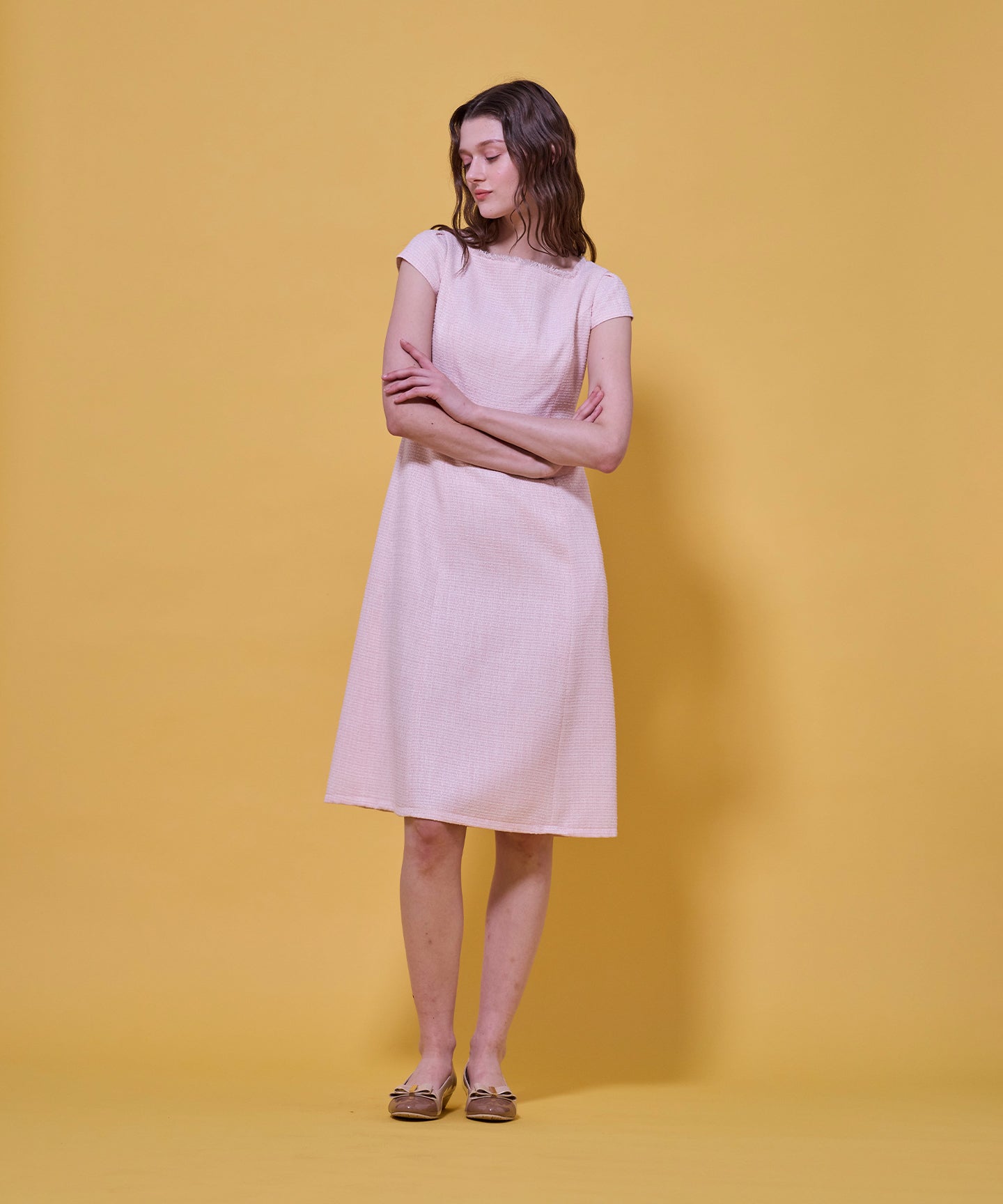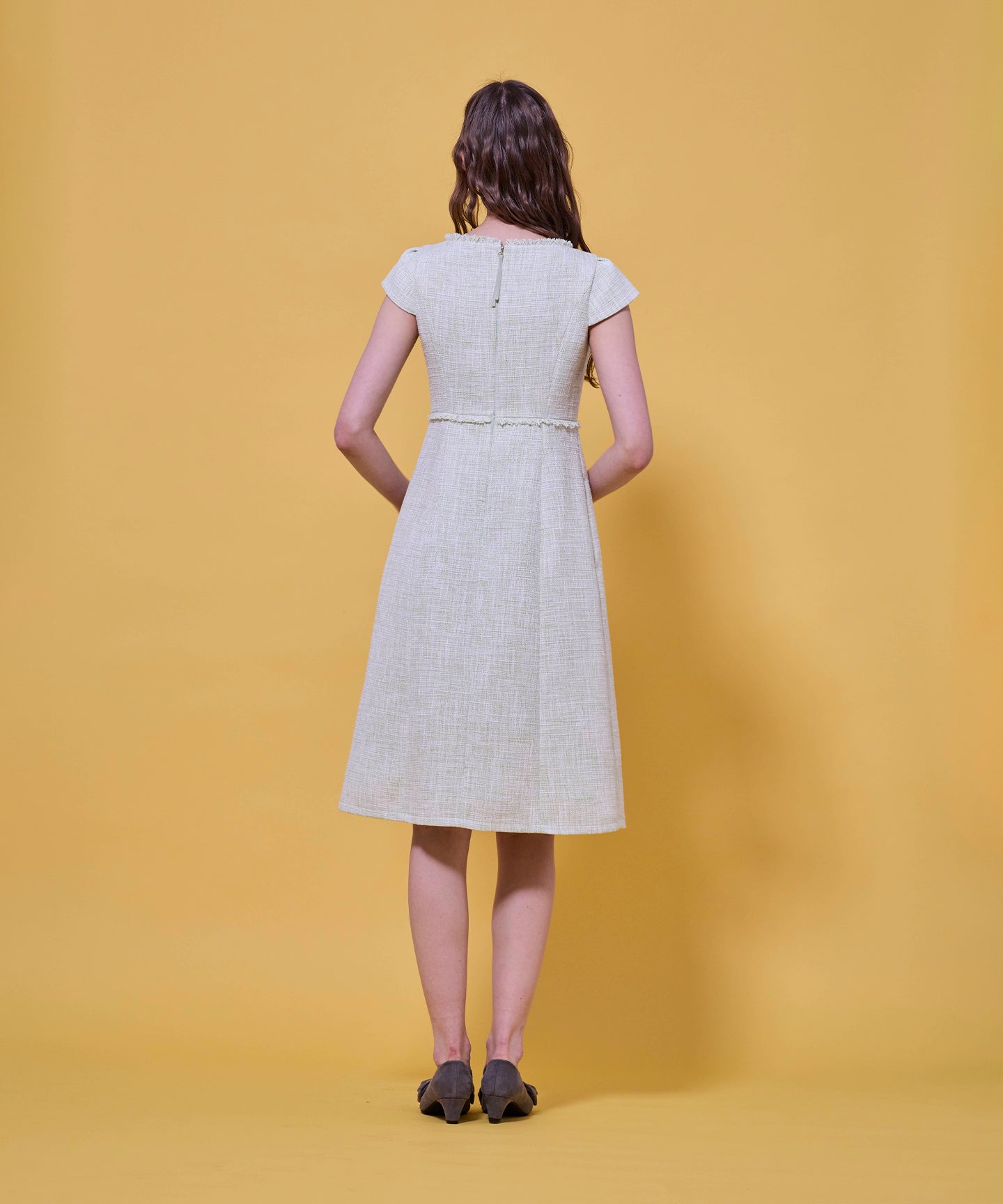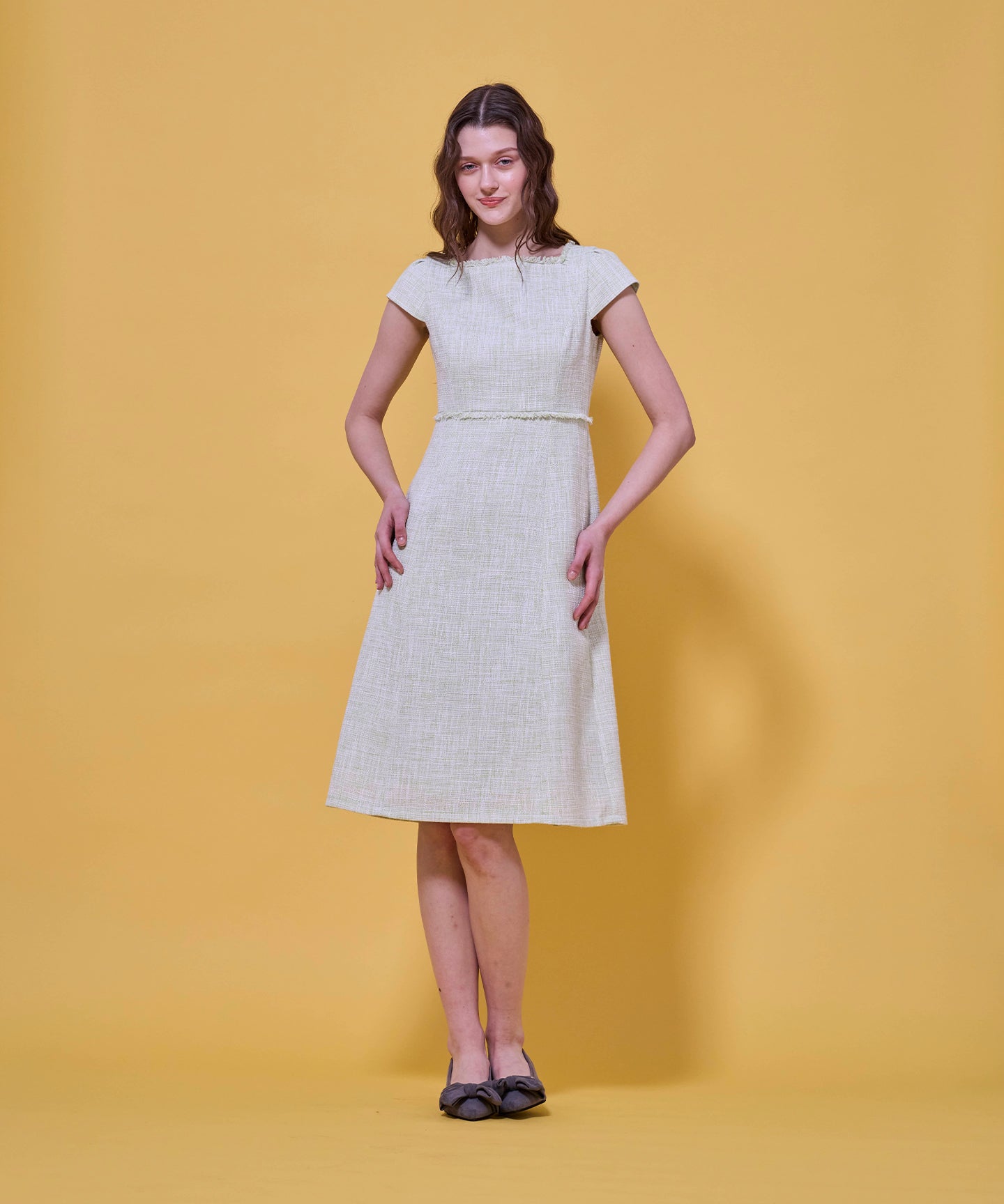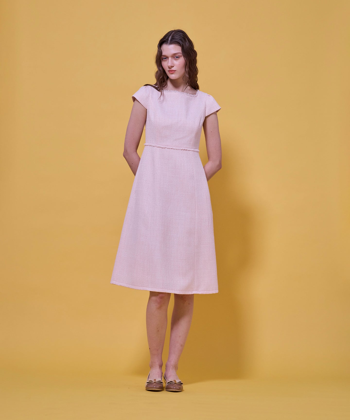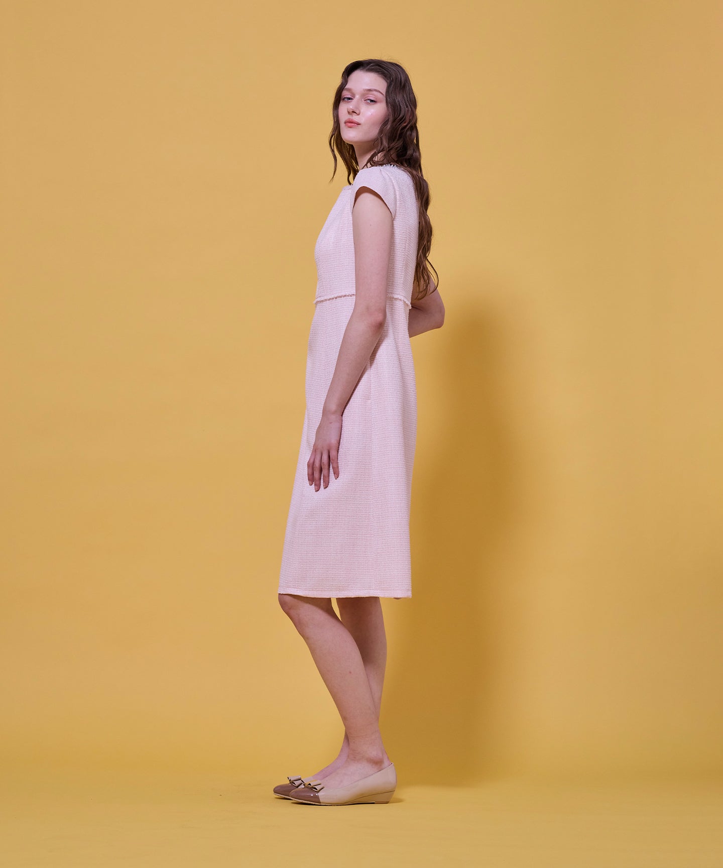 上品なツイード調素材で仕立てた、エレガントな印象のドレス。
